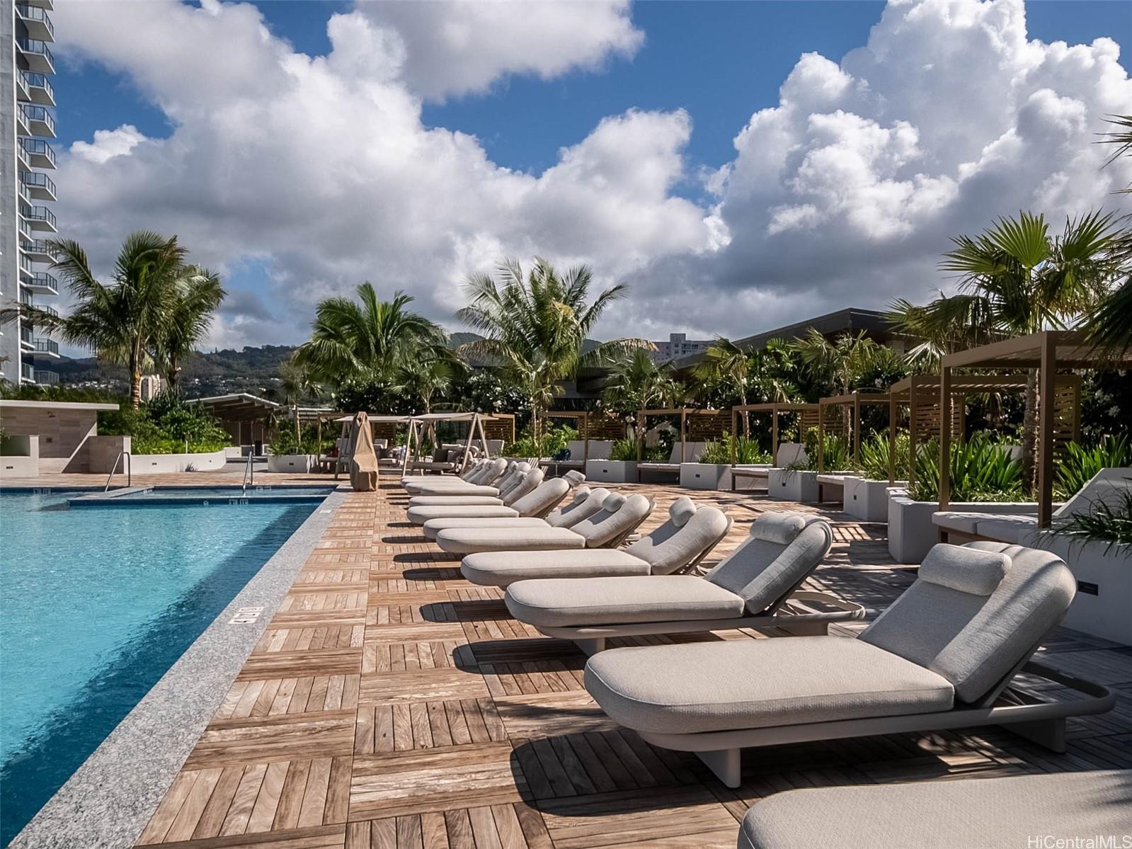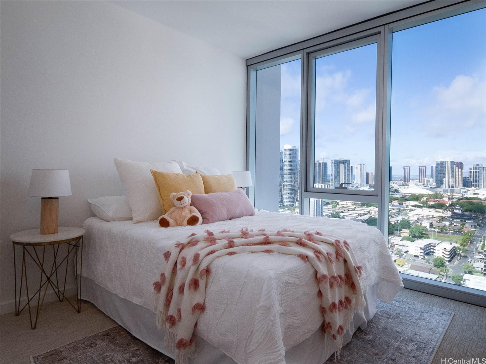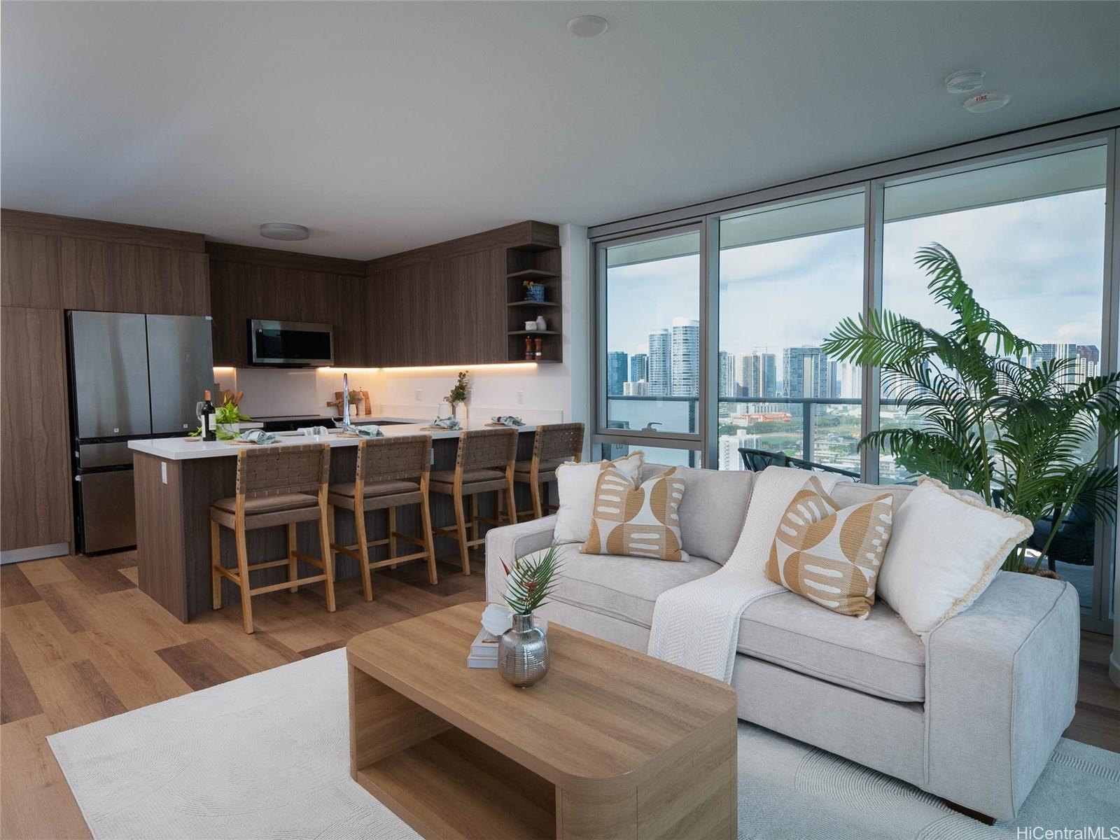 ザ・パーク・オン・キーアウモク #2718 でモダンな暮らしをご体験ください。この滅多に空室のない3ベッドルームの角部屋ユニットは、快適さ、利便性、そして現代的なデザインを兼ね備えています。思慮深く設計されたこのユニットは、ウォークインクローゼット付きの主寝室と、主寝室とは別に共有バスルーム付きの2つの寝室を備えています。広々としたランドリールーム、ゆったりとした玄関ホール、そしてエンターテイメントに最適なアイランドバー付きのオープンキッチンをお楽しみください。ラップアラウンドラナイに出て、息を呑むような海、街のスカイライン、そして山の景色を堪能してください。これは都心部では珍しい光景です。居住者は、EV充電ステーション、ゲスト用駐車場、自転車ラックなど、さまざまなアメニティをお楽しみいただけます。活気があり便利な建物には、多数の商業施設やレストランが入居予定で、活気のある都会のライフスタイルをすぐそばで実現します。このユニットの3階には、居住者用駐車場の1階とみなされる便利な並列駐車スペースがあり、迅速かつ容易にアクセスできます。