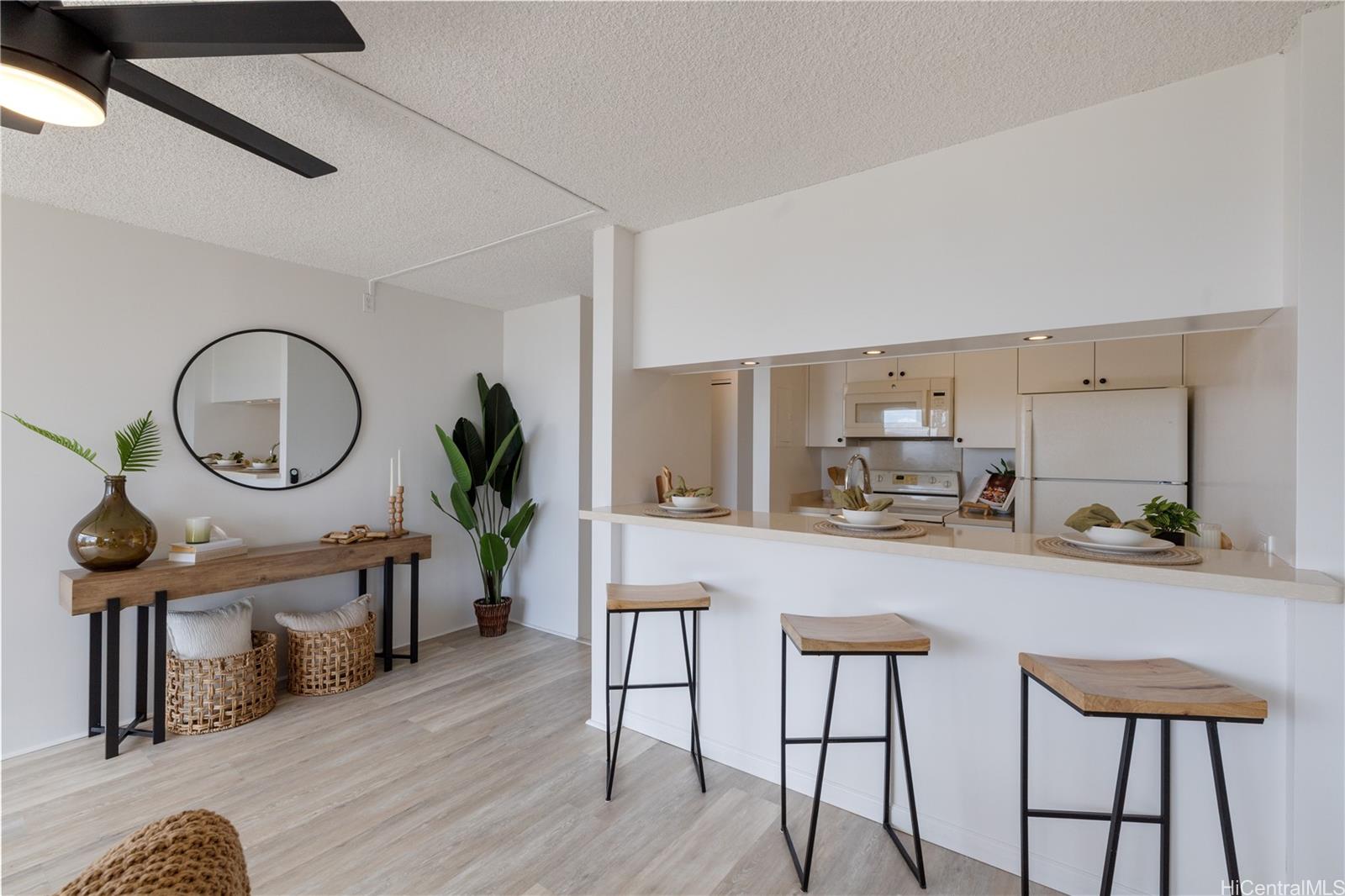カイマナ・ラナイズにある、この魅力的な1ベッドルーム、1バスルームの住宅で、毎日ホノルルの美しい景色とともに目覚めましょう。810平方フィート(約74平方メートル)の広々とした室内空間と、囲まれたラナイは、リラックスにもエンターテイメントにも最適な、開放的で風通しの良いレイアウトを実現しています。高級ビニールフローリング、新しい照明器具、洗練されたコーリアン製カウンタートップ、鮮やかなペイントで新しく生まれ変わったこの住宅は、モダンな快適さと時代を超越したアイランドスタイルが融合しています。床から天井まで届くマルチスライドドアからは、ワイキキのスカイライン、活気あふれる街並み、海、ダイヤモンドヘッド、そして壮大な夕日の素晴らしい景色が広がり、まるで楽園からの絵葉書のようなひとときをお過ごしいただけます。ウォークインシャワーは、毎日の暮らしに贅沢なひとときを添え、プール、レクリエーションルーム、サーフボードラック、セキュリティ付きエントランス、ペットフレンドリーなリビングなど、充実したアメニティがライフスタイルをワンランクアップさせます。カピオラニの絶好のロケーション。ワイキキ、アラワイ・ゴルフコース、ハワイ大学、ビーチ、公園、ショッピング、エンターテイメント施設までわずか数分です。すぐにご入居いただけ、丁寧にメンテナンスされた物件が皆様をお待ちしています。今すぐ内覧のご予約を!