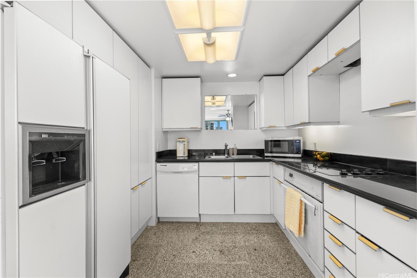 Recently renovated livingroom + bedroom flooring & freshly painted throughout the unit. Building boasts of many wonderful amenities including: Largest residential heated pool with spa, fully equipped fitness facility, BBQ with cabana, car wash, guest parking and 24/7 security. Easy access to world famous Waikiki for shopping & dining and so much more.