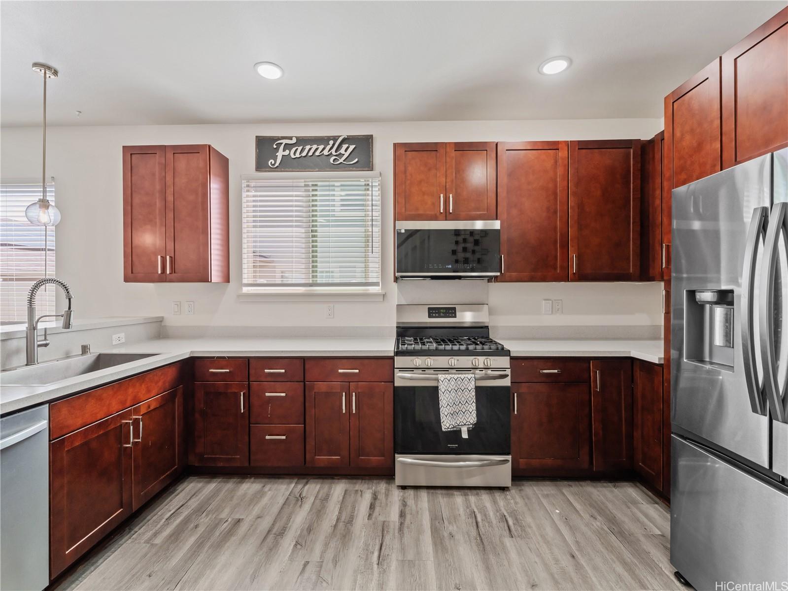 Dreaming of your slice of paradise in the thriving Ho'opili community? Don't let this immaculate 4-bed, 2.5-bath gem in Iliahi slip away—it's a spacious stunner, just as amazing as the day it was built, featuring sleek builder-installed vinyl planks on the first floor and plush, inviting carpeting on the stairs and second level for that perfect blend of style and comfort. Stay blissfully cool through Ewa's hot, hot, summers thanks to owned solar panels and a battery system— it'll keep you feeling auurite! Transform your private yard into an entertainer's haven for unforgettable evenings with friends under the stars. And the location? Just mere steps from Ka Makana Ali'i Mall, UH West Oahu, Costco, Walmart, the Kroc Center.. literally! Right in between of Ewa Beach and Kapolei. Don't feel like driving? It's a quick walk/jog to the Konane neighborhood park, community center, dog park, and three handy rail stations. You've been waiting for a home like this! Come check 'em out! Mahalo!