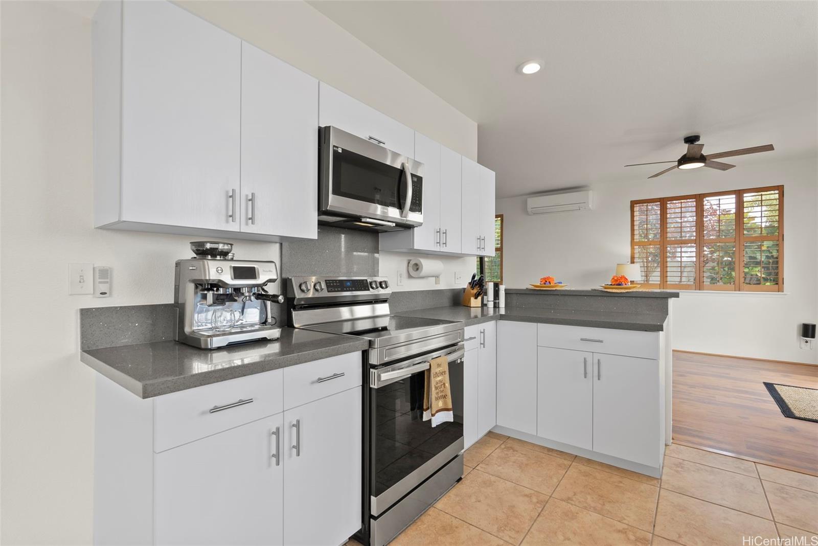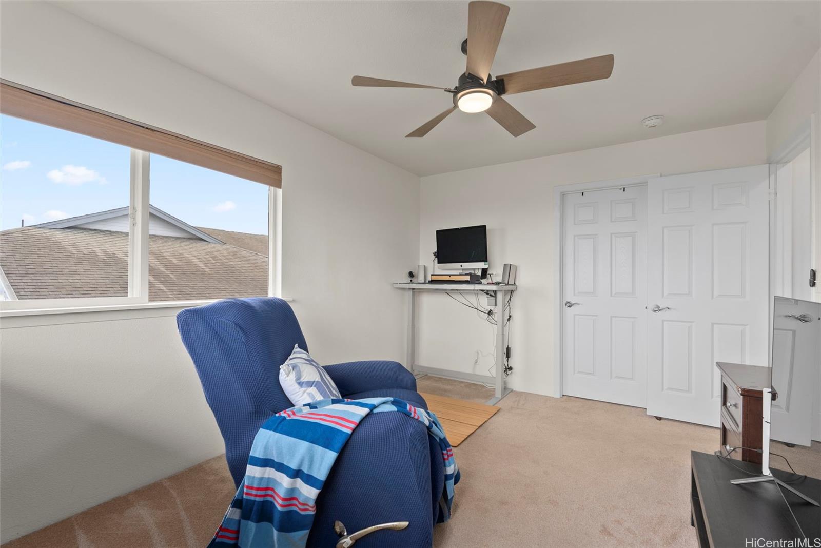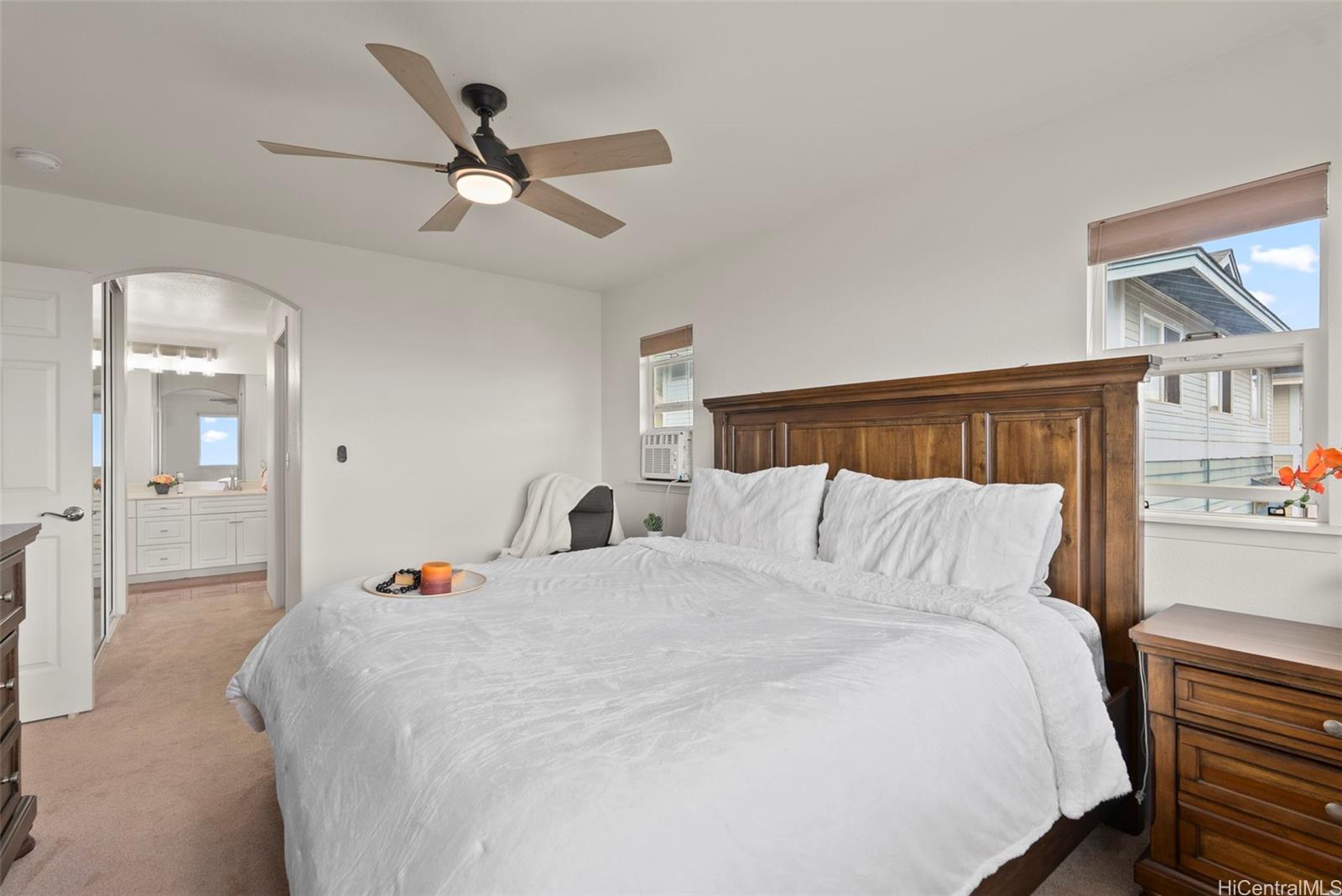 Perched in Makakilo w/DIAMOND & OCEAN VIEWS from every room & deck, this METICULOUSLY cared for 3BD/2.5BA home SHINES w/COOL BREEZES & recent upgrades: SOLAR water heater, REFRIG, MICROWAVE, OVEN, DISHWASHER, QUARTZ counters, REFACED kitchen cabinets, CARPET, ceiling FANS, light FIXTURES & FAUCETS to name a few! Relax in the REGLAZED primary BATHTUB, entertain on the SPACIOUS DECK, appreciate SPLIT AC, PLANTATION SHUTTERS, lush landscaping, large closet & FRESH interior paint. A true island retreat! 1 photo has been virtually staged(enhanced).