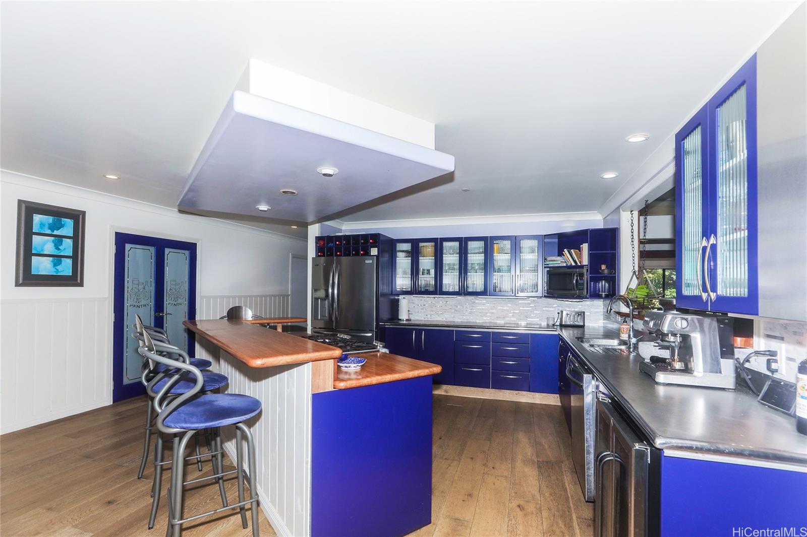 ヌアヌ北部の「オールド・パリ」にある隠れ家のようなプライベートな別荘。周囲には大きな樹木、美しい植物、そして蛇行するニニコ川(家主が橋を架けた)が流れている。ヌアヌ渓谷の由緒あるオールド・パリ通り沿いにある。22,916平方フィートの広さ。4ベッドルームの住宅に、キッチン、ランドリー、バスルーム付きの3つの大きな1ベッドルーム賃貸住宅がある。2001年に家主(住宅建設業者、先見の明のある職人、そして名匠)が木々を伐採し、ニュージーランド産の最高級資材を使って6,706平方フィートの居住空間を創出。非常によく維持されている。71枚の太陽光発電パネルと2つのテスラバッテリー、そして入居者の電気料金を合わせると、家主は月約350ドルの収入を得られる。さらに入居者の家賃は8,800ドル。2024年にはメインハウスに新しいスタンディングシームアルミ屋根が完成。ユニット1(メインハウス)4ベッドルーム2.5バスルーム2階建て(3,683平方フィート)個性的な木工細工、螺旋階段、珊瑚の暖炉、3台駐車可能なガレージ(9,000ドルで賃貸可能)など、多くのユニークなディテールを備えています。賃貸ユニット2はロフト付きの独立したワークショップの上階にあり、3月まで賃貸可能です(1,057平方フィート)。賃貸ユニット3はメインハウスの下にあり、タンデム駐車スペース2台分(月~月)です(1,106平方フィート)。賃貸ユニット4は2階建てで、駐車スペース1台分(月~月)です(860平方フィート)。駐車場あり。果樹が多数。パリハイウェイのすぐそば。