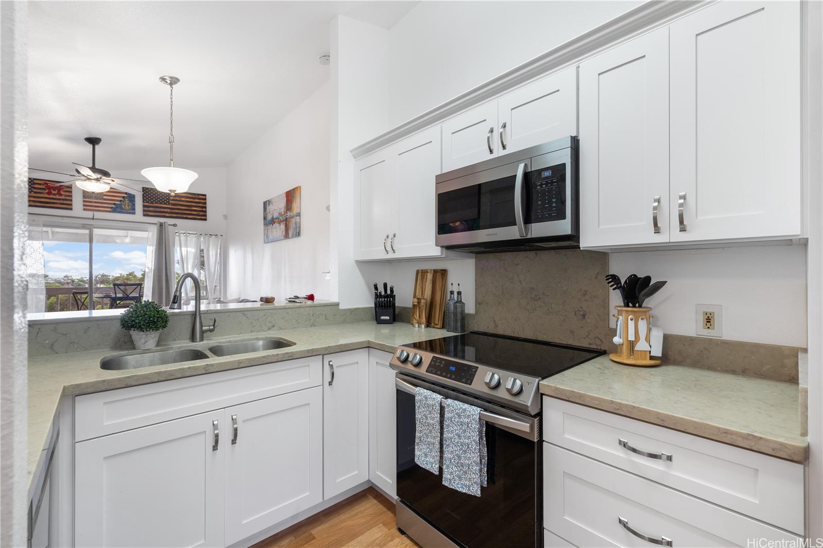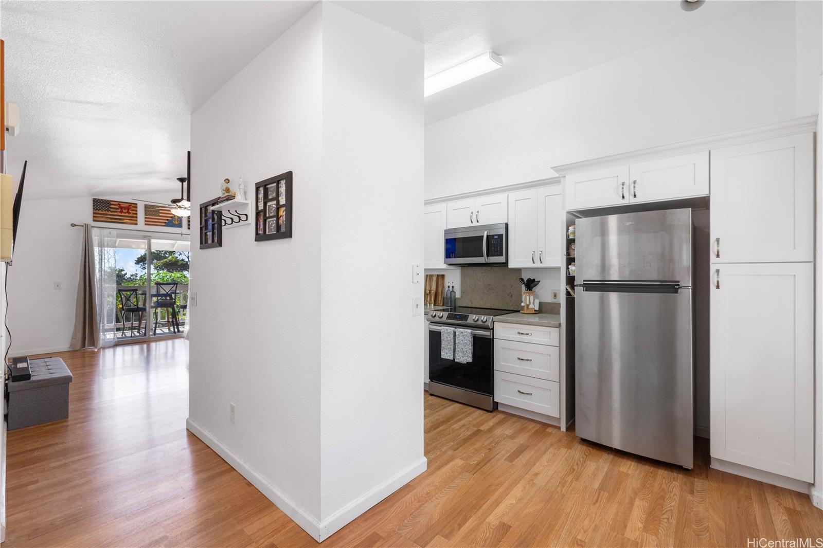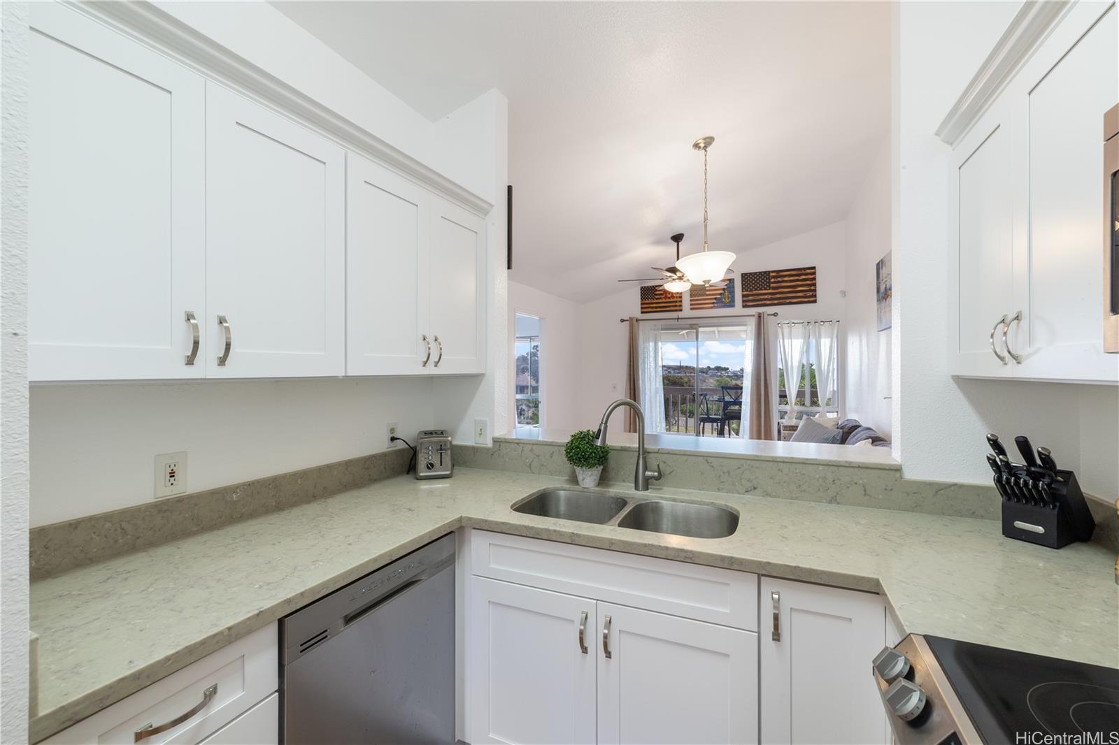 Price Reduced – Don’t Miss Out! Move-in ready 2-bedroom, 2-bath townhouse with 2 parking stalls at Westview at Makakilo Heights. The home features a beautifully updated kitchen with brand new cabinets, quartz countertops, a new sink, dishwasher, range oven, and microwave. Additional upgrades include an upgraded primary bedroom windowpane, a new lanai sliding door screen, two modern ceiling fans, and a tankless water heater. This second-floor unit offers added privacy with a covered lanai overlooking open greenery, great natural light, and partial ocean views. Pet-friendly building and conveniently located near schools, shopping, and H-1 freeway access. Assumable VA loan at 5.5% available for eligible veterans only, with an estimated gap of approximately $33,000. A great opportunity for first-time buyers, military, or anyone looking for a clean, updated, move-in ready home in Makakilo.
