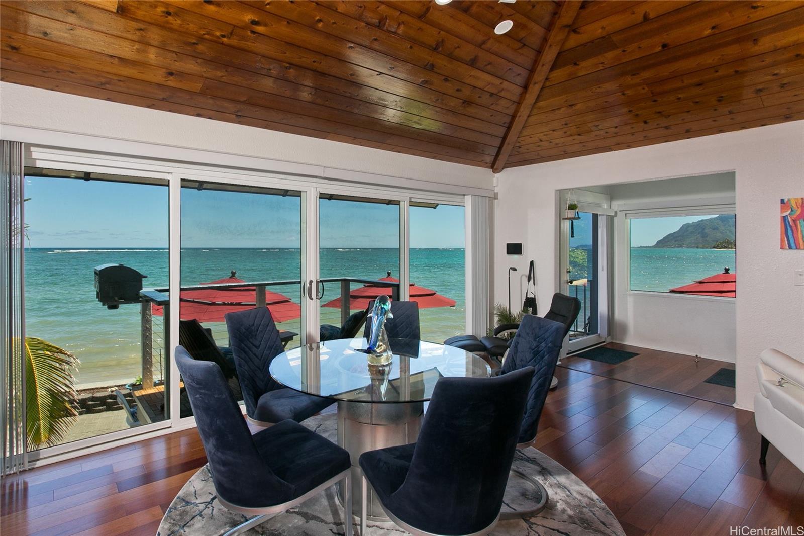 Step outside to 180° views stretching from mauka to makai. Bordering a white sandy beach, enjoy unobstructed vistas of turquoise waters, sandy coastline, and the majestic Ko?olau Mountains.