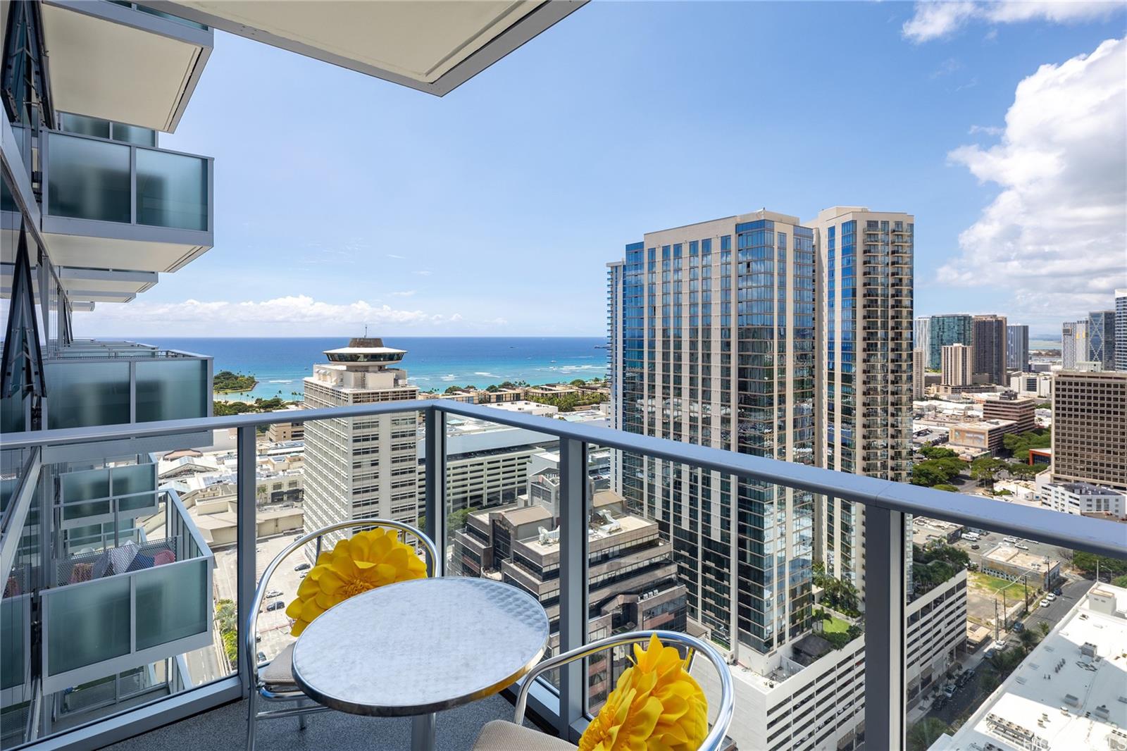Enjoy breathtaking ocean, mountain, Magic Island and city views through floor-to-ceiling windows.