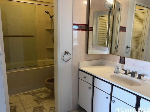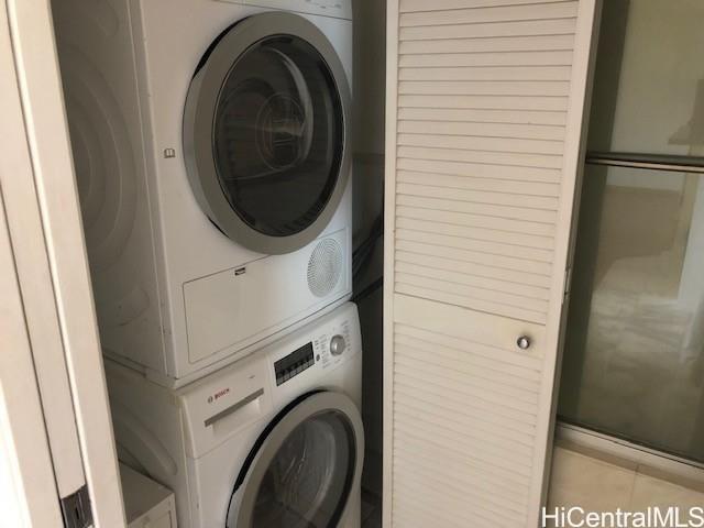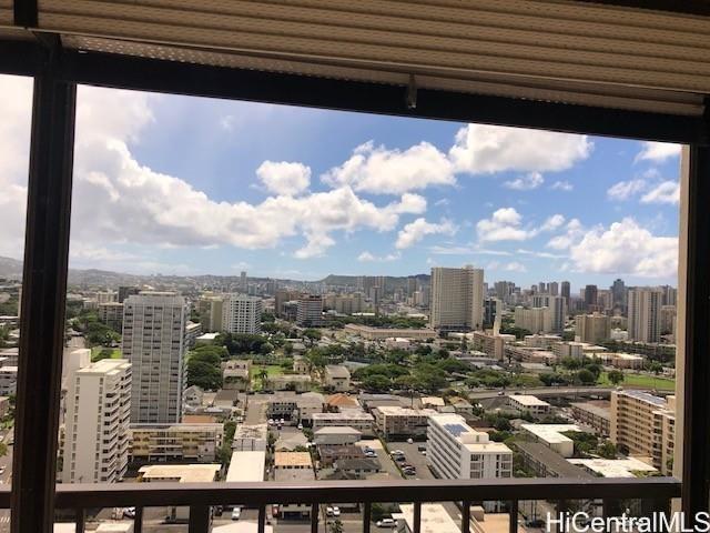 Large One bedroom with a separate den /office area with this part of lanai eclosed so 767 sq ft. interior. Also a nice big lanai 162 sq ft with ocean and mountain virws.This is a secured building and secured covered garage parking #229. Close to shopping, freeways, bus stop, schools. Remodeled laminate floors ,stainless steel appliances in the kitchen granite counters you can use for eating your breakfast and dinner is on. New Washer and Dryer . and Fridge. Bright with cool breezes . Great ammenites Pool. sauna .Whirlpool, resident Mananger.