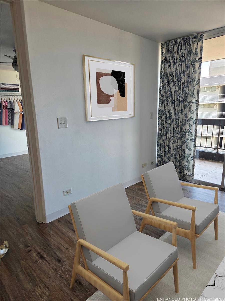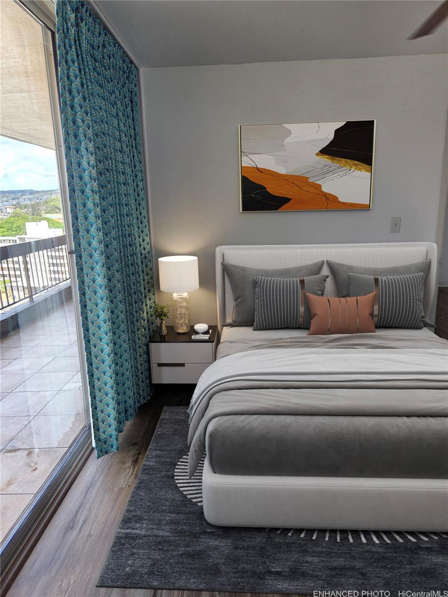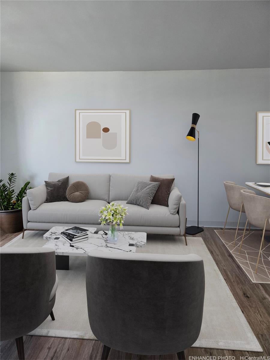 This lovely, corner end, one-bedroom, one-bath unit features a large lanai. City and skyline views of mountain and ocean. If location matters, enjoy easy, close proximity to H-1 access, convenient bus line route, Neal Blaisdell Center, Thomas Square Park, Honolulu Museum of Art, Open Market on Wednesdays at the Neal Blaisdell Center grounds, Ala Moana Shopping Center, Kaka'ako restaurants, University of Hawaii, and more. The property was previously renovated in 2021 to include cherry cabinets, Quartz countertops, a new sink, and stainless steel appliances in the kitchen. Updates also included a new bathroom vanity, sink, faucet, washer/dryer, toilet and mirror. Newer refrigerator 2024. New laminate flooring in the living room kitchen and bedroom. Bathtub was nicely reglazed. There is one assigned, compact, covered parking stall. A convenient Mini Mart located on the ground floor. As-is condition, no repairs, but Buyer will receive a one year warranty from America's Preferred Home Warranty upon closing.