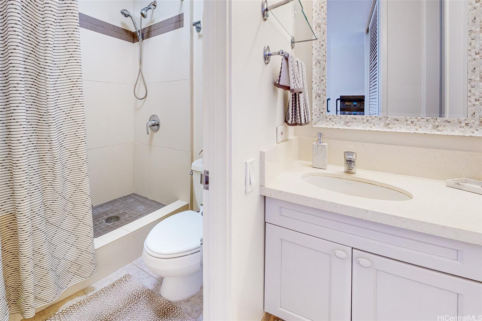 bathroom also has stylish tile flooring. Enjoy stunning mountain and city views from the spacious lanai. Additional