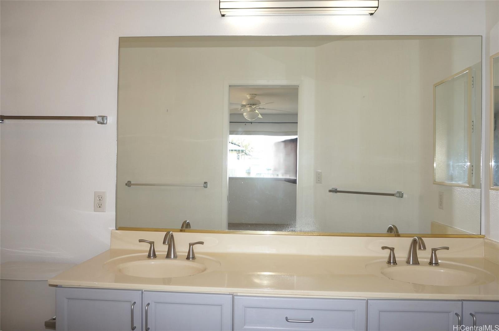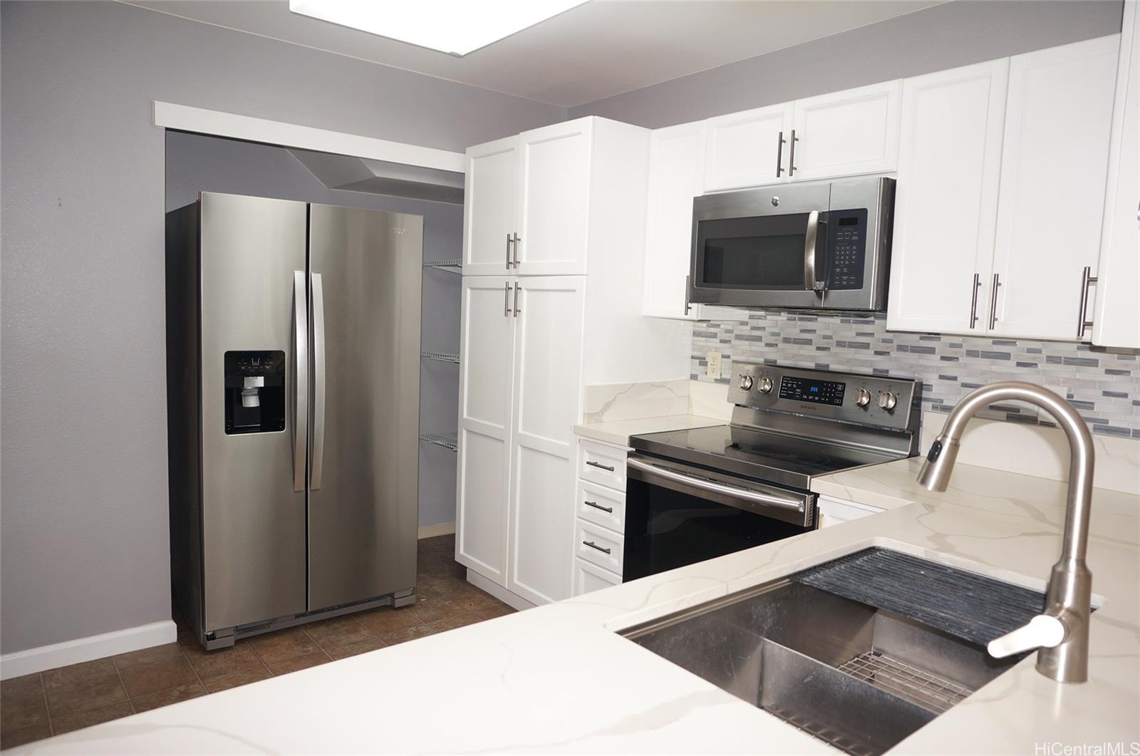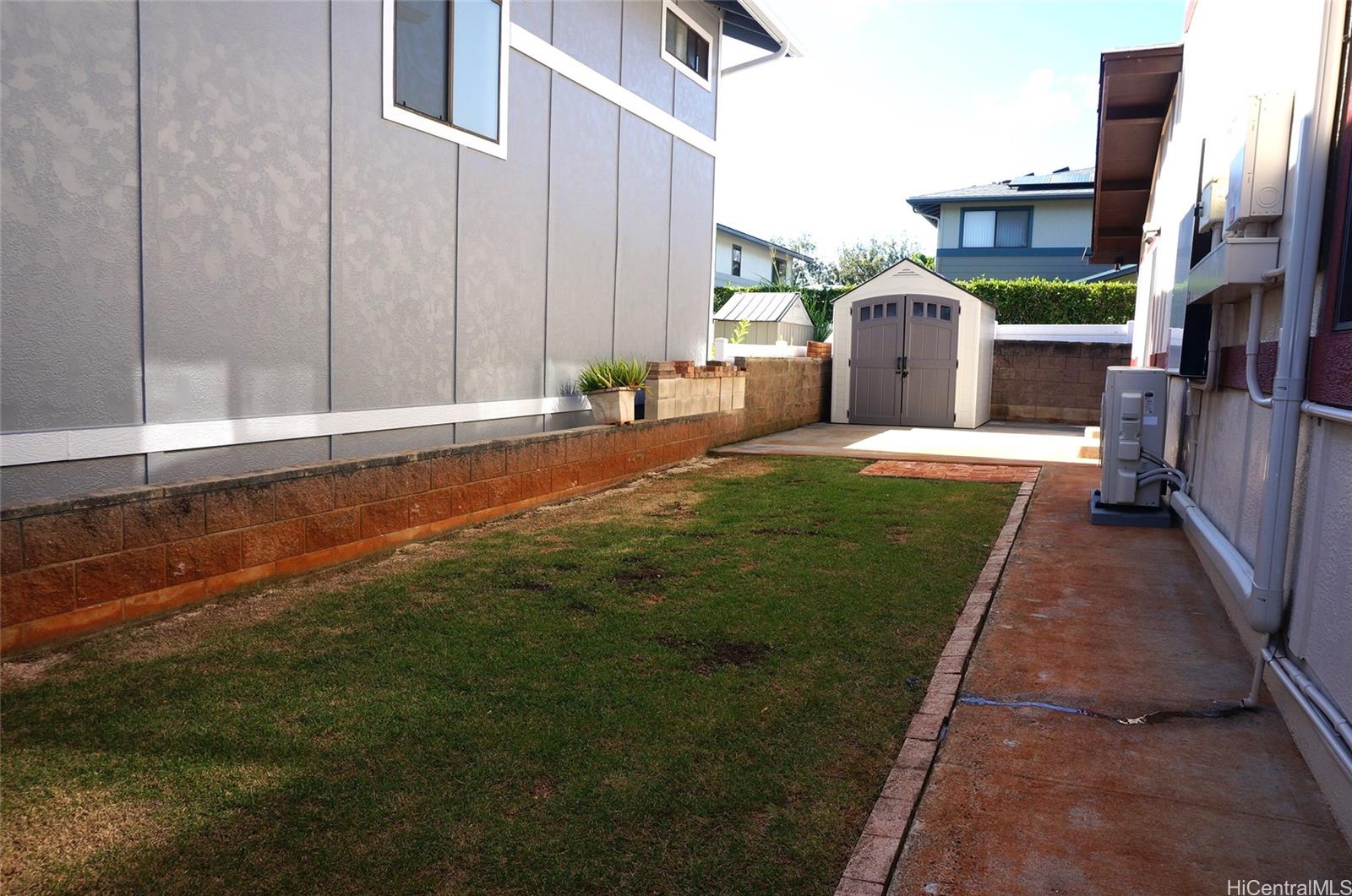Mililani Mauka excellence! Enjoy this prime, well-kept home in a cul-de-sac The “Hana Hou” model of the Encore series from Castle and Cooke. Large 3 bedroom, 2.5 bath single family home with a finished 2-car garage. Over 2,200 sq ft of interior, this home has two living rooms (extra large), dining area, and a loft area upstairs. New roof, home extension, and all new air conditioning installed in 2019. Large primary bedroom with a walk-in closet and double sinks in the en-suite bathroom. Recessed lighting adds to the comfort and style, and no popcorn ceilings. Original owner. The thoughtfully renovated kitchen offers tons of storage space, stainless steel appliances, and an impressively large quartz countertop, which overlooks and connects the kitchen to a possible dining room (which has even more storage cabinets). Perfect for entertaining and parties. 20 owned PV solar panels and a Tesla backup battery installed in 2019. Functional landscaping and a fully fenced backyard. There are 7 recreation centers in Mililani (Mililani residents only), shopping mall, Costco, and restaurants. Mililani is a central point to all of Oahu. Must-see home, you will not be disappointed. EZ TO SEE
