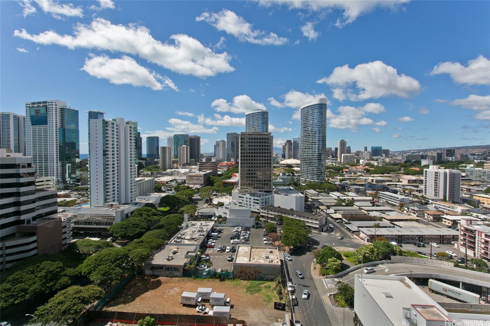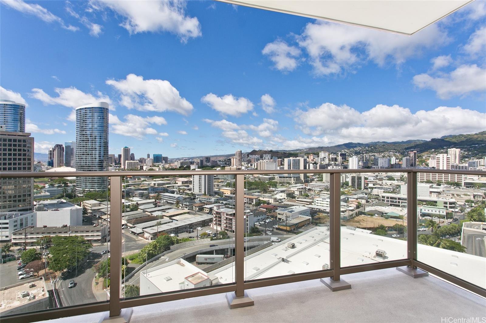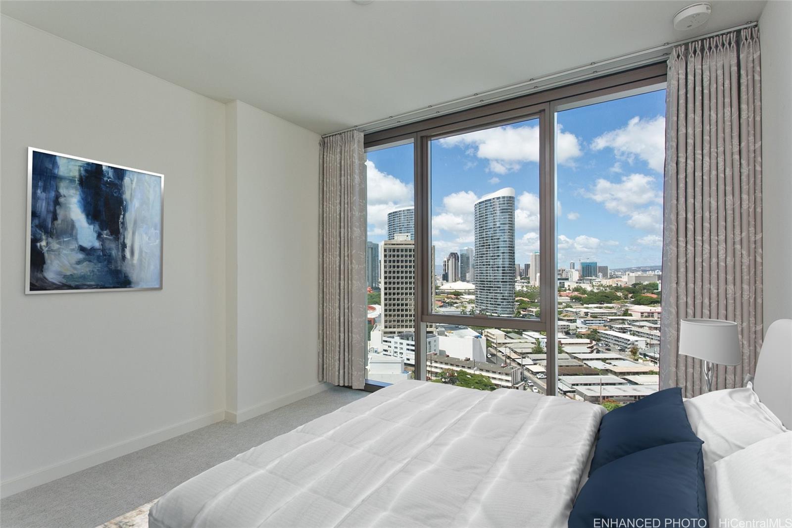 Experience the perfect blend of modern urban living and resort-style comfort in this 18th-floor residence at Sky Ala Moana West! This 1-bedroom, 1-bath unit features an open layout with floor-to-ceiling windows, creating a bright and comfortable living space. A spacious 100 sq ft lanai offers picturesque city and mountain views, ideal for relaxing or entertaining. The unit features custom-made Italian designed curtains and comes with a large storage locker. Residents can enjoy exclusive access to the Sky Terrace, a 50,000+ sq ft amenity deck with a resort-style pool, spa, fitness center, and more. Conveniently located in Ala Moana, near world-class shopping, dining, and beaches.