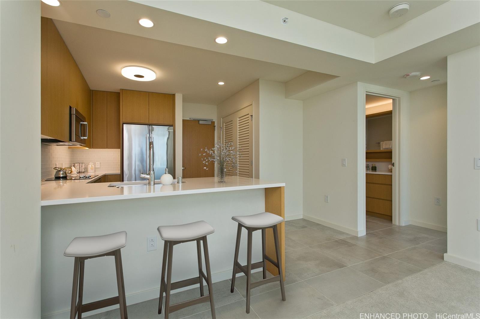 スカイ・アラモアナ・ウエスト18階のレジデンスで、モダンな都会の暮らしとリゾートスタイルの快適さが完璧に融合した空間をご体験ください。1ベッドルーム、1バスルームのこのユニットは、床から天井まで届く大きな窓を備えた開放的なレイアウトで、明るく快適なリビングスペースを演出しています。広々とした9.7平方メートル(100平方フィート)のラナイからは、絵のように美しい街と山の景色を一望でき、リラックスにも、お客様をおもてなしするのに最適です。ユニットにはイタリア製のカスタムメイドカーテンと大型収納ロッカーが備え付けられています。居住者は、リゾートスタイルのプール、スパ、フィットネスセンターなどを備えた50,000平方フィート(4,600平方メートル)以上のアメニティデッキ「スカイテラス」を独占的にご利用いただけます。アラモアナの便利なロケーションで、ワールドクラスのショッピング、レストラン、ビーチにも至近です。