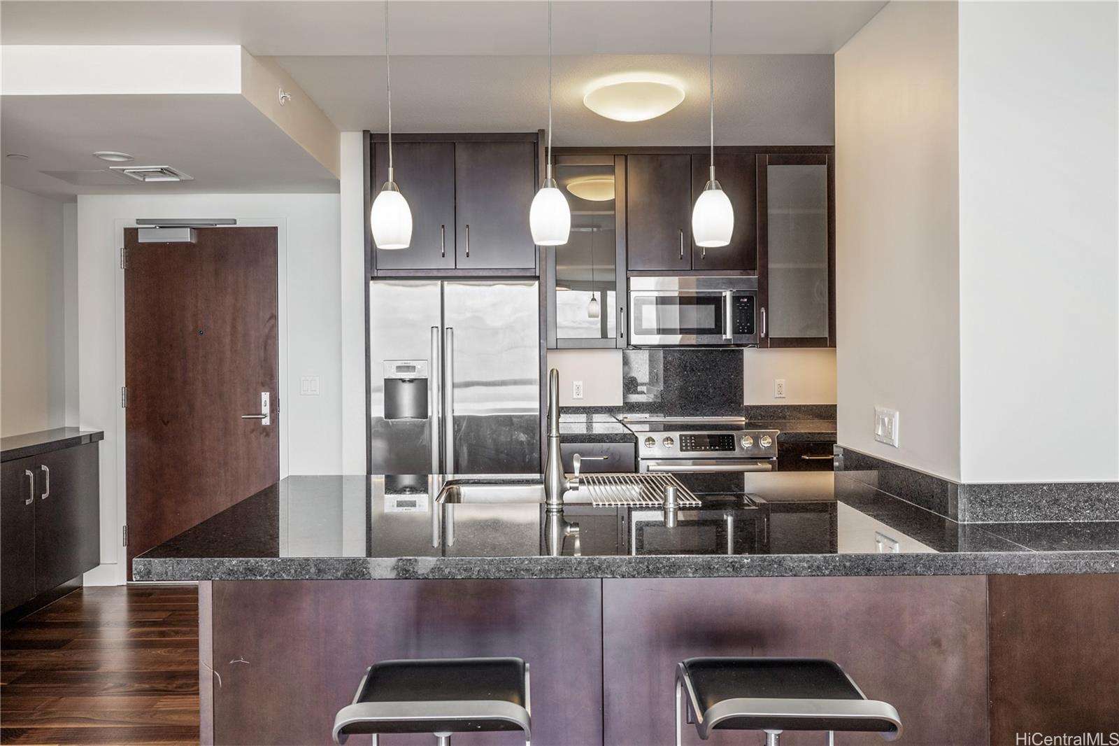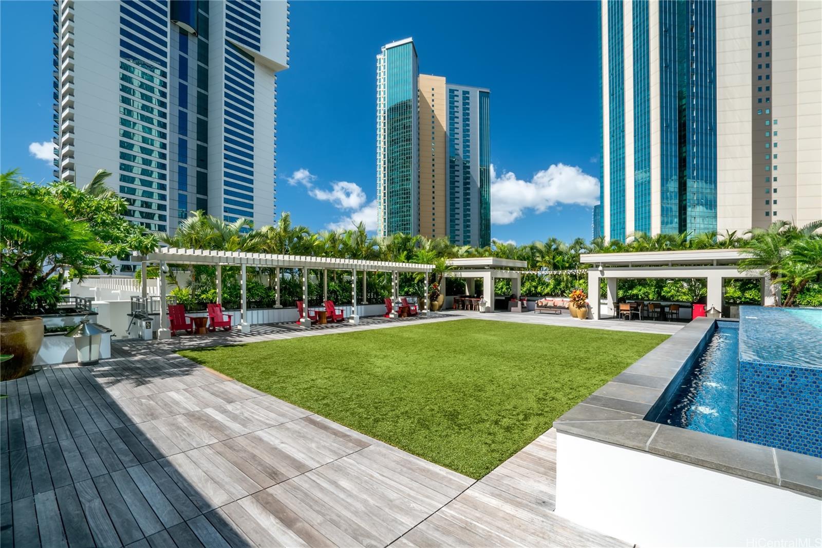 息を呑むほど美しい海とダイヤモンドヘッドの眺望を、この希少な40階建てレジデンスからご堪能ください。快適さとスタイリッシュさを兼ね備えたモダンな住まいは、床から天井まで届く大きな窓から自然光がたっぷりと差し込み、開放的な間取りからは息を呑むような眺望をお楽しみいただけます。温水プール、ジャグジー、プライベートカバナ、バーベキューパビリオン、スタイリッシュなクラブルーム、シアター、ラウンジ、最新鋭のフィットネスセンターなど、ワールドクラスのアメニティも充実しています。アラモアナビーチパークとアラモアナショッピングセンターからすぐ、ワードビレッジからも1ブロックという絶好のロケーションは、ラグジュアリー、利便性、そしてアイランドライフを融合した究極のライフスタイルをご提供します。真新しいフローリングと冷蔵庫も魅力です。