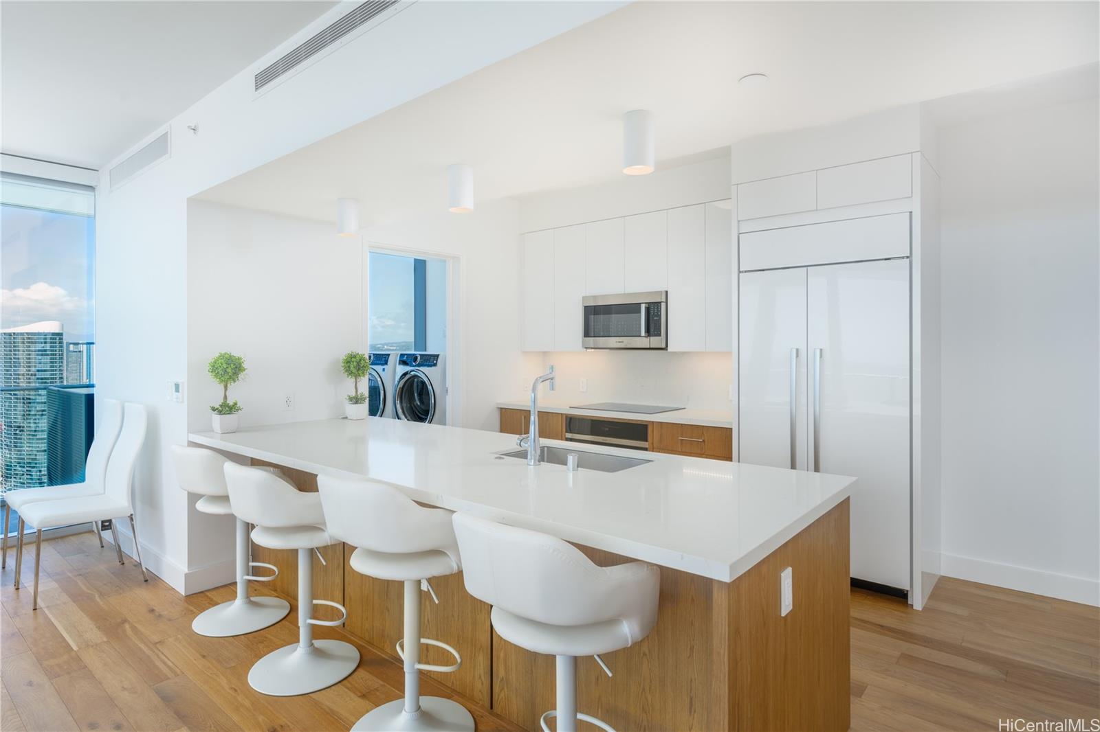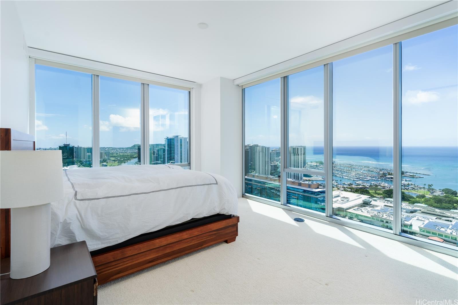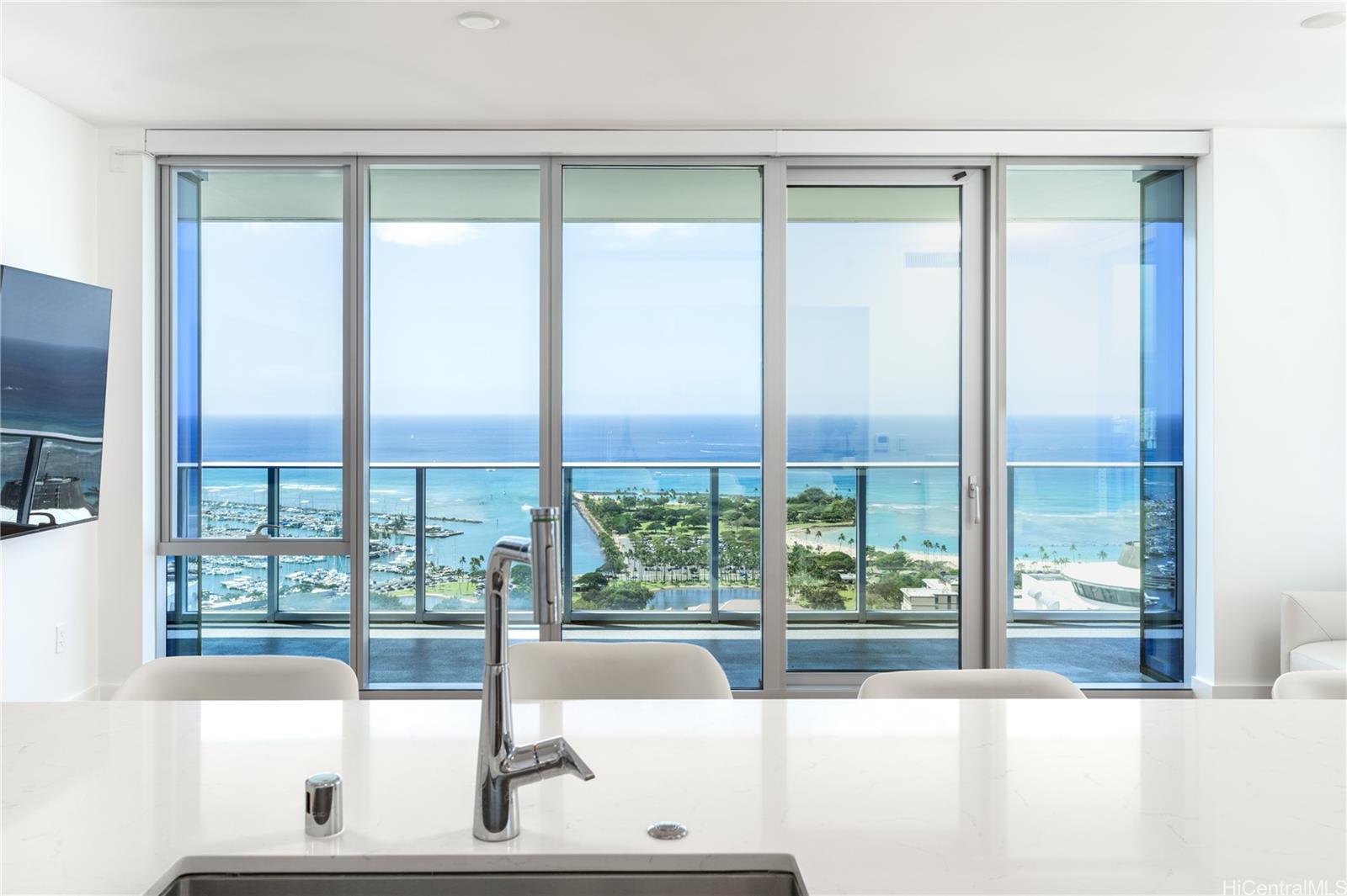 xperience luxury living in this highly sought-after 3-bedroom, 3-bathroom corner residence with 2 side-by-side parking stalls in the desirable 01 stack. Unit 3801 boasts 1,470 sqft of interior space and a 339 sqft wrap-around lanai, offering breathtaking Diamond Head, ocean, harbor, and sunset views. Floor-to-ceiling windows in every room flood the space with natural light, complemented by motorized roller shades, Toto bidets, and a split AC system for year-round comfort. Tastefully designed with modern finishes, the home features a Sub-Zero refrigerator, freezer, and wine storage, as well as stylish lighting throughout. Azure Ala Moana elevates your lifestyle with resort-like amenities, including a swimming pool, BBQ cabanas, fitness center, outdoor workout area, theater, dog park, and four guest suites.Located in the heart of Ala Moana, this prime residence is within walking distance to Ala Moana Shopping Center, restaurants, grocery stores, and Ala Moana Beach Park.