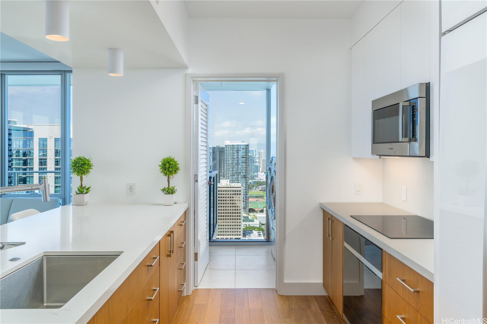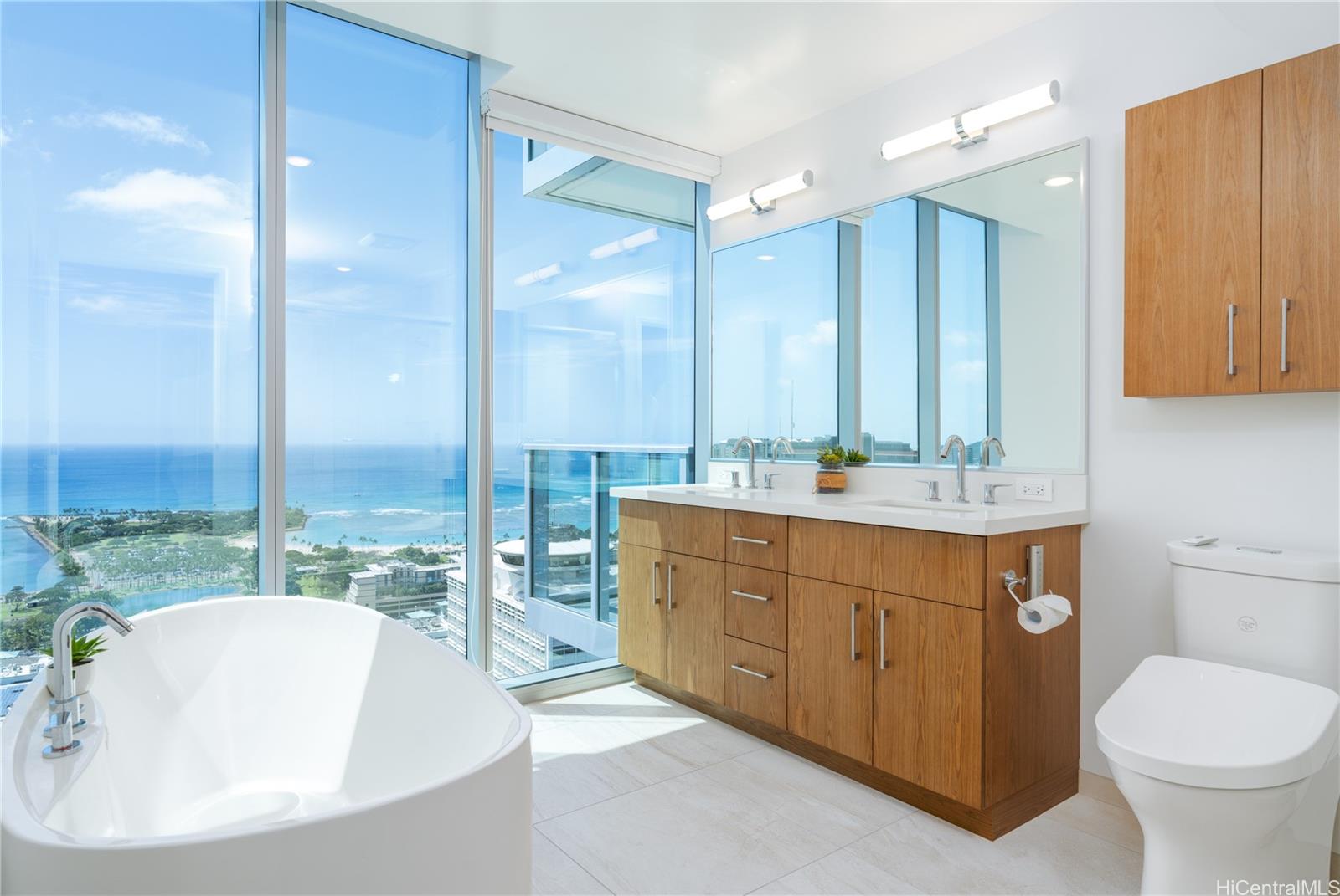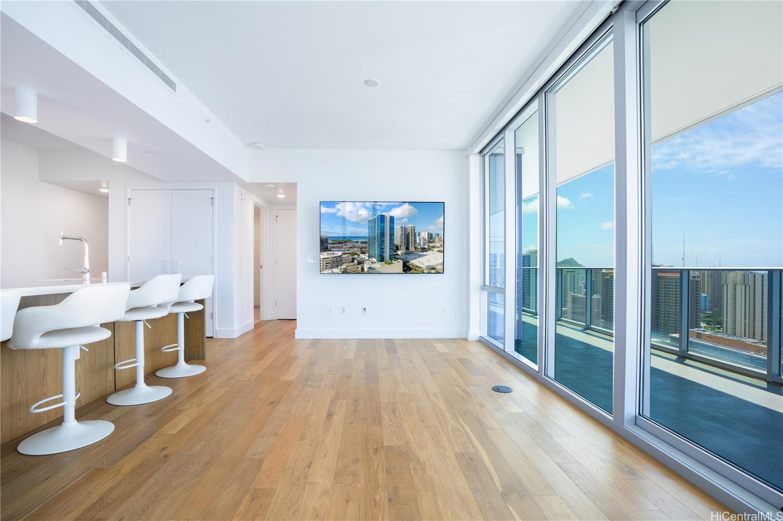 xperience luxury living in this highly sought-after 3-bedroom, 3-bathroom corner residence with 2 side-by-side parking stalls in the desirable 01 stack. Unit 3801 boasts 1,470 sqft of interior space and a 339 sqft wrap-around lanai, offering breathtaking Diamond Head, ocean, harbor, and sunset views. Floor-to-ceiling windows in every room flood the space with natural light, complemented by motorized roller shades, Toto bidets, and a split AC system for year-round comfort. Tastefully designed with modern finishes, the home features a Sub-Zero refrigerator, freezer, and wine storage, as well as stylish lighting throughout. Azure Ala Moana elevates your lifestyle with resort-like amenities, including a swimming pool, BBQ cabanas, fitness center, outdoor workout area, theater, dog park, and four guest suites.Located in the heart of Ala Moana, this prime residence is within walking distance to Ala Moana Shopping Center, restaurants, grocery stores, and Ala Moana Beach Park.