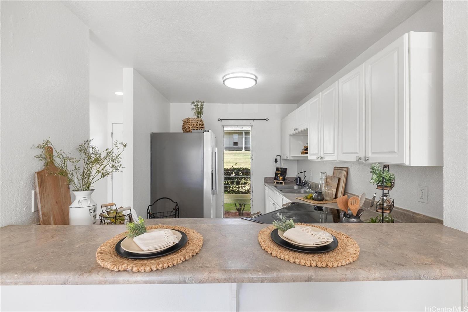 *VA loan assumption available at 3.375%* Don’t miss this exceptional opportunity! Welcome to Palehua Gardens in Makakilo! This corner end-unit townhome offers 3 bedrooms and 2 full baths with ocean, mountain, and city views from upstairs. Enjoy the comfort of recent upgrades including an updated electrical panel, washer/dryer, refrigerator, and water heater. The attic is insulated, keeping the upstairs cooler. The upstairs bathroom was renovated in 2023 and features a bidet. The spacious open-concept living area leads to a private, enclosed courtyard with a storage shed, ideal for BBQs, your furry friends & indoor/outdoor living. A rare layout includes two full bathrooms, with one conveniently located on the first floor. Also a part of the Palehua Community Association, enjoy access to the Kanehoa Recreation Center with a pool and recreation areas. *Current VA assumable loan balance $505,017.95, Current monthly loan payment $2,697.30 (excluding maintenance fees), Service Provider - Penny Mac, and Buyer must have full VA entitlement to assume loan and be open to early occupancy for longer closing timeline.