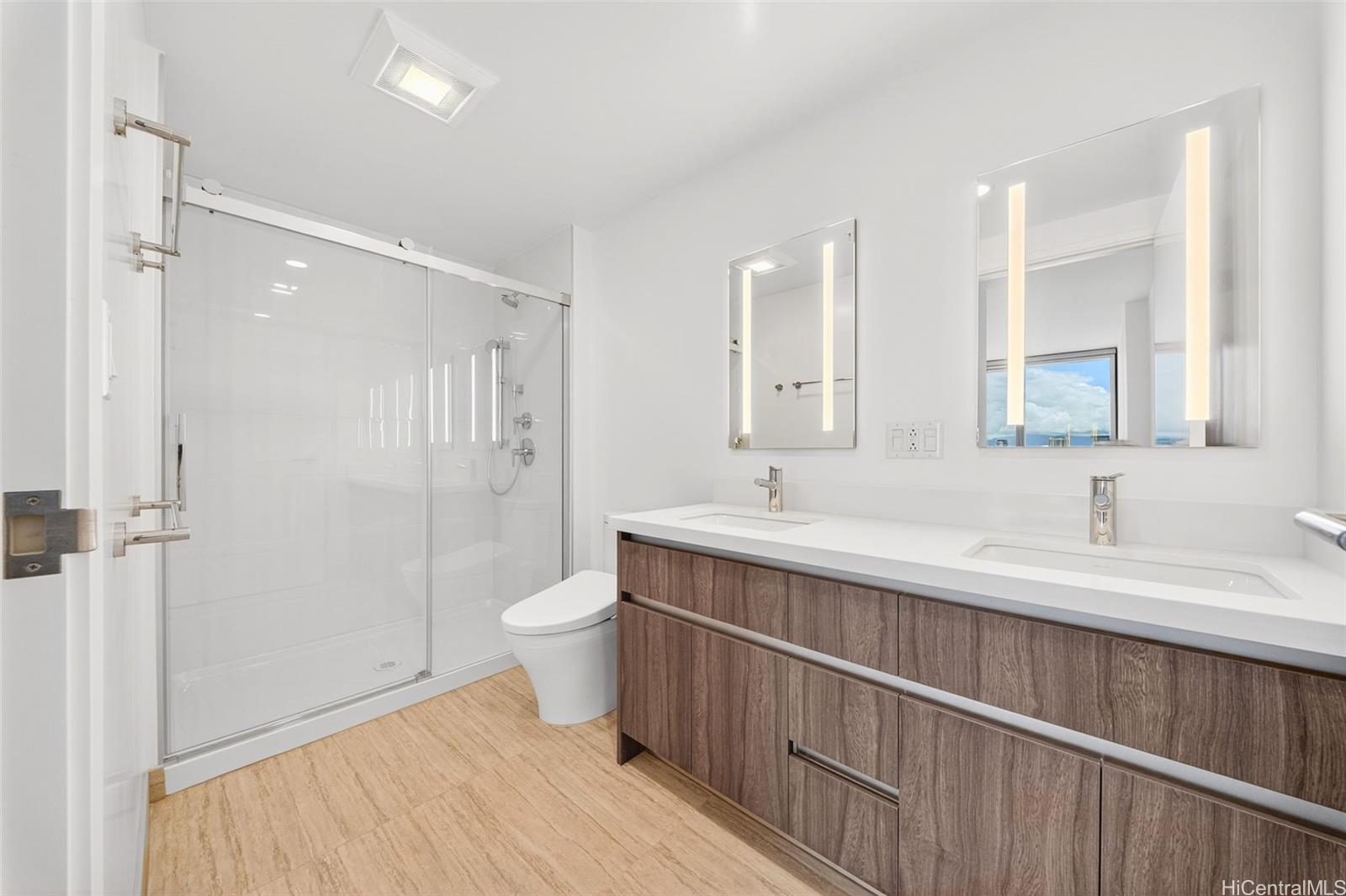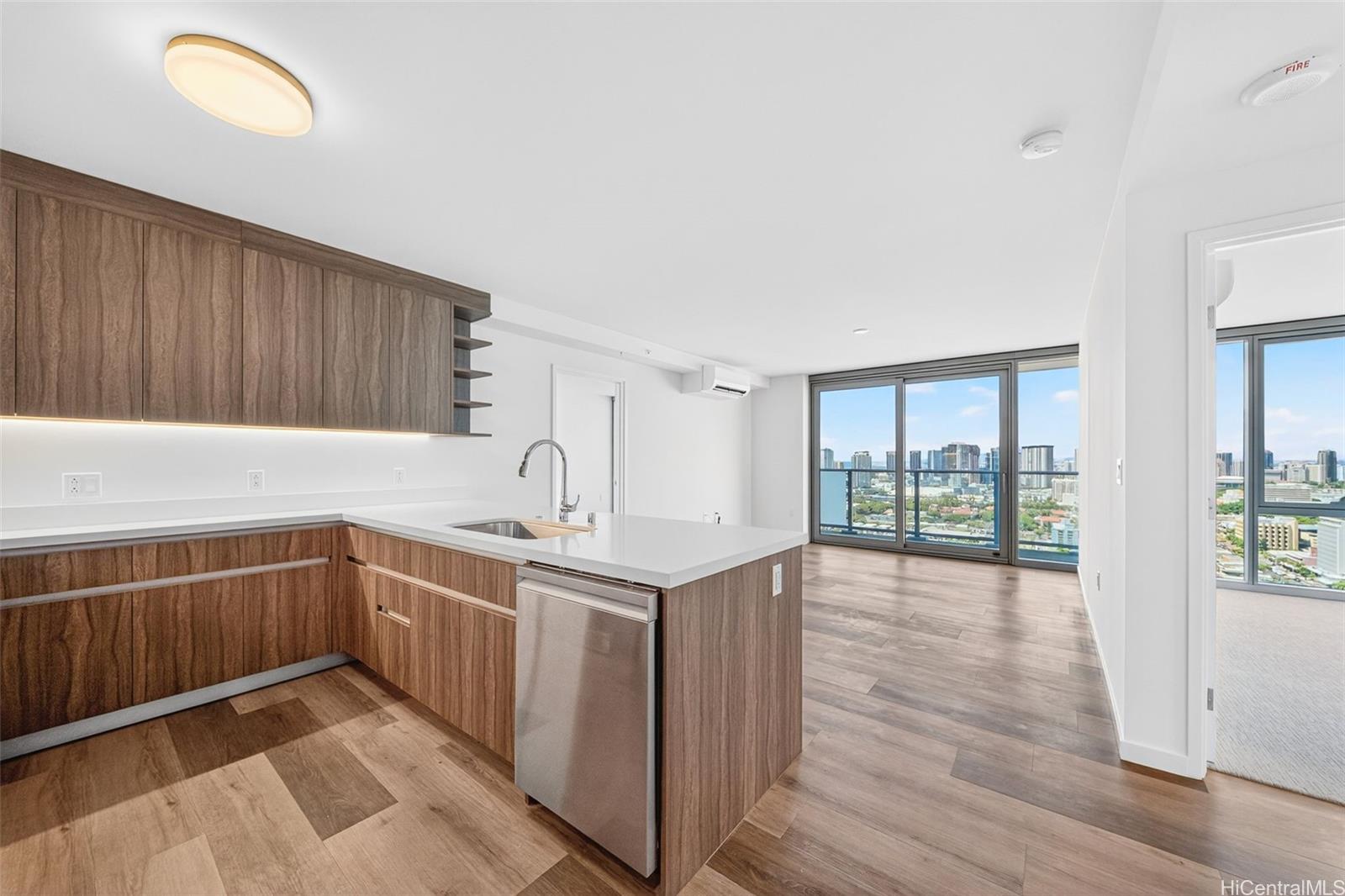 Welcome to The Park on Keeaumoku - Honolulu’s newest landmark community and best LOCATION, where modern design meets island elegance. Perched on the 32nd floor, this brand-new, never-lived-in 2-bedroom, 2-bath, 2-parking (one of the rarest 02 unit with two parking) offers 913 sq. ft. of modern conveniences, filled with natural light through the floor-to-ceiling windows and luxury vinyl plank flooring in the living room and kitchen, quartz countertops, modern frameless cabinetry, split A/C in all rooms, TOTO Bidet toilet, and a convenient separate laundry room and storage closet. Enjoy resort-style amenities including an infinity-edge pool, spa, private cabanas, BBQ pavilions, theater room, fitness and yoga studios, sauna, co-working spaces, and nearly half an acre of landscaped green space at ground level. The Park on Keeaumoku is pet-friendly, secured, and centrally located near Ala Moana Center, beaches, shopping, dining, and entertainment. With on-site retail and dining coming soon, this residence combines luxury, lifestyle, and convenience in one of Honolulu’s most dynamic and walkable neighborhoods — where city living truly meets resort-style sophistication.