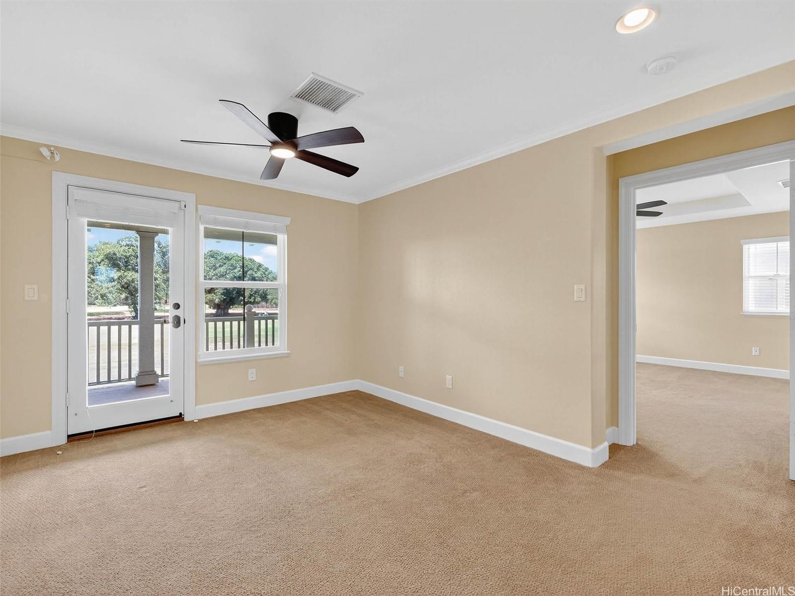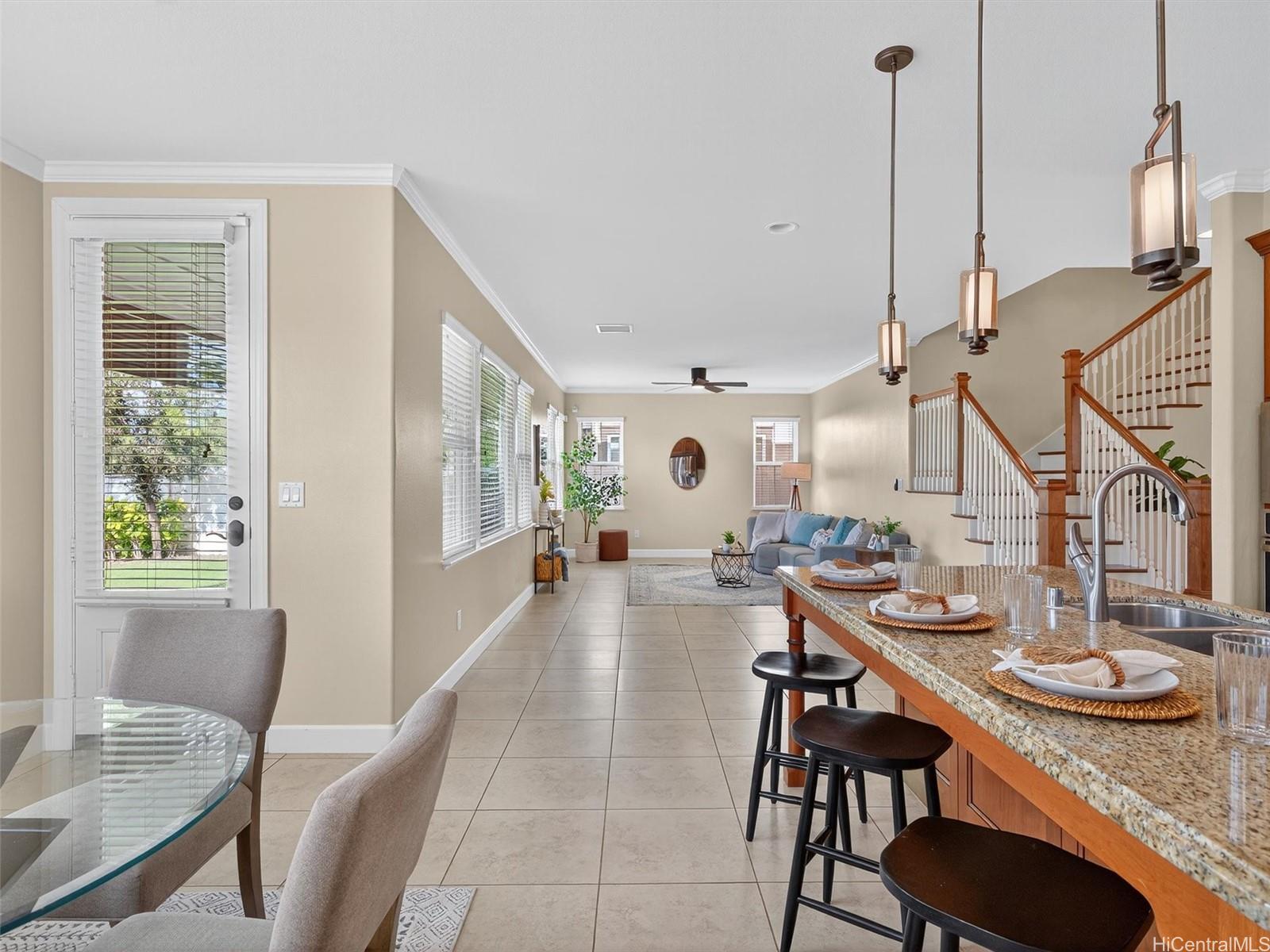 SELLER OFFERING $20,000 CREDIT FOR BUYERS' CLOSING COSTS OR 2/1 BUYDOWN. Discover relaxed island living with an elegant twist at this beautiful Ka Makana residence—where your backyard opens to the Barber's Point golf course. The open layout fills the home with natural light and flows effortlessly from the living and dining areas to the backyard, creating a true indoor-outdoor experience. It’s the perfect setting to entertain and embrace the Hawaiian lifestyle with family and friends. On the lower level, a dedicated office or study provides a quiet retreat for work or creative projects, along with a full bedroom and bath. Upstairs, the primary suite features dual walk-in closets and a spa-inspired bath, creating a serene escape. Two additional bedrooms and a full bath complete the upper level, along with a lanai overlooking the golf course. This home is equipped with owned PV panels and solar water heating, helping to reduce monthly energy costs.Resort-style living awaits in Hoakalei, with a $281/month HOA that covers internet, cable, access to the community pool and tennis courts, plus the nearby Wai Kai surf and lagoon destination featuring dining, events, and a vibrant community.