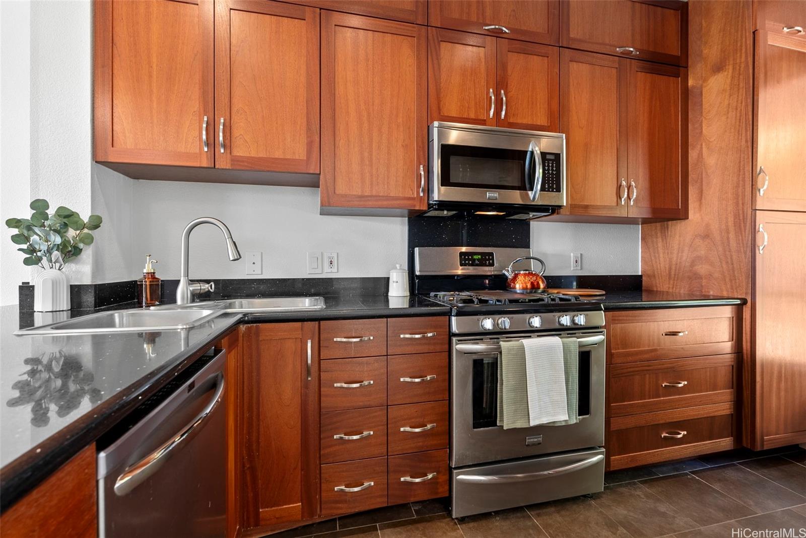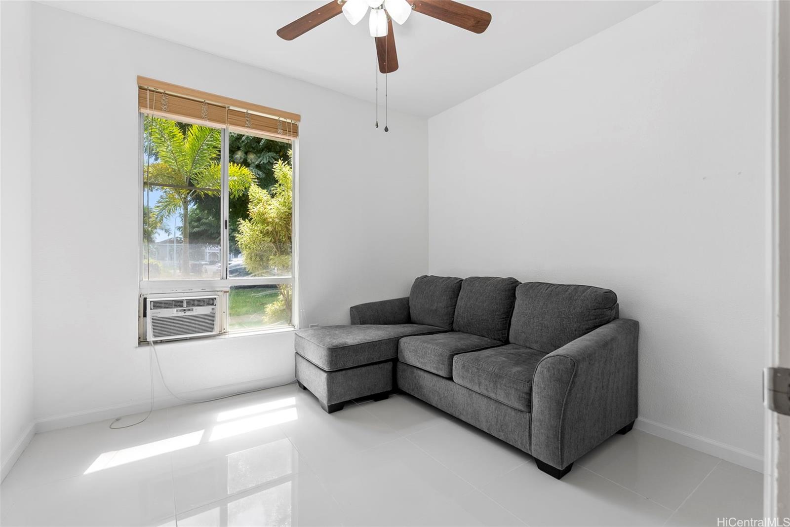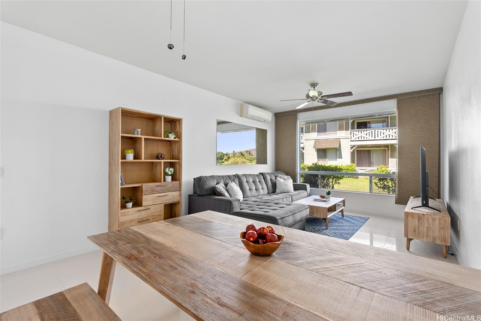 Don’t miss this gorgeously updated ground-floor townhome in the well-maintained Kekuilani Villas. This delightful 2-bedroom, 1-bathroom home with 2 assigned parking stalls features desirable golf course views overlooking Kapolei Golf Course. Inside, enjoy an updated kitchen and bathrooms, tile flooring throughout, and high ceilings that create a bright and airy atmosphere. Residents also enjoy access to community amenities including a pool and BBQ area, along with ample guest parking for family and friends. Conveniently located near Ka Makana Ali‘i Mall, shops, eateries, boutiques, daily necessities, and the rail, this move-in ready home offers the perfect blend of comfort and lifestyle.