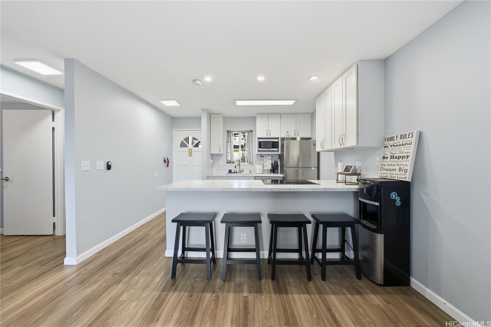 VA引受金利4.75%!島で最も魅力的な居住地の一つ、マカキロ・クリフスへようこそ!美しく手入れされた2ベッドルーム、2バスルームの1階ユニットは、美しい景色と島暮らしの雰囲気をお届けします。2022年に念入りに改装されたキッチンには、ステンレス製の電化製品とクォーツ製のカウンタートップが備えられ、モダンな雰囲気を醸し出しています。ドアを開けるとプライベートな屋外ベランダに出られ、心地よい風を感じながら、周囲の海と山の景色を一望できます。屋外には屋根付き駐車スペース2台分、共用バーベキューグリル、パティオがあります。カポレイ・ショッピングセンターをはじめ、数多くのカフェやレストランも近く、街の中心部にありながら、ゆったりとしたプライベート空間を求める方に最適です。