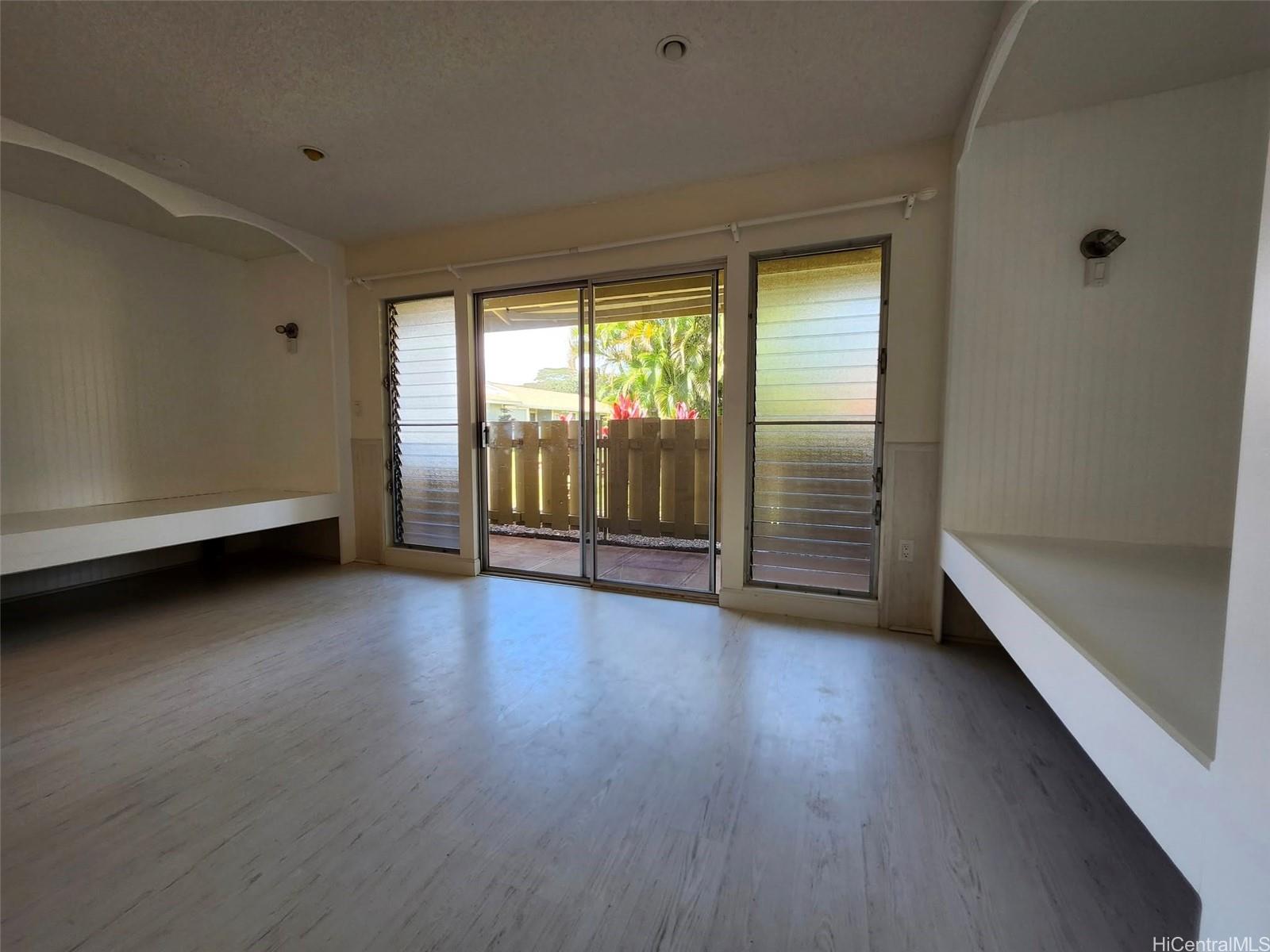 " VA ASSUMABLE LOAN $ 233,000 @ 2.5 %. SELLER WILL CONSIDER BOTH VA BUYERS & NON VA BUYERS. OWNER OCCUPANTS & INVESTORS" Spacious renovated studio located in the gated senior facility Oloaloa in Mililani Mauka, for residents 55+. Pet friendly. One dog or 2 cats allowed per unit. Just renovated with new paint. Custom built under the sink cabinet door installed Two built-in Twin beds with space to store items under the bed. Attached bath with Toto Toilet Washlet. Lots of kitchen shelves. Wood laminate & ceramic tile floors for easy maintenance. Sliding doors open into a cute fenced in backyard. Very private corner end unit. 1 assigned parking stall # 289. Building # 31 is located in front of Olaloa's gated entry and close to the community center with lots of guest parking. On-site resident manager & onsite after hour assistant. Lots of amenities. Exercise room, library, music room, meeting room, game room. Close to the bus stop, shopping, restaurants & easy access to the freeway. Residents must be 55 years or older, with no restrictions on ownership.