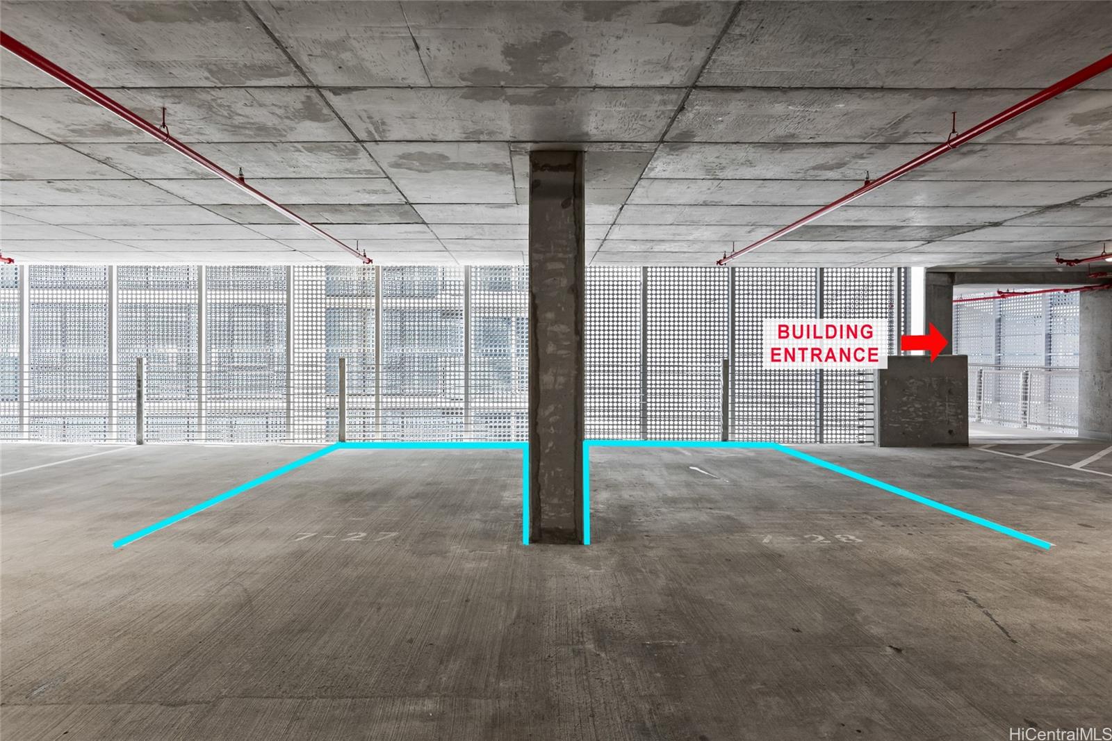 Call Andrew - 808-781-5378. Guest parking on level 2.5 and find the stall showing guest parking. Head towards the park and take the escalato...