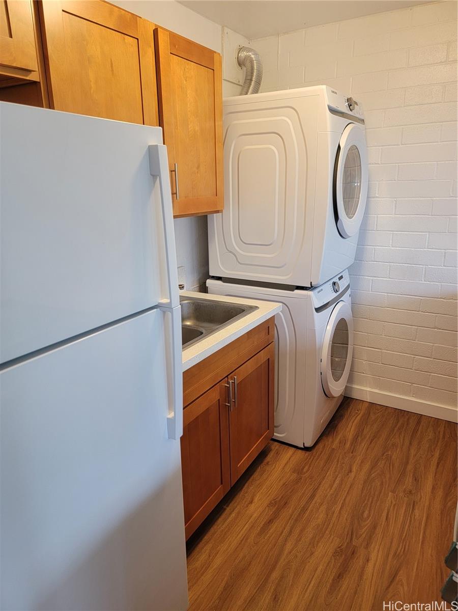 Move-in ready, this 2-bedroom, 1-bath, 1-parking stall home has been freshly updated with new vinyl flooring, interior paint, newer refrigerator, range oven and washer-n-drier. The bathroom features a new vanity and faucet, while the open kitchen has a pass through into the dining and flows into the living area — perfect for enjoying the cool trade winds. Conveniently located near Highways, shopping, restaurants, and more. Put this one on your must-see list! Some photo have been Virtually Staged.