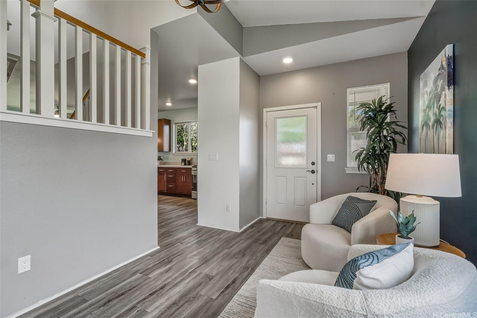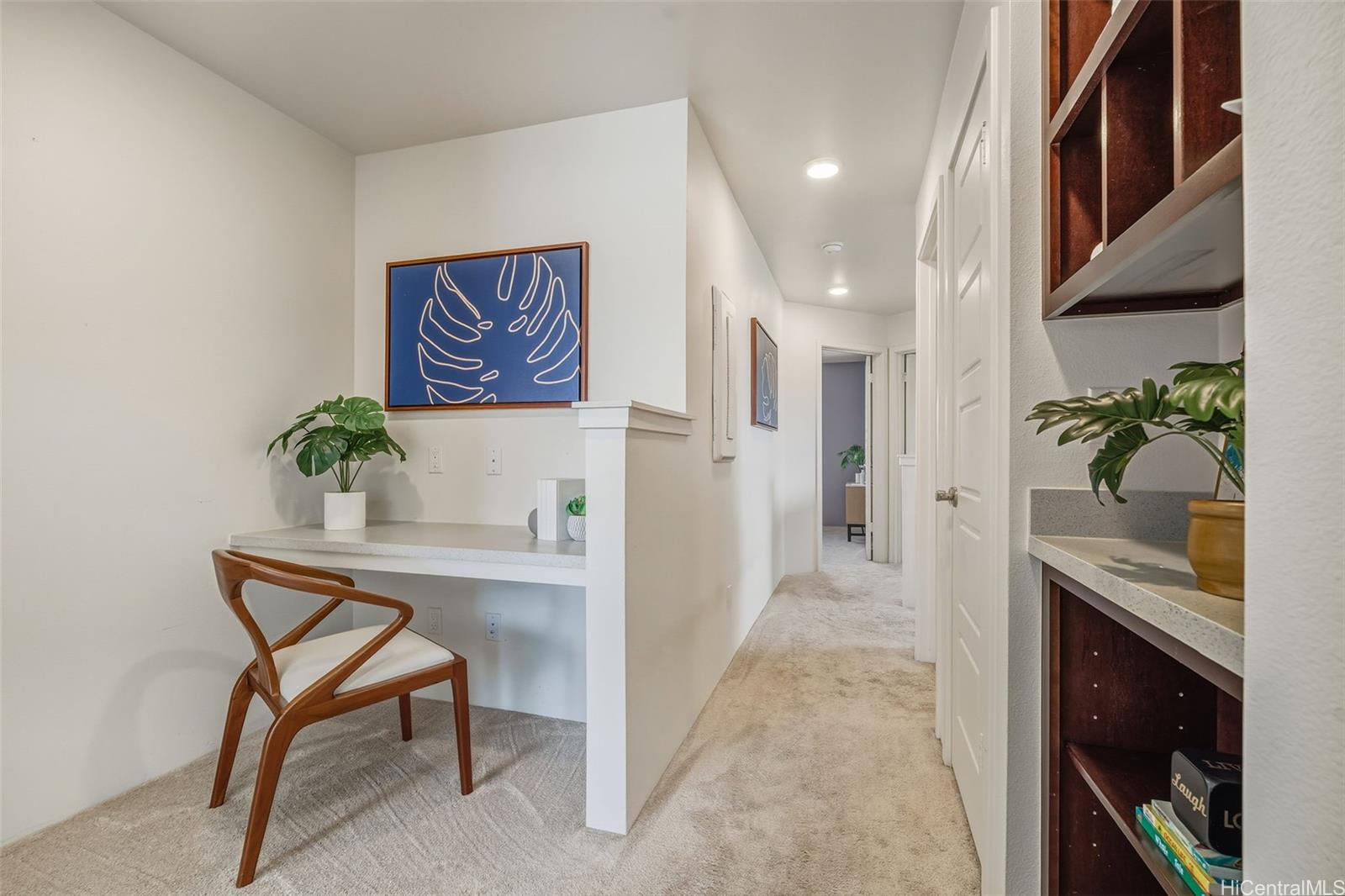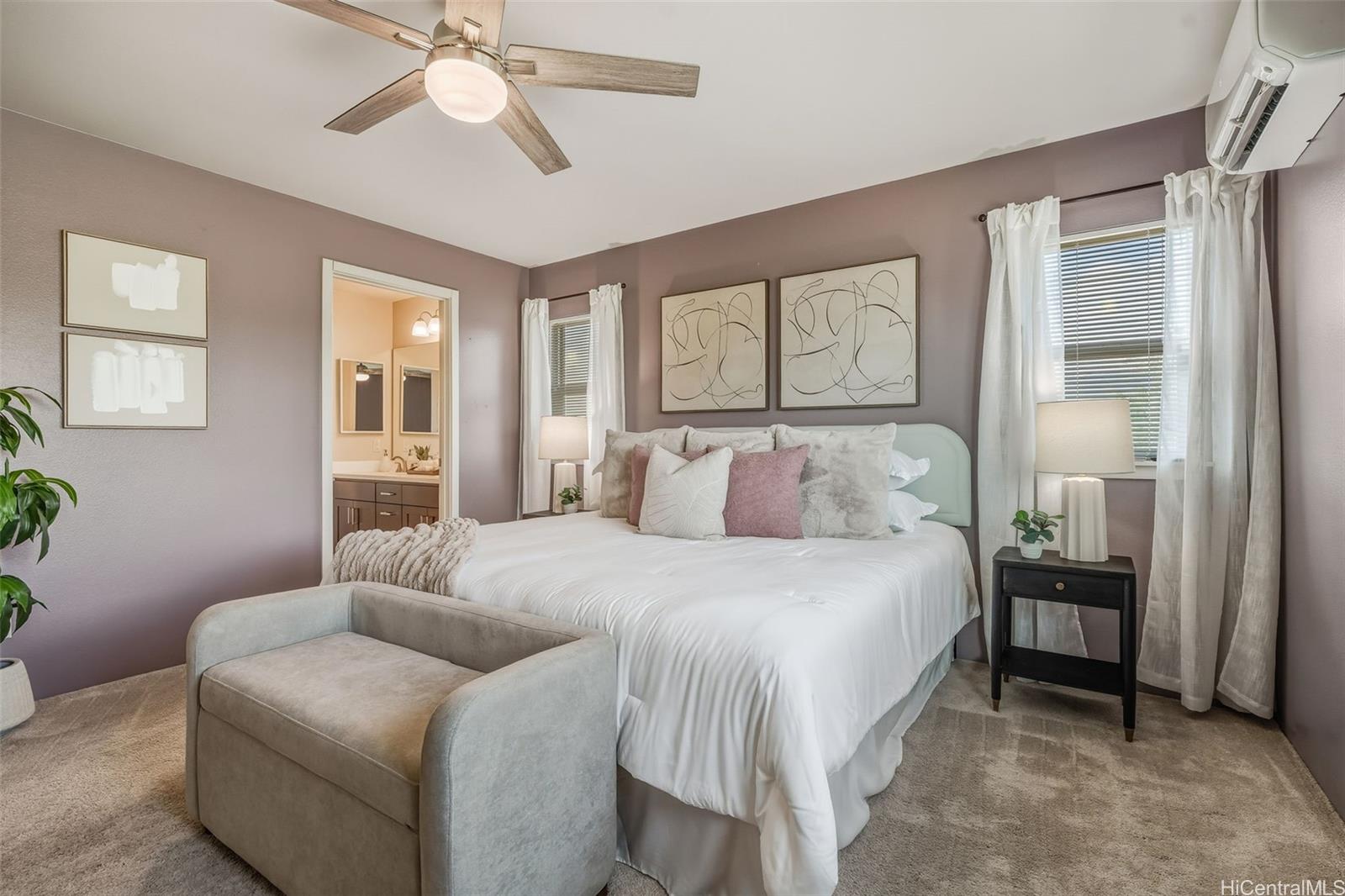*30 Owned Solar w/3 Batteries* This well-maintained Grove (Plan 5) is a rare and popular 4 Bed/2.5 Bath single-family home in Iliahi at Hoopili, a fast-growing modern/contemporary design community. This home features a spacious open-concept living/dining room area, a centrally located kitchen w/stainless appliances & GAS range, and raised breakfast bar. The home includes the COOL Package, upgrading the countertops to quartz and flooring to luxury vinyl planks. All bedrooms are carpeted w/split AC units in every room. The home also comes w/fresh paint. The upstairs hallway has a built-in desk and shelves, linen storage closet, and a full 2nd bathroom. In addition, this home has 2 covered lanais, landscaped yard w/an automatic irrigation system and Urban Garden, an attached 2-car garage with a laundry sink and washer & dryer, and an auto garage door opener. The developer also included EV-ready hookups, tankless gas water heater, gas bbq hookup, and Smart Home System. The Ho'opili master planned community includes many parks, playgrounds, urban gardens, shops, dining, and much more! Close to Skyline Rail, beaches, resorts, golf, schools, hikes... Why wait? Schedule a showing today!