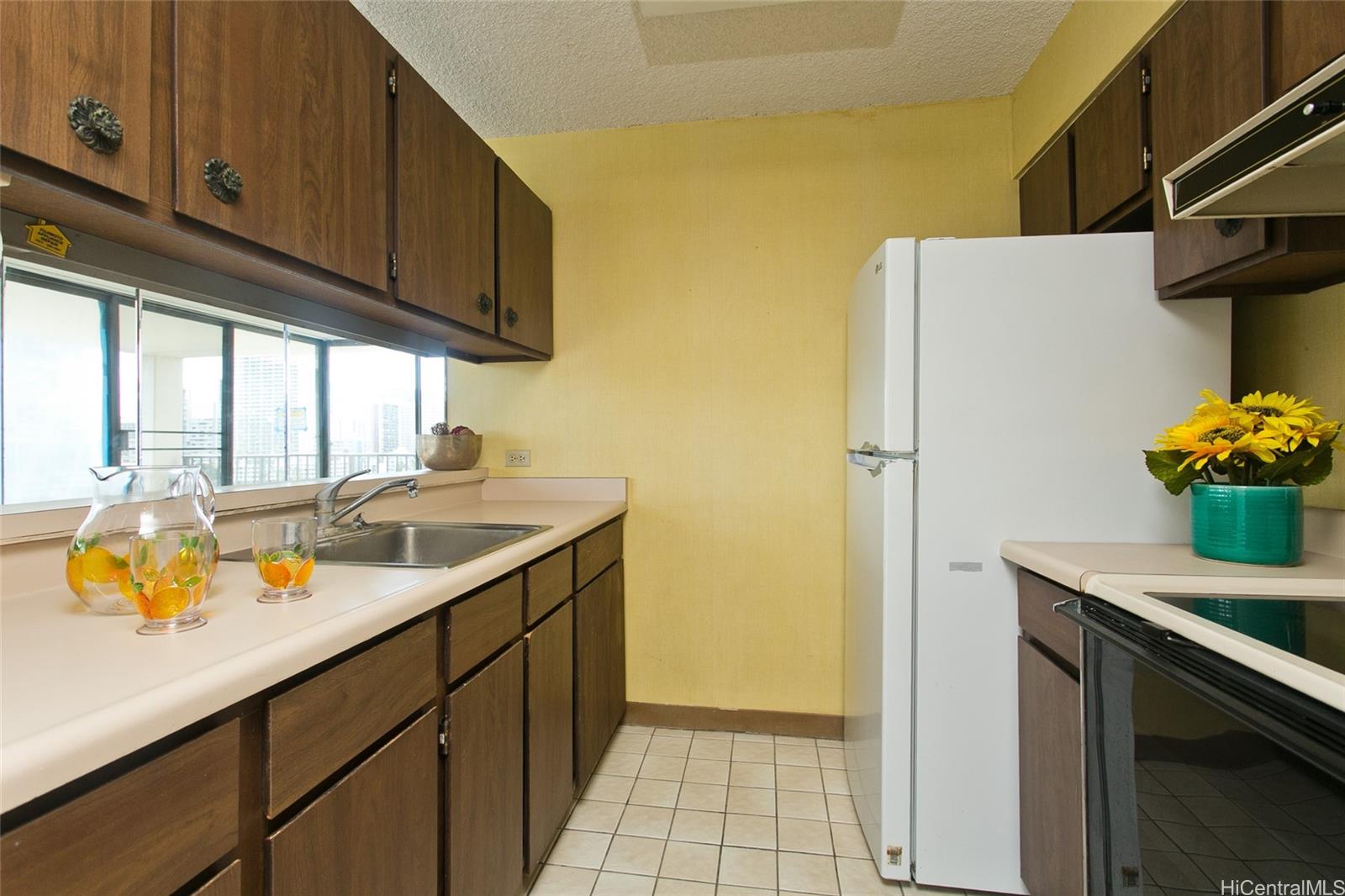 人気の高いカピオラニ地区に位置する、1ベッドルーム、1バスルームのコンドミニアム。ダイヤモンドヘッド、アラワイ運河、アラワイ・ゴルフコースのパノラマビューをお楽しみいただけます。561平方フィート(約53平方メートル)の室内空間と複数のラナイを備えたこのユニットは、初めてのマイホームとしても、投資物件としても優れた可能性を秘めています。ショッピング街や高速道路へのアクセスも便利で、ワイキキやホノルルのダウンタウンからもわずか数分です。屋根付き駐車場と常駐のプロパティマネージャーが付きます。多少の手入れは必要ですが、あなたのビジョンを形にしてください!