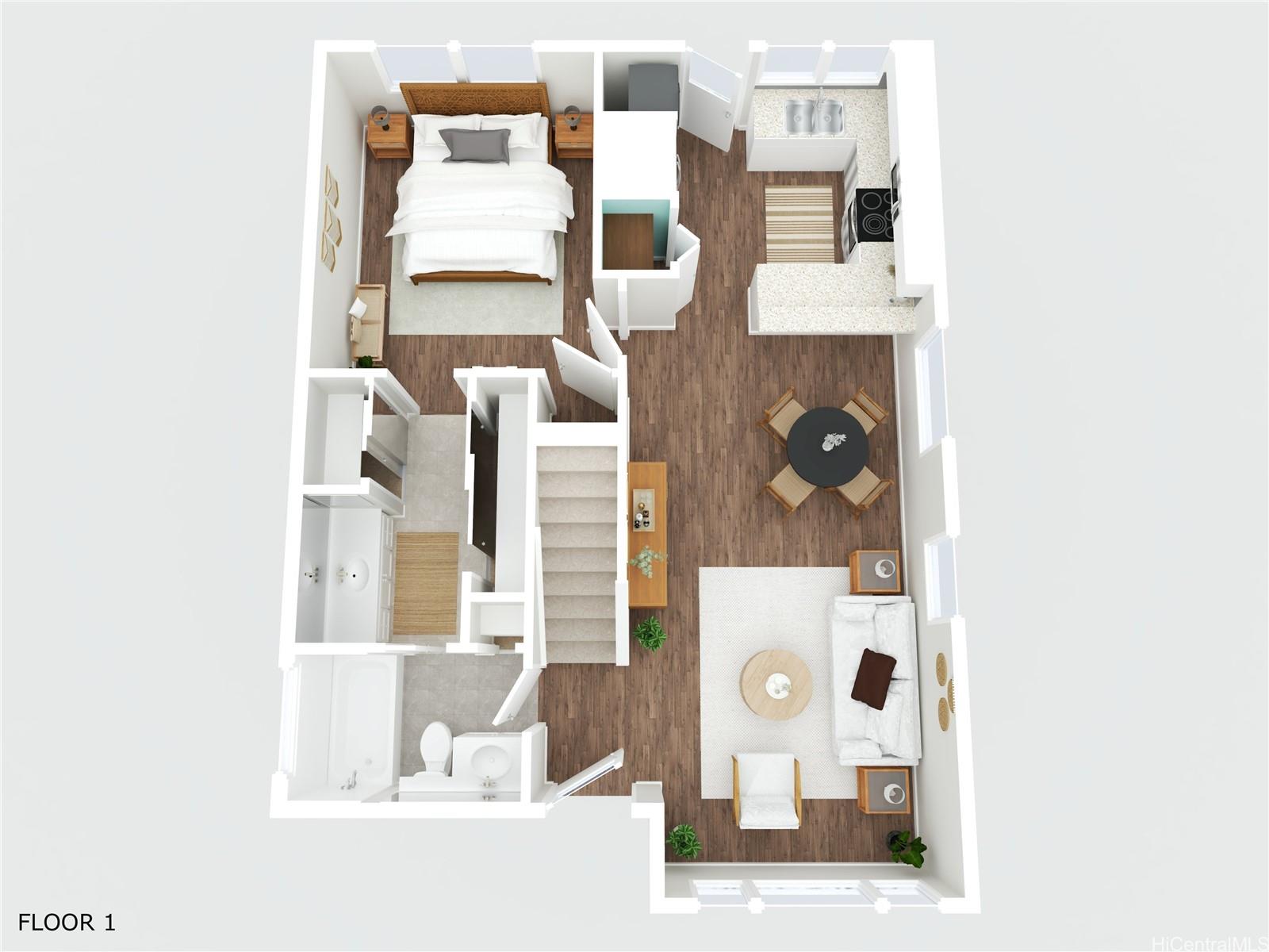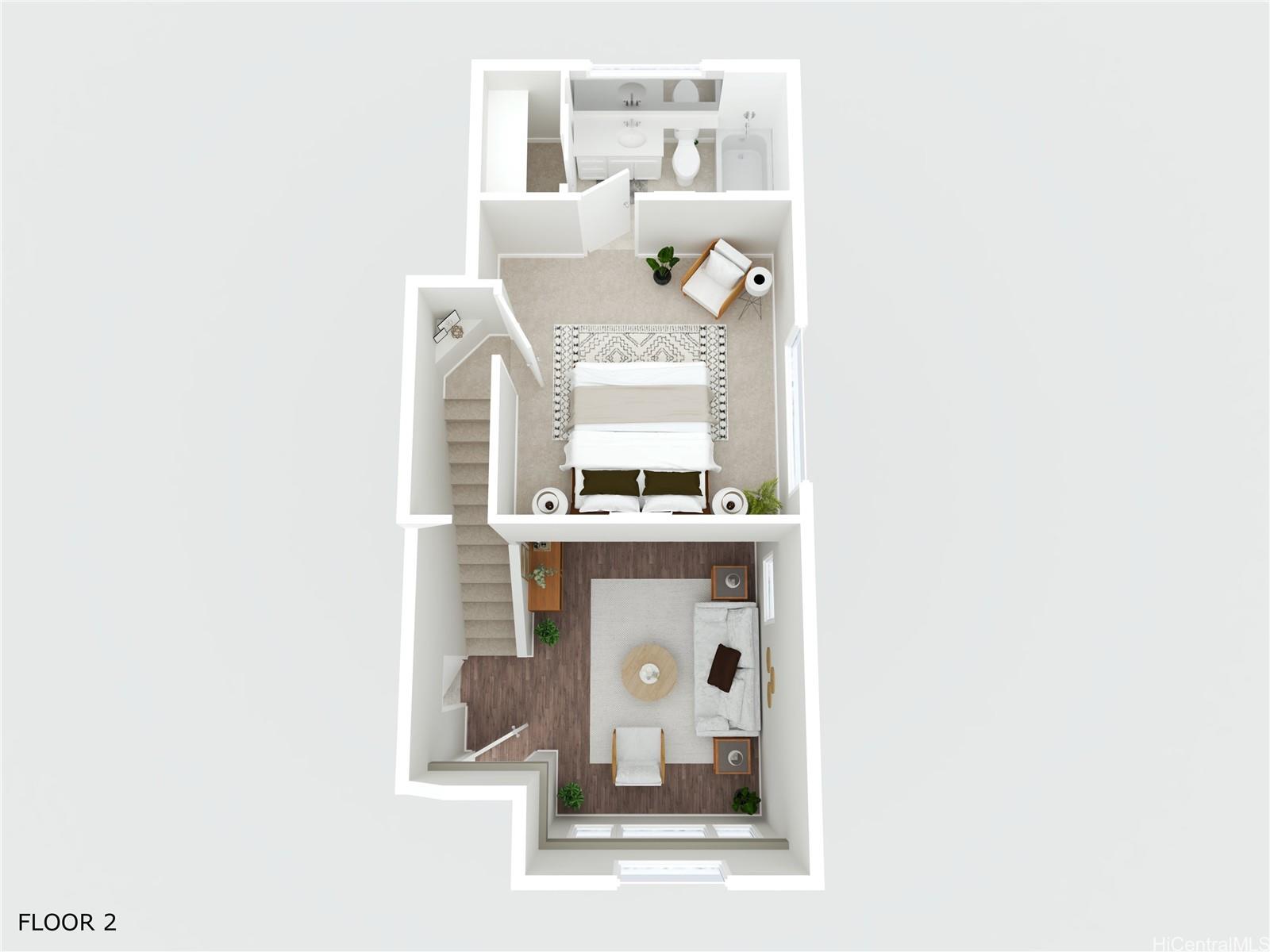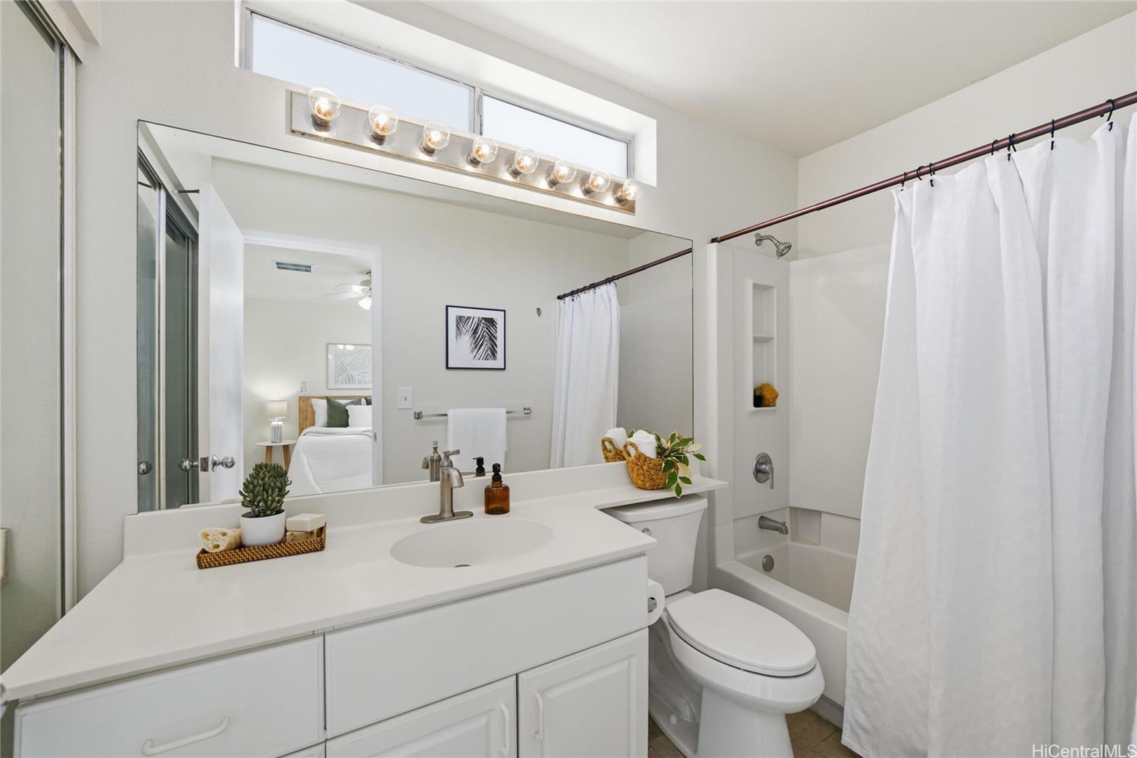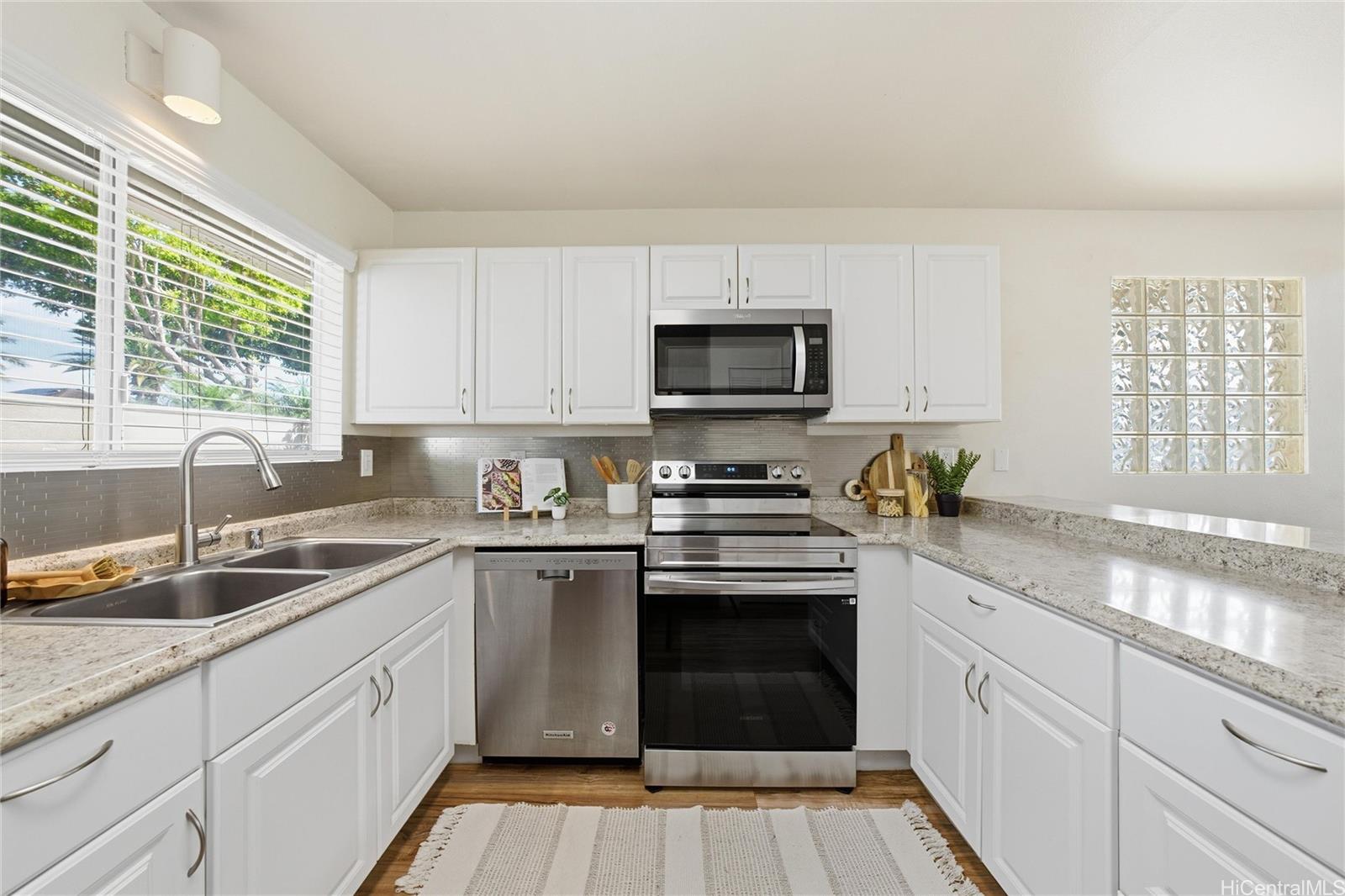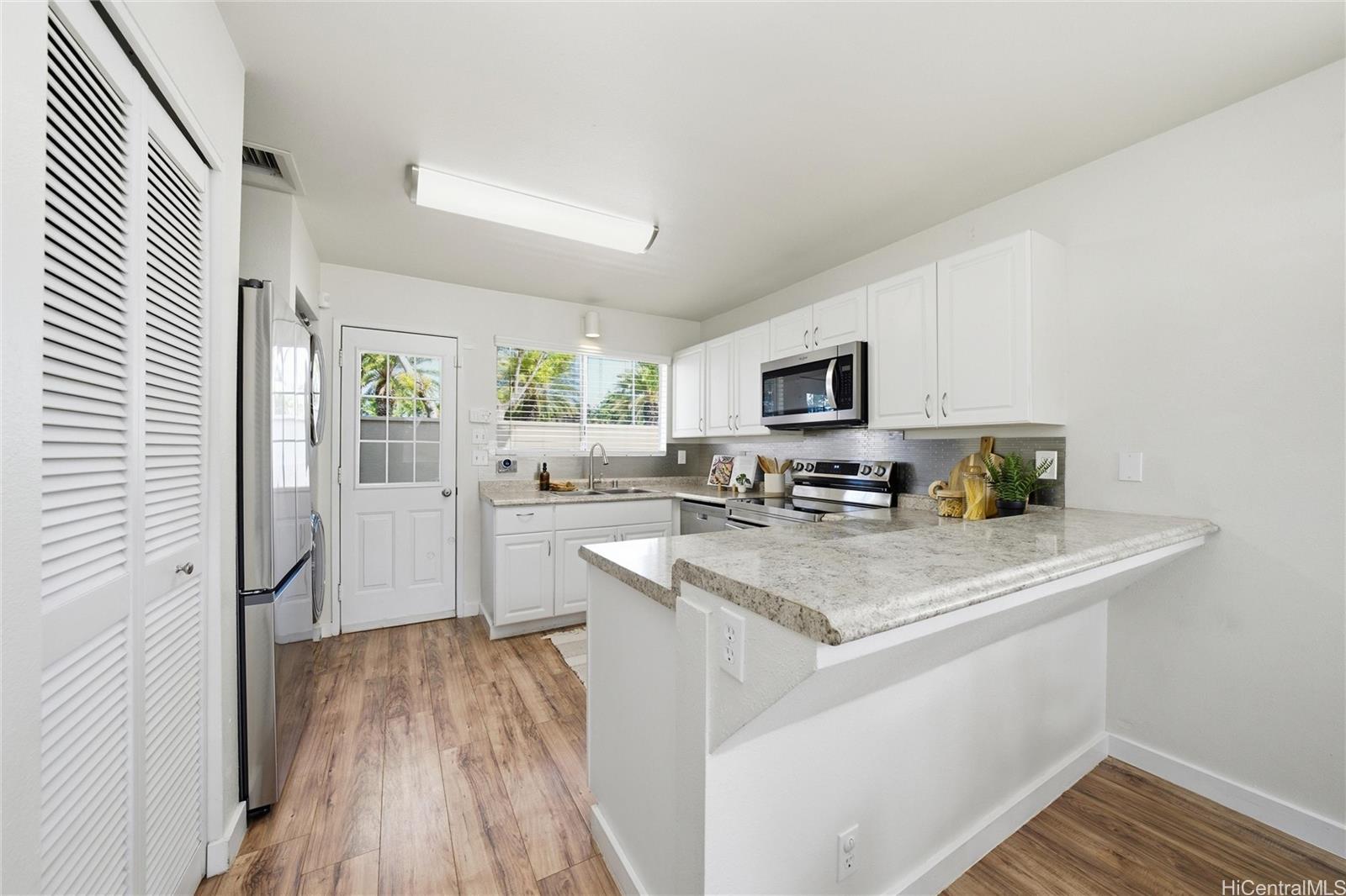 Price Improvement! This beautifully maintained 2-bedroom, 2-bath home features a spacious layout with vaulted ceilings, central air conditioning, and sleek vinyl laminate flooring. The primary suite with a full ensuite bath is conveniently located on the first floor, while the second bedroom and full bath offer privacy upstairs. Enjoy the convenience of a 2-car carport plus two additional driveway spaces, along with guest parking nearby. Positioned across from a lush green open space, this home offers a peaceful setting in a thriving community. Modern upgrades include updated appliances and a powerful energy-efficient setup with 21 owned photovoltaic panels and 2-Tesla Powerwall batteries—helping you save on utilities. Located in the heart of Ewa, you're just minutes from shopping, dining, entertainment, banks, the post office, and public transportation. BONUS: This property comes with a VA assumable loan at an incredibly low 2.25% interest rate. This is an exceptional opportunity for qualified VA buyers. Maintenance Fee will actually be DECREASING to $400.17 in January 2026!
