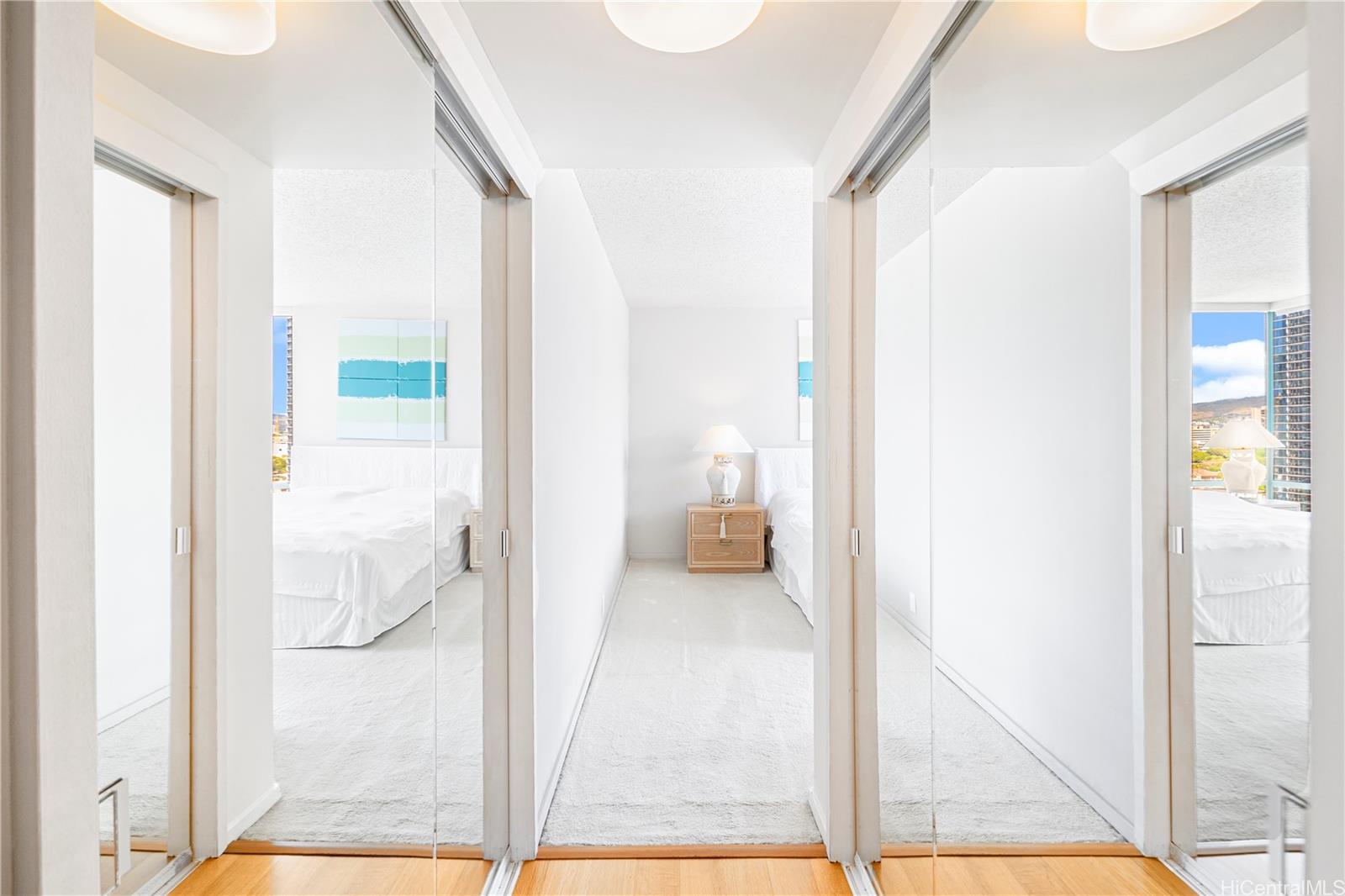 ショッピングセンターとアラモアナビーチパークに近い便利な立地にある、豪華な2ベッドルーム、2バスルームの角部屋ユニットです。高層階に位置し、美しいオーシャンビューをお楽しみいただけます。ダブルラナイ付きの角部屋ユニットからは、シティビューとマウンテンビューの両方をお楽しみいただけます。家具付き。管理費には、24時間対応のコンシェルジュサービス、ハウスキーピング(週1回)、リムジンサービスが含まれます。急速に発展するカカアコエリアに位置し、アラモアナショッピングセンターをはじめとする飲食店、ショッピングセンター、エンターテイメントエリアからわずか1ブロックです。フルタイム住宅のオーナー様、セカンドハウスのオーナー様に最適です。