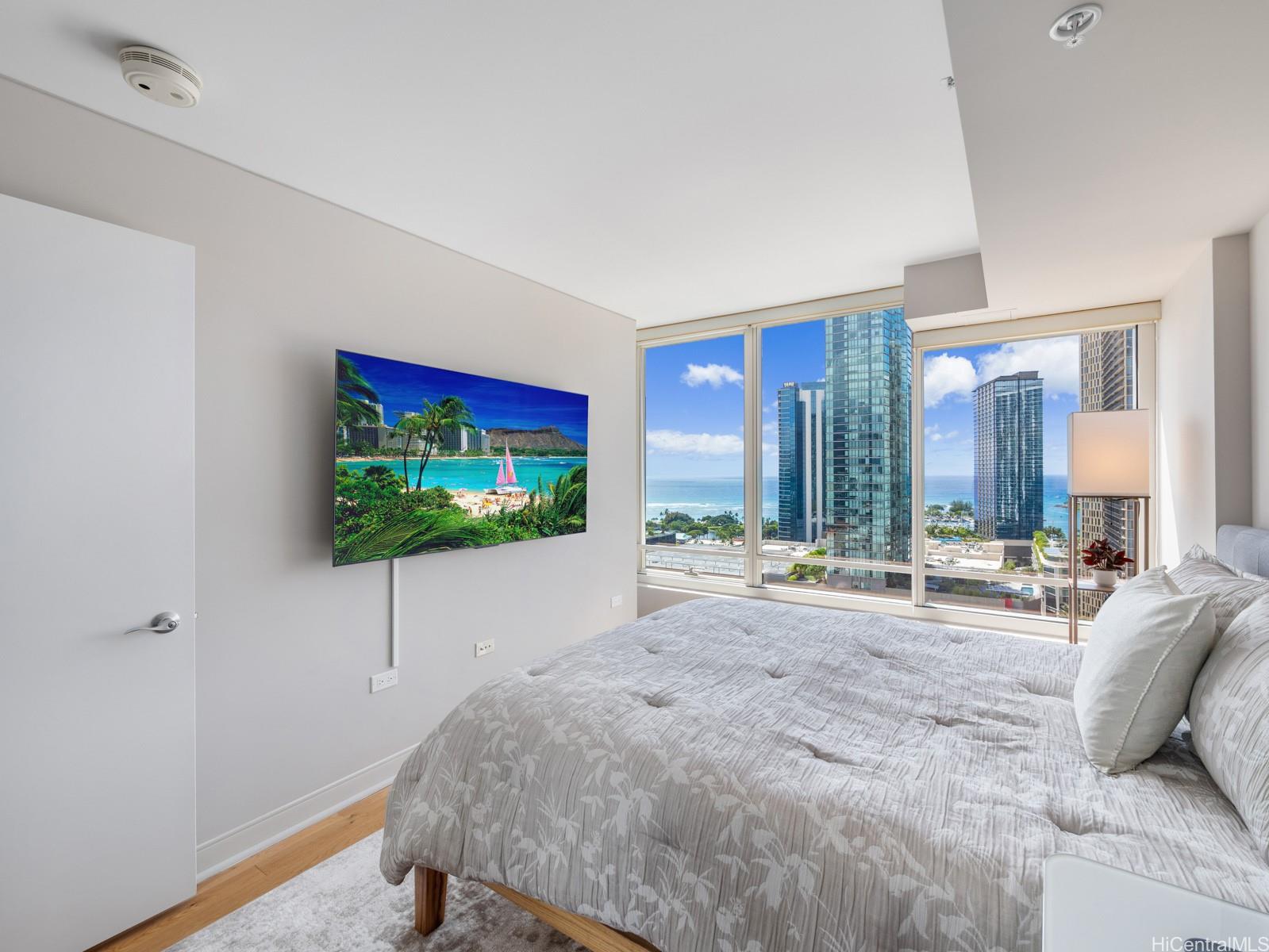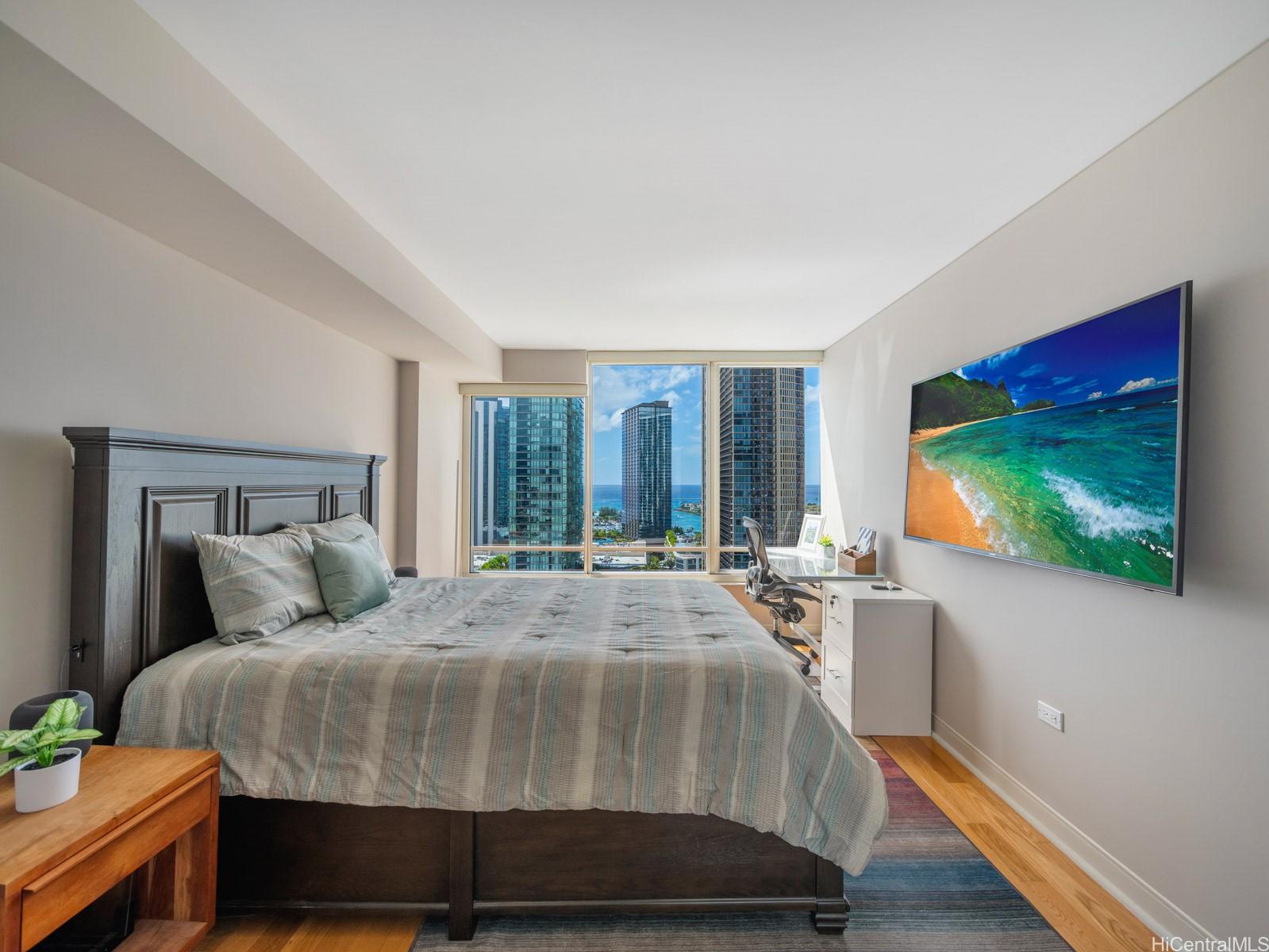 パシフィカ・ホノルル26階に位置する、アップグレードされた2ベッドルーム、2バスルームのレジデンス。ホームオフィスや書斎に最適なフレキシブルなアルコーブに加え、リビングスペースに自然光がたっぷりと差し込み、海と街の雄大な景色を一望できる大きな窓を備えています。真新しいキッチン、フローリング、ビルトインキャビネット、そして室内洗濯機/乾燥機も完備。縦列駐車スペース2台分付き。アラモアナセンター、ホールフーズ、ワードビレッジ、ビーチ、サーフスポットにも近く、コンサートやファーマーズマーケットが開催されるブレイズデルセンターもすぐ近くです。リゾートスタイルのアメニティには、フルジム、サウナ、プール、ホットタブ、バーベキューエリア、プールサイドカバナ、ドッグパーク、シアタールーム、そして複数のラウンジエリアなどがあります。パシフィカは安全でペットフレンドリー、そして24時間対応のフロントデスクサービスも提供しており、ホノルルの中心部で便利で快適な暮らしをお楽しみいただけます。