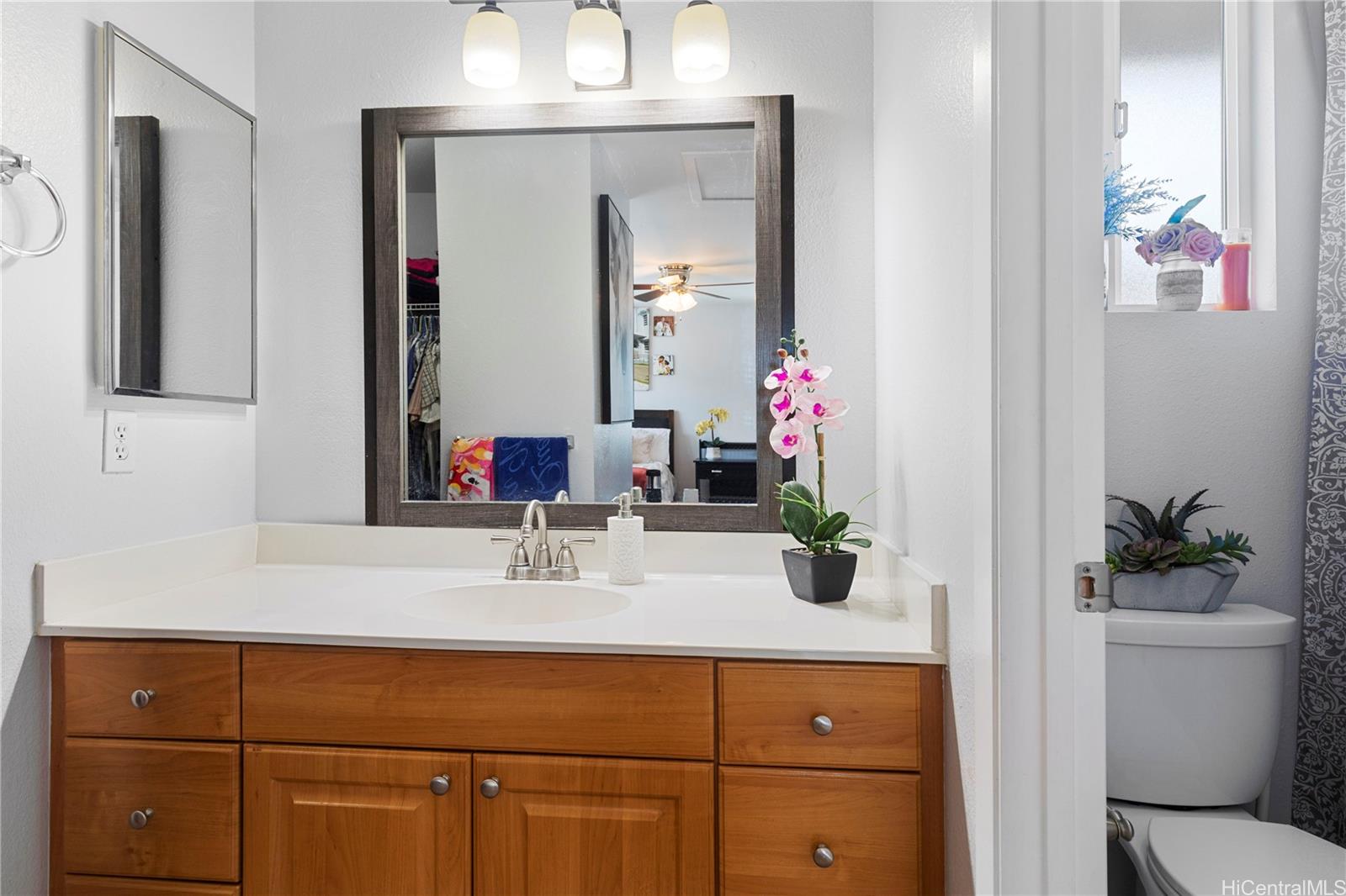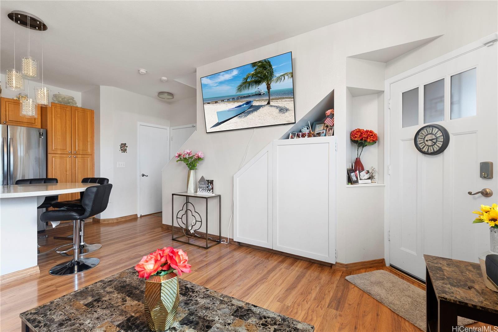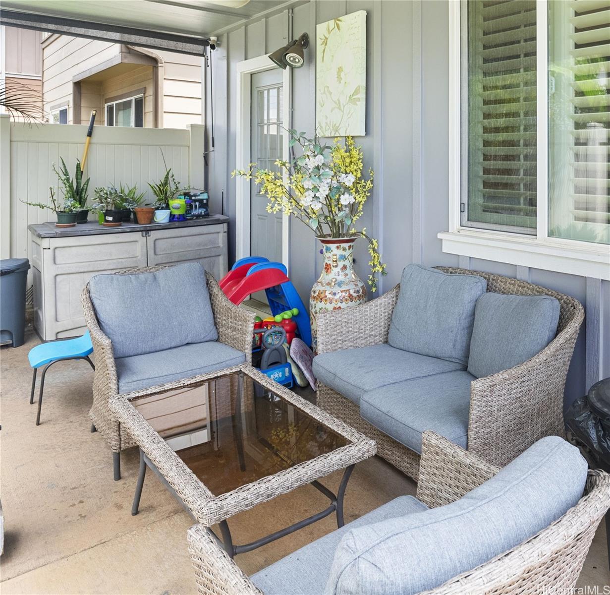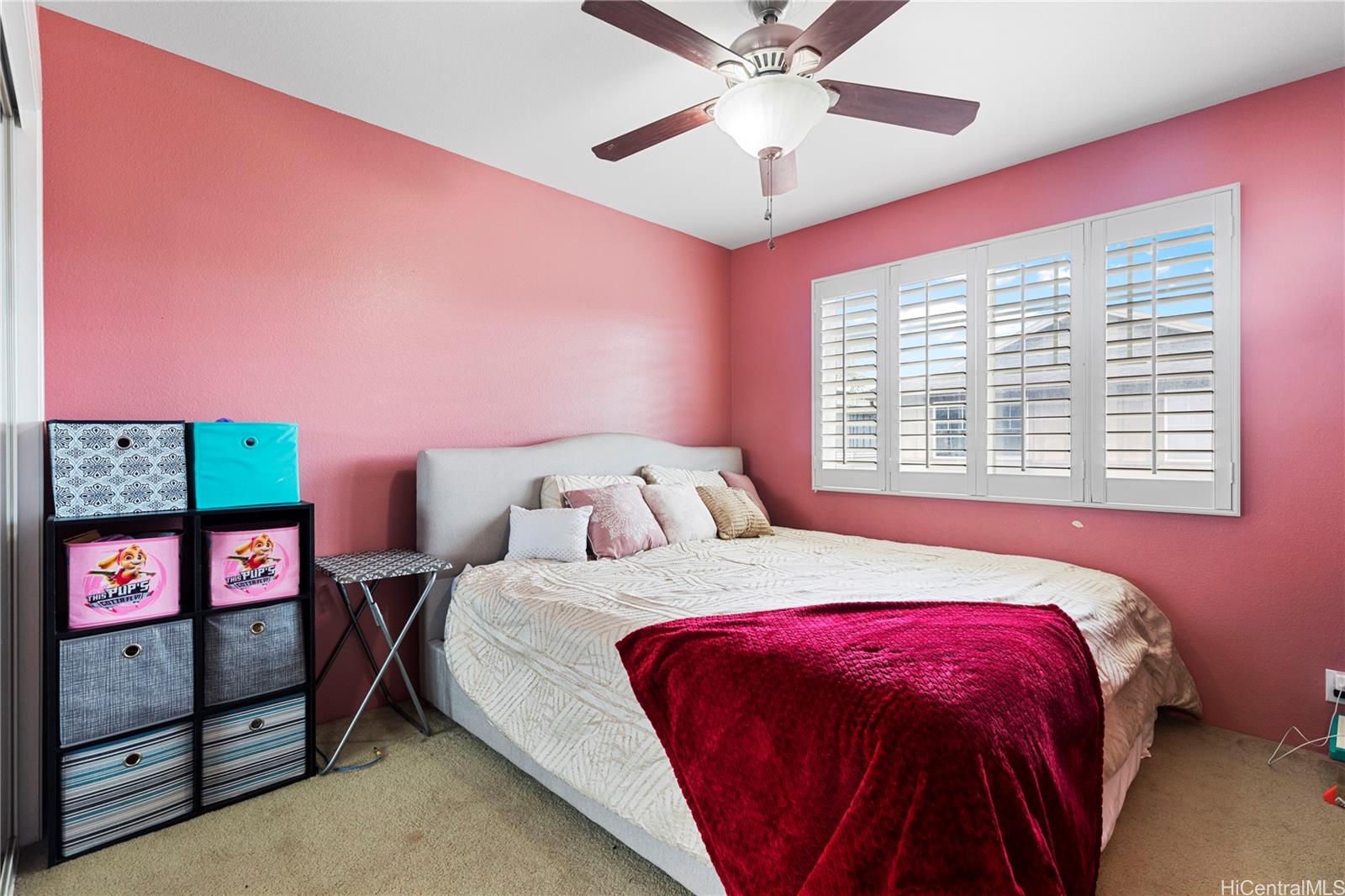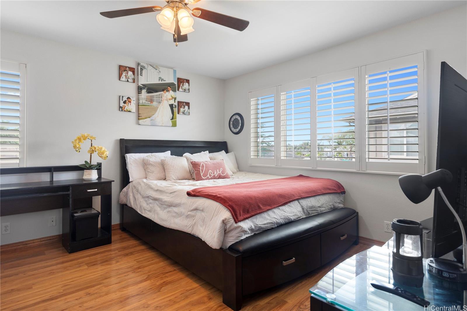 Beautiful corner home in the desirable Montecito/Tuscany community. This well-maintained residence features stainless steel appliances, oak kitchen cabinets, and durable laminate flooring throughout. Stay comfortable year-round with central A/C, smart ECHO climate control, and a built-in security system. Energy efficient upgrades include OWNED Photovoltaic (PV) panels, An Electric Vehicle charging system and a Solar water heater - helping to reduce electric costs. Elegant wood shutters provide both privacy and style. The spacious primary suite includes an ensuite bathroom and a walk-in closet. The property offers an enclosed 2-car garage, driveway and an additional parking stall. A total 4 parking spaces! Ideally located directly across from the community pool, BBQ area, and cabana - perfect for relaxation and entertaining. Ample guest and street parking. Conveniently close to parks, schools, Laulani Shopping Center, restaurants, and more. Please allow 48 hours notice to show.