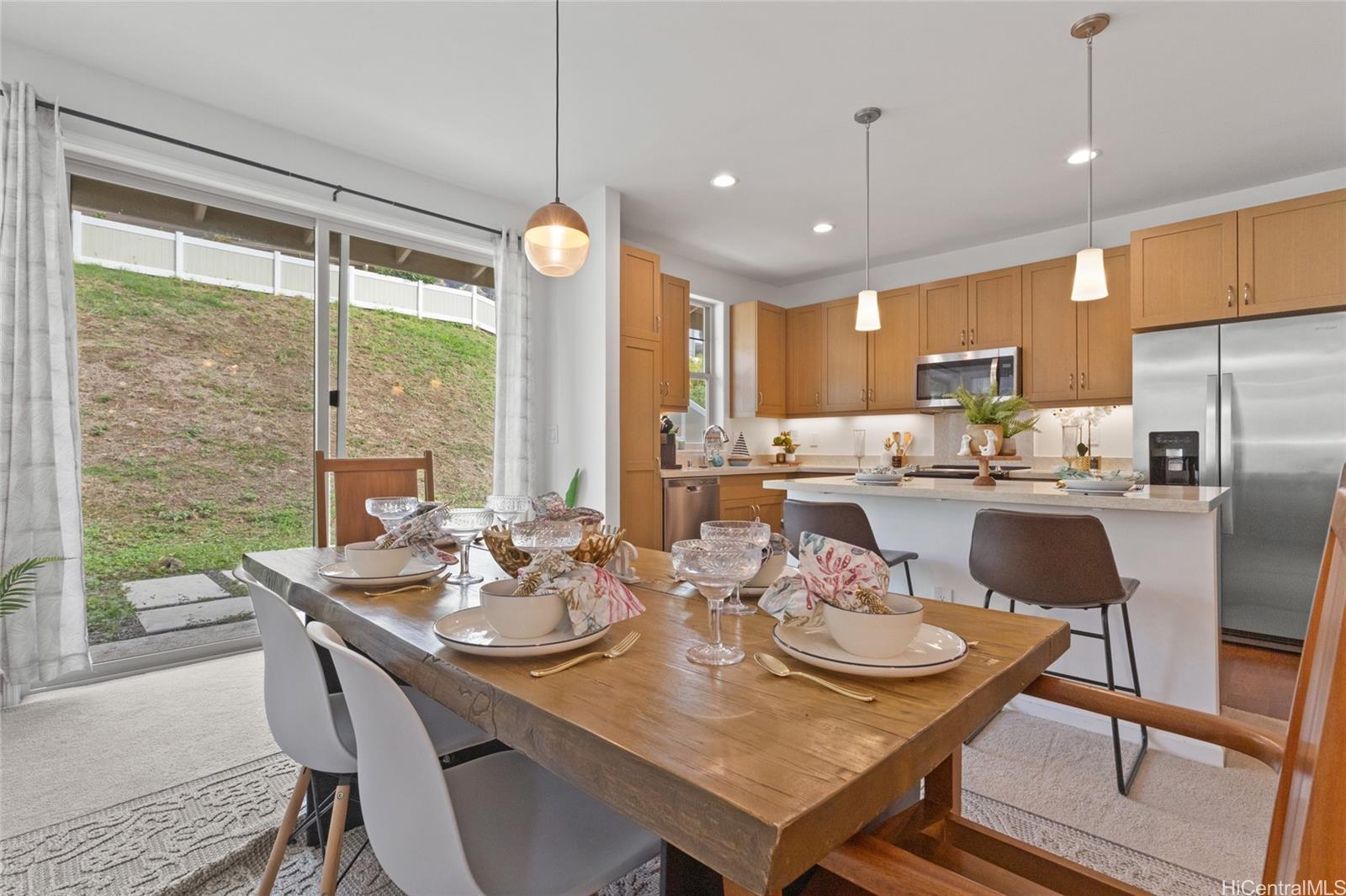 Enjoy this rare open-concept layout with high ceilings, modern floor plan and split A/Cs throughout. The spacious kitchen features stainless steel appliances, quartz countertops and a large island that opens to the dining & living area. Perfect for entertaining, the sliding door from the kitchen leads to your private, fully fenced backyard with the beautiful backdrop of the Pu‘u Kea‘au mountain range. Owners & guests enjoy access to resort-like amenities including a Pool, Jacuzzi, Gym & Recreation Entertaining Area with tons of space for memories to be created! Minutes to Makaha Beach, hiking, great local eateries and a pleasant ocean-lined drive to Ko Olina, Aulani Disney Hotel, Marriott, Four Seasons & the bustling city of Kapolei, your gateway to Hawaii luxury & lifestyle awaits!