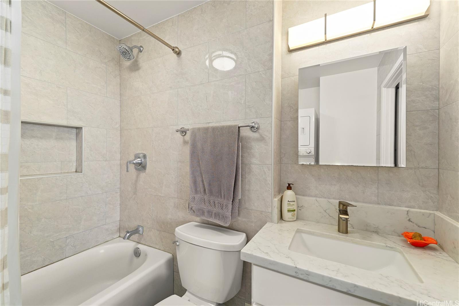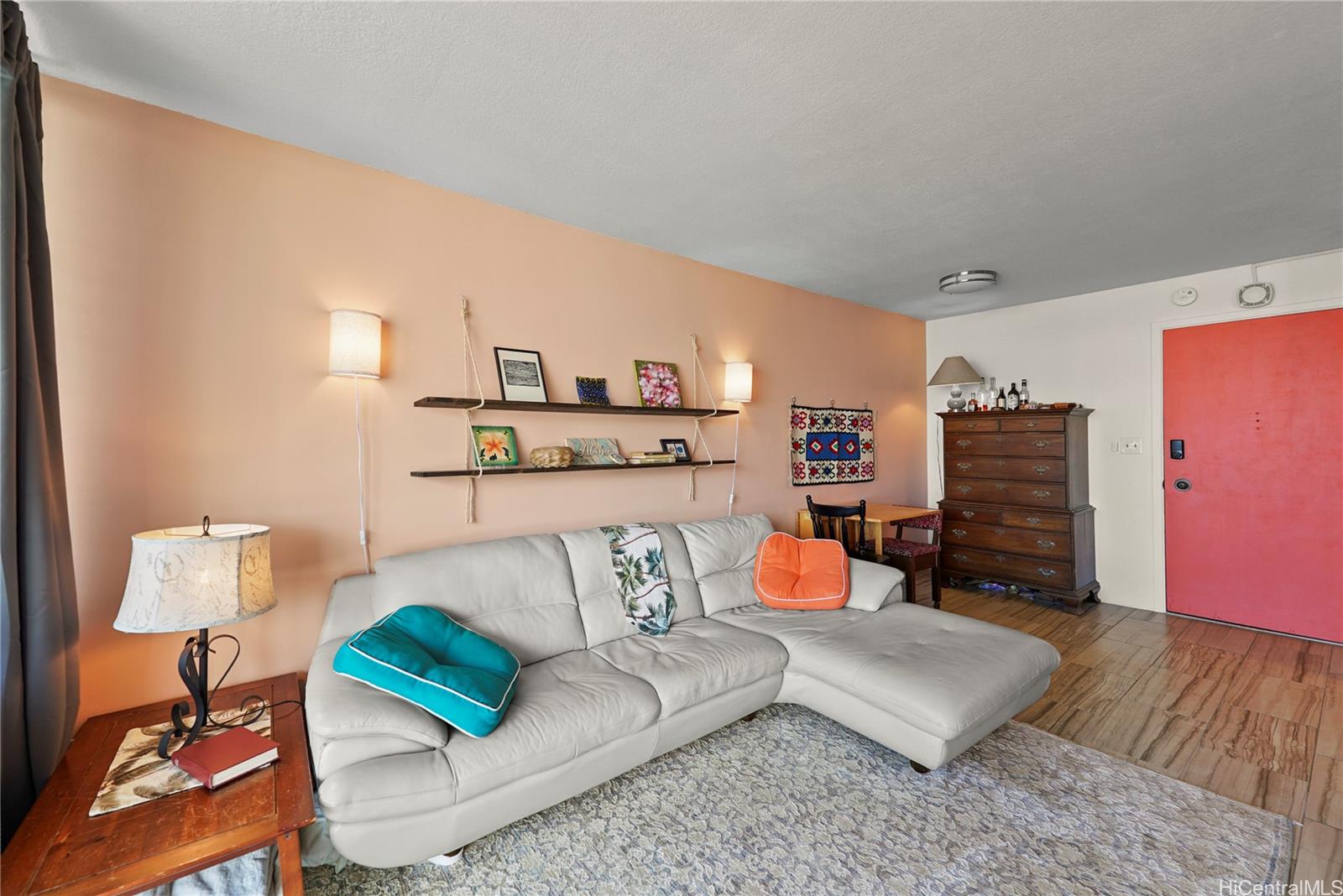 Kinau Lanais #1503 offers the perfect blend of modern comfort and convenience in the heart of Honolulu. This beautifully updated condo features a bright, open layout with tasteful finishes throughout. The kitchen and bathroom have been refreshed, and the home includes the added convenience of in-unit laundry and a charming barn-style door accent. Enjoy sweeping city and mountain views from your expansive private lanai, ideal for relaxing after a busy day. The building features a swimming pool, low maintenance fees, assigned parking, and even has guest parking for visitors. Centrally located near shopping, dining, hospitals, downtown Honolulu, and freeway access, this residence provides easy access to everything Honolulu has to offer! With nothing left to do but move in, Unit 1503 is an excellent opportunity to own an updated condo in a fantastic location with beautiful views, great amenities, and exceptional value.