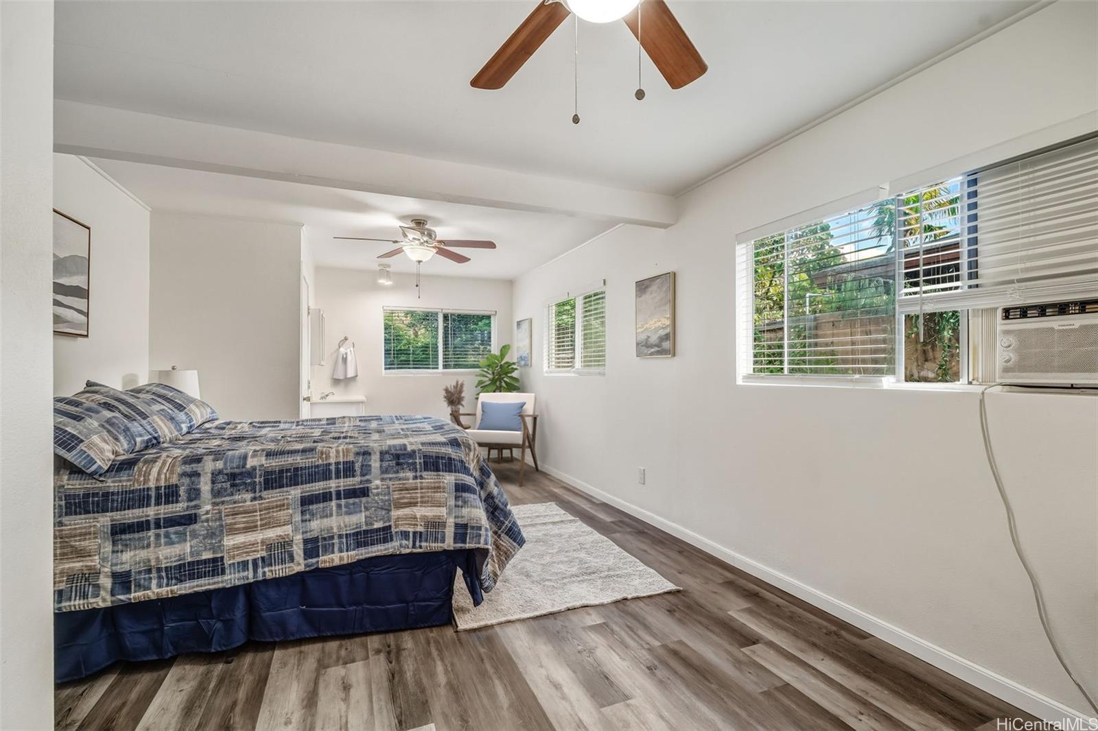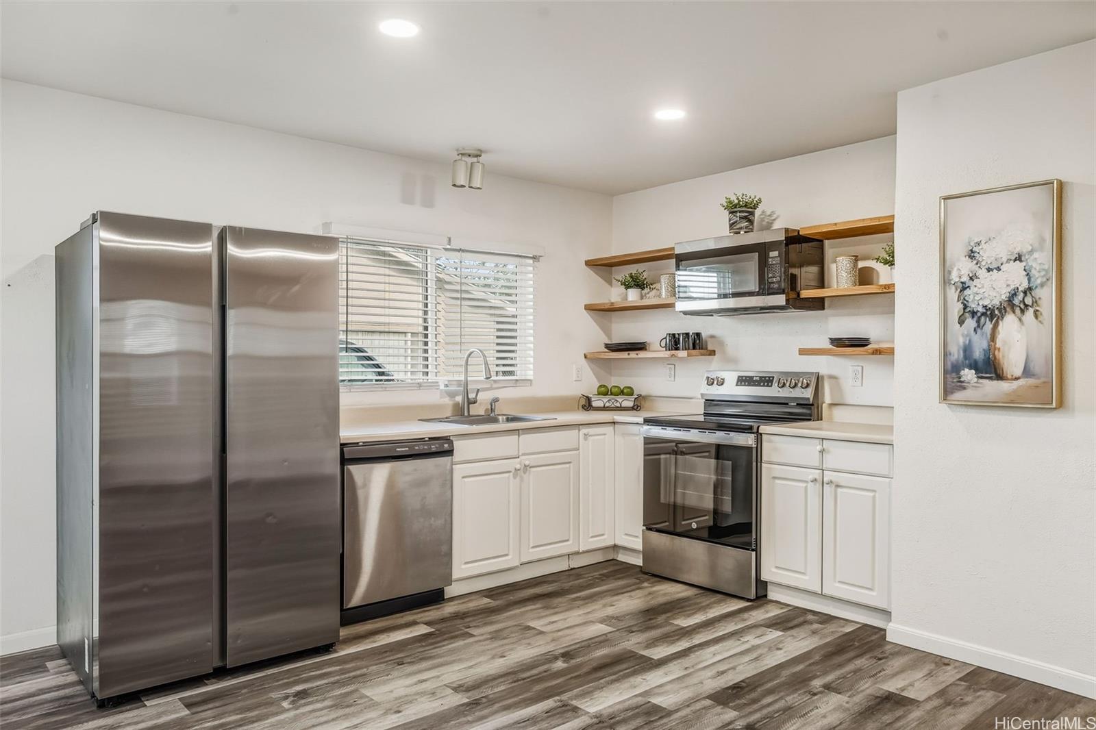 Don’t miss this opportunity to own the perfect entry-level home in Makaha! This one checks all the boxes: 3 beds, 2.5 baths, window AC units throughout, to keep you cool and comfortable year-round. Tasteful upgrades, with luxury vinyl plank flooring, modernly renovated bathrooms with a bathtub and a shower stall option. Two large bedrooms offering ultimate comfort, one being the primary bedroom with a full bathroom, the other with a private half bathroom. Step outside to the ideal-sized backyard, framed by lush greenery for everyday relaxation. Enjoy the spacious sun deck, perfect for stargazing or rooftop BBQs with family and friends. This home also comes equipped with LEASED SOLAR PANELS, giving you stability and peace of mind when it comes to your monthly electric expense, approximately $310.00 per month. When searching for an entry-level home, the “must-haves” usually stop at affordability and comfortable interior space. Here, you get so much more! Come see this gem today and secure your place in Makaha for years to come!