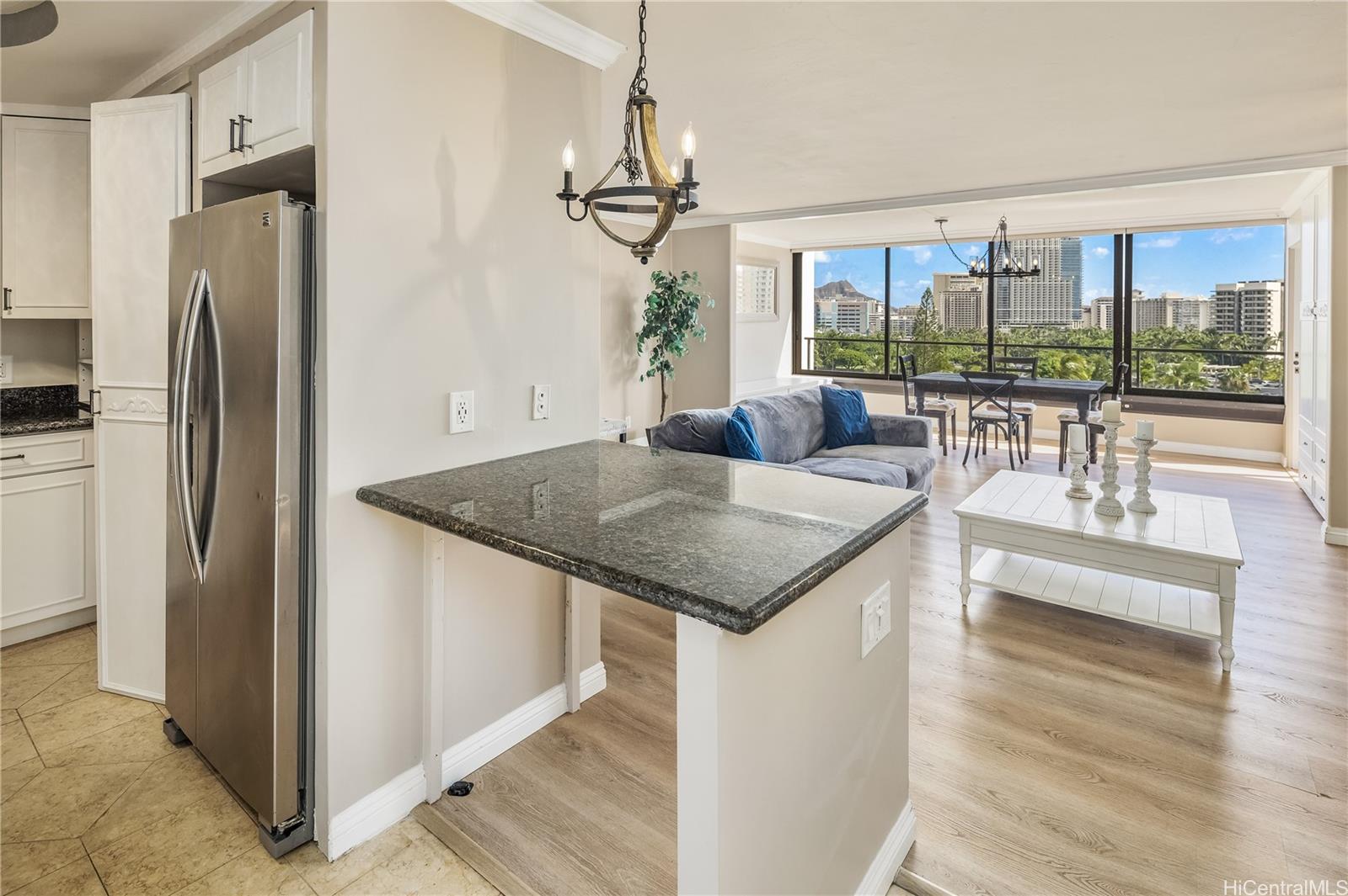 カンタベリープレイスの10階に位置する、明るい2ベッドルーム、2バスルームのレジデンス。書斎付きで、ダイヤモンドヘッドとオーシャンビューをお楽しみいただけます。絵のように美しいデルシーパークを見下ろし、ワイキキの象徴的なビーチまでわずか数分です。広々としたこの住宅には、洗濯機と乾燥機が備え付けられ、大きな窓から自然光と風が差し込み、アイランドライフに最適な開放的な間取りが魅力です。便利な立地にあるこの建物には、1階に新しいレストランが数軒、通りを挟んだ向かいにはアイランドマーケットがあります。ビーチで日光浴をしたり、青い海で泳いだりしていないときは、ワイキキの高級レストラン、ブティックでのショッピング、活気あるエンターテイメントを手軽にお楽しみいただけます。すべてすぐ近くにあります。ワイキキの入り口に位置するカンタベリープレイスは、わずか800メートル先のアラモアナショッピングセンターにも簡単にアクセスできます。リゾートスタイルのアメニティには、バーベキューエリア、温水プール、ホットタブ、サウナ、レクリエーションデッキ、テニス/ピックルボールコートなどがあります。屋根付きの安全な専用駐車スペースが1台分あります。この建物はペットフレンドリーで、体重制限なしでペットを 2 匹まで同伴できますが、共用エリア、廊下、エレベーターなどでは抱っこするか、キャリッジに乗せる必要があります。