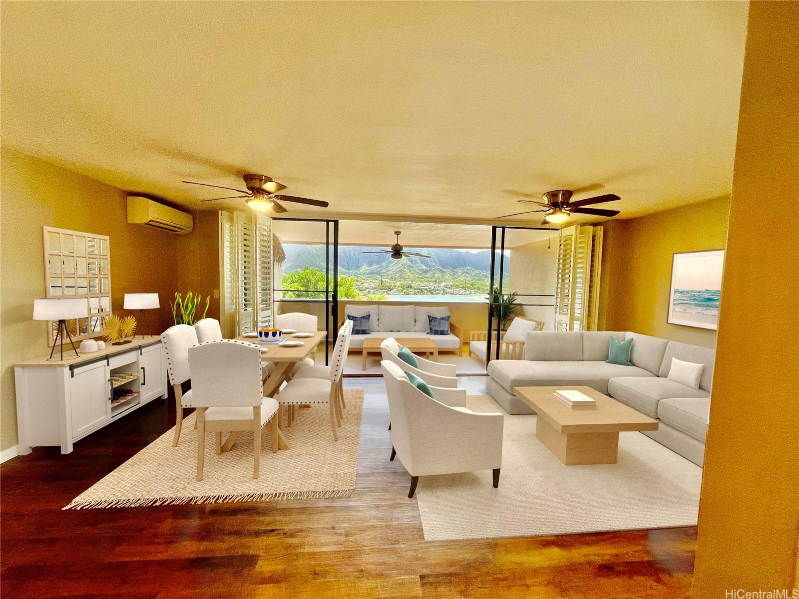 In ALL Kaneohe you will not find a more exquisite property that is in excellent condition, with breath taking ocean views, numerous upgrades including Smart Split AC throughout which is an ESSENTIAL AMENITY with climate changes for your personal comfort. A 3 bedroom, 2 full bath, on a single level, covered lanai, 2 assigned parking that is pet friendly for this incredible price. Each picture is worth a thousand words, Nothing is retouched by photoshop. The therapeutic effect of the ocean and rainbow views you will fall in love with and it will enhance your well being. The HOA fee is LOWER than most and covers MORE than most. The amenities seem to be endless in a well maintained complex. Three swimming pools, saunas, tennis courts, pickle ball courts, walking & jogging paths BBQ, car wash, club house, recreation area, 24 hour security, resident mgr. A Quiet area and yet close to shopping and all small town amenities. Also included with the common expenses is your sewer, water, cable TV. Very convenient to Kbay, other military bases or Big Box shopping throughout the island Including via Like Like, Pali or H3. Unit 3832 is a great investment. 1 or more photos have been enhanced
