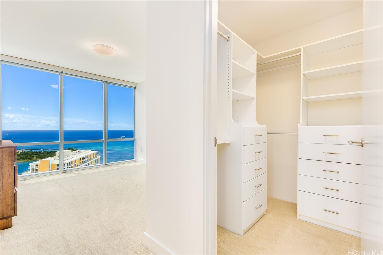 洗練された3ベッドルーム、2バスルームの角部屋レジデンス。電動ブラインド付きの床から天井までの大きな窓からは、自然光がたっぷりと差し込み、息を呑むようなオーシャンビューをお楽しみいただけます。グルメキッチンには、御影石のカウンタートップ、ボッシュ製の家電、そして大きなアイランドキッチンが備え付けられています。隣接するラナイからは爽やかな風が吹き込み、空間全体に快適な空気の流れを作り出します。建物内には、ドラマチックなインフィニティプール、バーベキューカバナ、プライベートシアター、フルキッチンを備えた美しくデザインされたクラブルーム、ウェイトトレーニングとヨガスタジオを備えた最先端のフィットネスセンター、エレガントなゲストスイート、便利なEV充電ステーションなど、充実したアメニティをご用意しています。アラモアナショッピングセンター、世界クラスのレストラン、さらには救急診療所まで徒歩わずか5分という好立地にあるこのレジデンスは、ホノルルの魅力を存分にお楽しみいただける場所です。車は必要ないかもしれませんが、このレジデンスには建物内でも屈指の駐車スペースが完備されています。