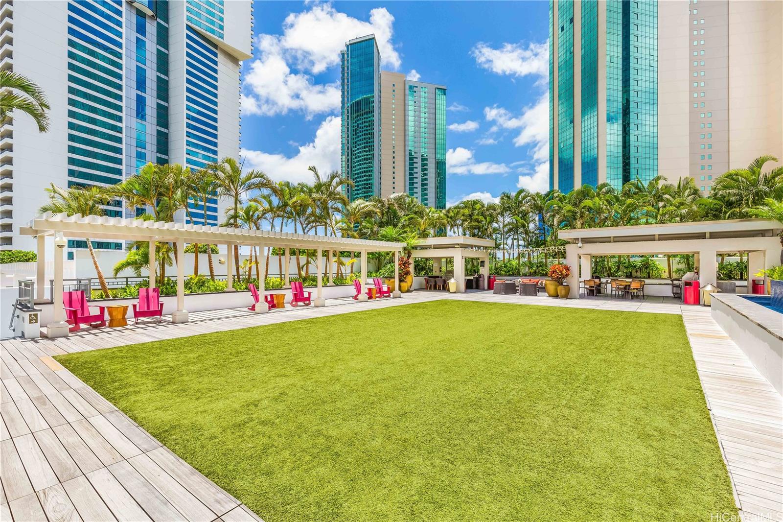 The building offers an impressive collection of amenities, including a dramatic infinity pool, barbecue cabanas, a private theater, a beautifully designed club room with a full kitchen, a state-of-the-art fitness center with both weight and yoga studios, elegant guest suites, and convenient EV charging stations. Located just a five-minute walk from Ala Moana Shopping Center, world-class restaurants, and even an urgent care clinic, this home places the best of Honolulu at your doorstep. You may never need a car, yet the residence comes with one of the most desirable parking spaces in the building.
