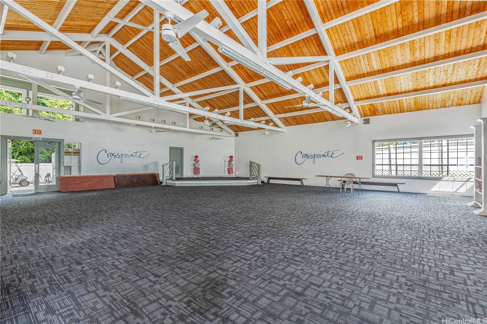 NEW kitchen & downstairs bath cabinets, countertops and new vinyl planks in downstairs bedroom. Refinished shower stall downstairs. Crosspointe is located close to the skyline, freeway on/off ramp, Target, Pearlridge Mall, Pearl Harbor, Camp Smith, restaurants and more. CONVENIENCE is the key! This split level townhouse offers privacy with one primary bedroom downstairs and another loft style upstairs and private courtyard to relax or BBQ with friends & family. Amenities offered are: pool, BBQ, gym, playground, security, rec area for parties and sand volleyball.