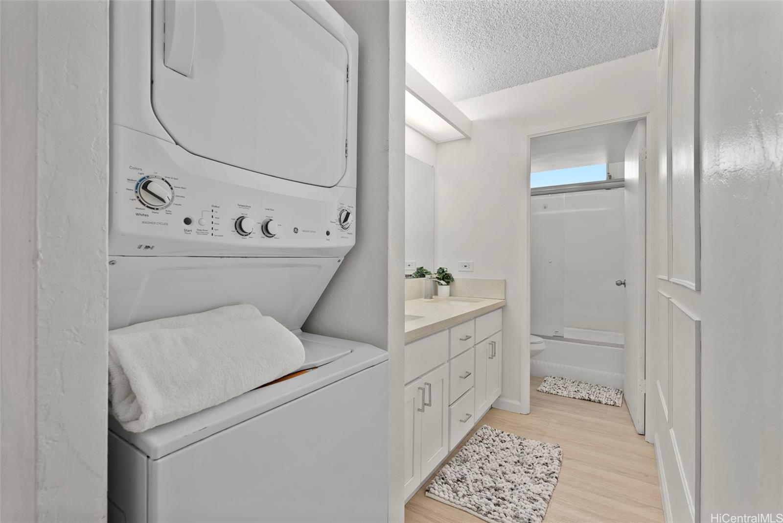Move in ready, spacious low floor with treetop views. This remodeled 2-bdrm end unit at the Pearl One also has a washer and dryer in the unit for convenience. A secured building with guest parking, great management and amenities, including a pool, BBQ grills and a pickleball/basketball court. Conveniently located near Pearlridge Shopping Center, grocery stores, Pearl Harbor/Hickam AFB and schools. 3 photos have been virtually staged(enhanced).