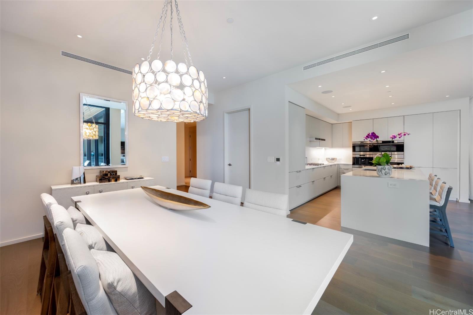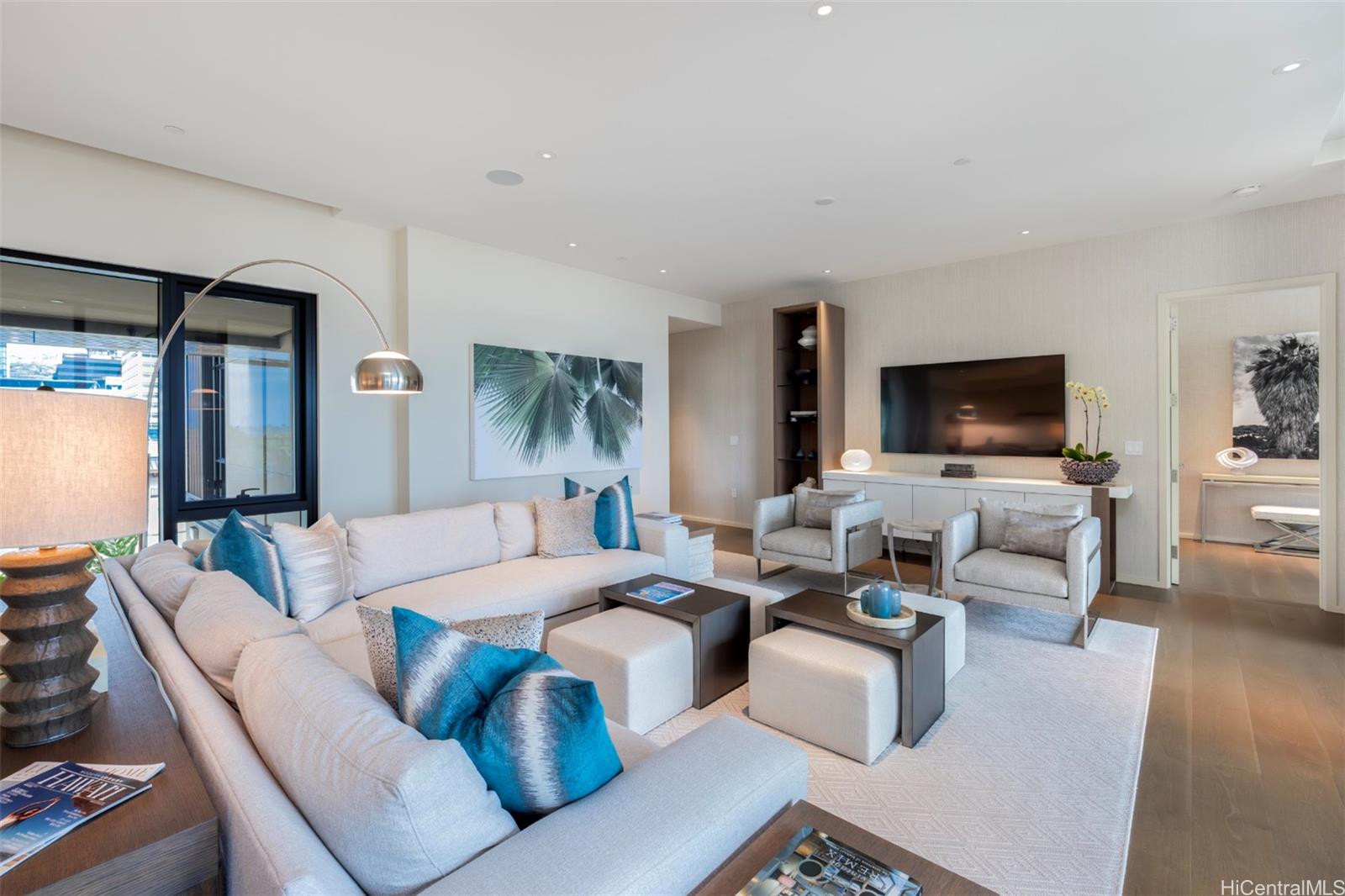 Situated fronting Ala Moana Beach Park, Park Lane is positioned as Honolulu's premier ultra-luxury boutique condominium residence. Located along the front-corner of Park Lane, this rarely available 3-bedroom plus den, 3.5-bath, 2,996 sq.ft. Island Residence features elevated interior design and curated furnishings, enhancing indoor and outdoor spaces. Pacific Ocean and verdant Park vistas deliver unforgettable scenery to your living room, kitchen, dining area, and primary bedroom suite, as well as the spacious 307 sq.ft. covered lanai. A grand primary suite includes two walk-in closets, an elegant luxury ensuite double vanity bathroom with walk-in shower room and deep soaking tub; two additional bedrooms plus a den provide flexibility. Enjoy resort amenities including Park Lane's iconic Great Lawn green space, a 75-foot lap pool, hot tub, and rain shower, fitness gym and yoga studio, private landscaped barbecue cabanas, two spas, guest suites, and more. This turn-key residence delivers an exceptional island-luxury experience for discerning buyers; welcome home to Park Lane #8604.
