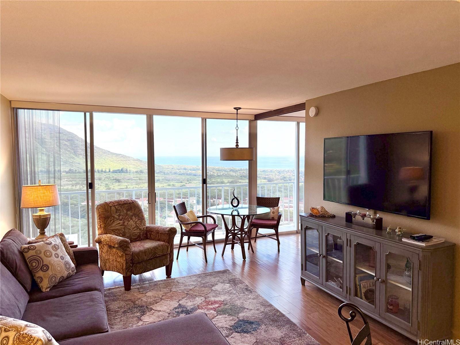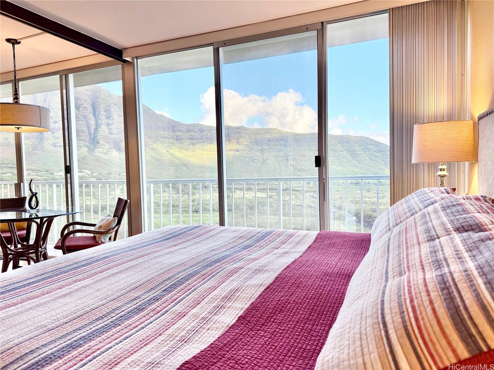 Located in the highly desired mauka side, this exquisite, fully remodeled condo offers the perfect blend of modern luxury and comfort. Step inside to find a chef-inspired kitchen and spa-like bath featuring spacious shaker-style cabinetry, sleek quartz countertops, and a stylish staggered-pattern tile floor. The open living area and bedroom are bathed in natural light, accented by warm hardwood flooring and custom lighting that creates an inviting atmosphere throughout. The bathroom showcases a beautifully customized shower enclosure with cultured marble, and the dressing area is illuminated by elegant canned lighting. A custom shoji door in the bedroom adds a unique touch of tranquility and style. The original popcorn ceiling has been removed, enhancing the condo’s clean, contemporary aesthetic. Being sold fully furnished, complete with everything shown in the photos. Move-in ready and waiting for you to enjoy all the luxury and convenience it has to offer!