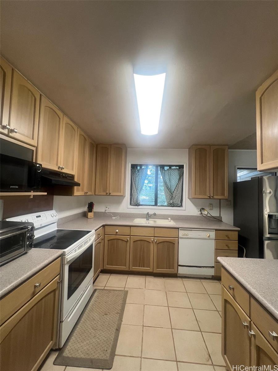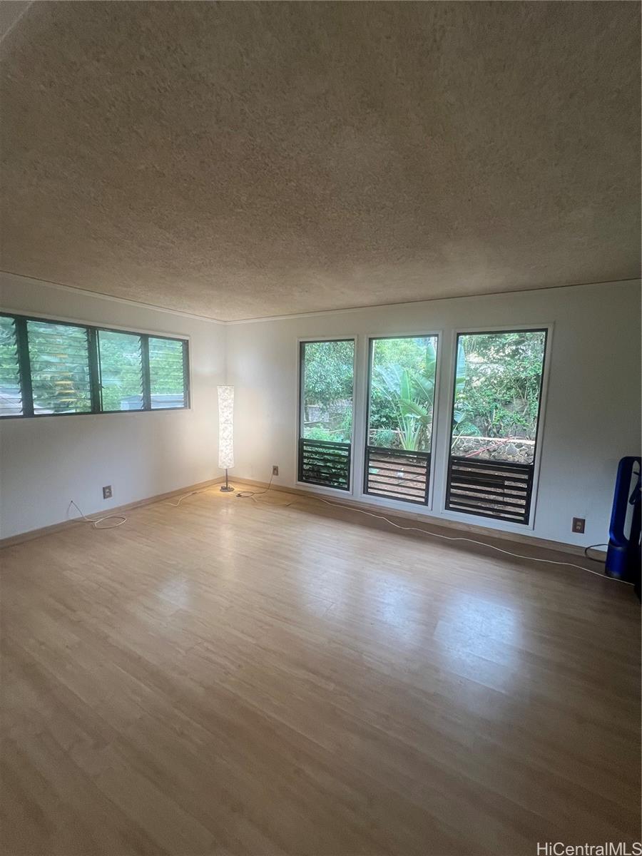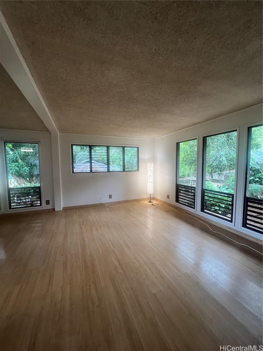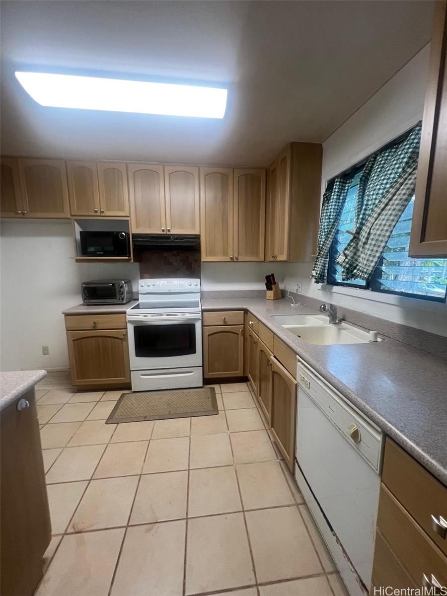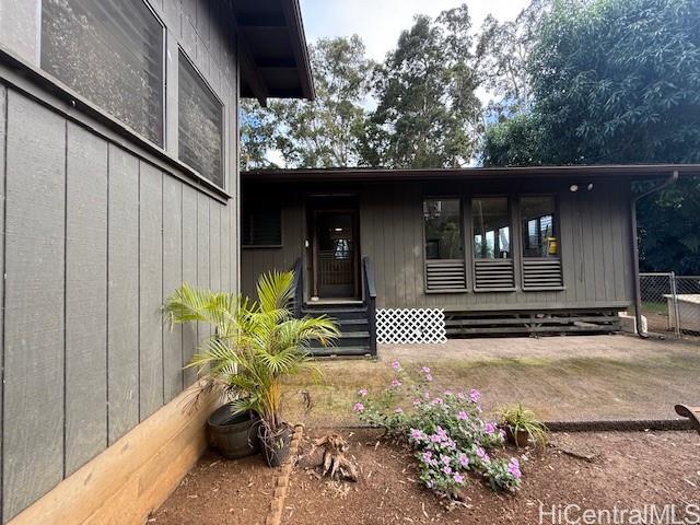 Welcome home to a 3 bedroom, 2 bath, 1200 sq ft home in Ahuimanu, Kaneohe. This home features laminate flooring, ceramic tile in kitchen and vinyl flooring in bathrooms. Spacious open floor plan for the living room, dining room and kitchen. The 3 bedrooms and 2 bathrooms are located down the hallway along with the washer and dryer. There is an enclosed screened patio which is currently used for her cats and can be used as a relaxing area to read the paper while enjoying a cup of tea. A spacious room attached to the garage can be used for an office, art studio, or workshop. Over 10,000 sq ft of land overlooks the majestic Ko'olau Mountains including seasonal waterfalls, lush trees and green grass. Enjoy peaceful country living yet only minutes away from shopping centers and Kaneohe town.