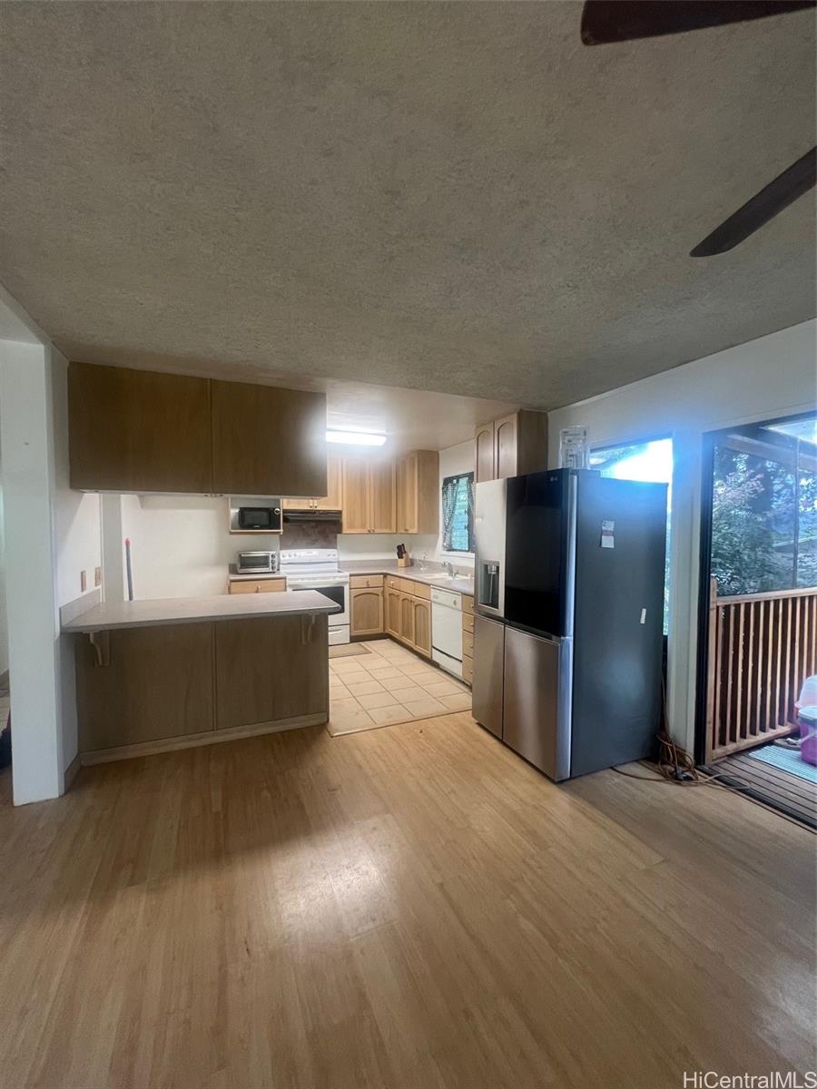カネオヘのアフイマヌにある、ベッドルーム3室、バスルーム2室、広さ1200平方フィート(約123平方メートル)の住宅へようこそ。この住宅は、ラミネートフローリング、キッチンはセラミックタイル、バスルームはビニールフローリングを採用しています。リビングルーム、ダイニングルーム、キッチンは広々としたオープンフロアプランです。3つのベッドルームと2つのバスルームは、廊下を進むと洗濯機と乾燥機が設置されています。囲い付きのパティオは現在、彼女の猫たちが使用しており、お茶を飲みながら新聞を読むリラックススペースとしてご利用いただけます。ガレージに隣接する広々とした部屋は、オフィス、アートスタジオ、ワークショップなどにご利用いただけます。10,000平方フィート(約93平方メートル)を超える敷地からは、雄大なコオラウ山脈の絶景を一望でき、四季折々の滝、緑豊かな木々、そして緑の芝生が広がります。ショッピングセンターやカネオヘの街からもわずか数分の距離にありながら、静かな田舎暮らしをお楽しみください。