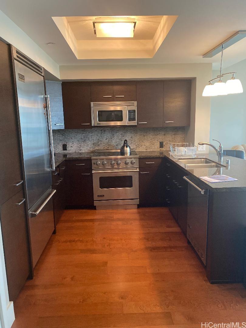 Built in 2009 the Allure sits with majestic beauty at the entrance of Waikiki. It features the well-designed beauty of a building, with a excellent foyer that presents a peaceful wonderful feeling, pool area is very special and easy to enjoy. This corner end apartment has an entry that walks you into the home and expands its way past the bedrooms and into the kitchen and living room. Because it's a corner apartment you feel like there are no neighbors around that location for 270 degrees. The apartment has two parking with plenty of guest parking. It justly matches its reputation as a well-maintained elegance at the entrance to Waikiki.