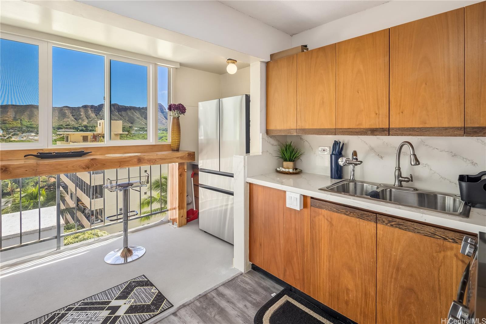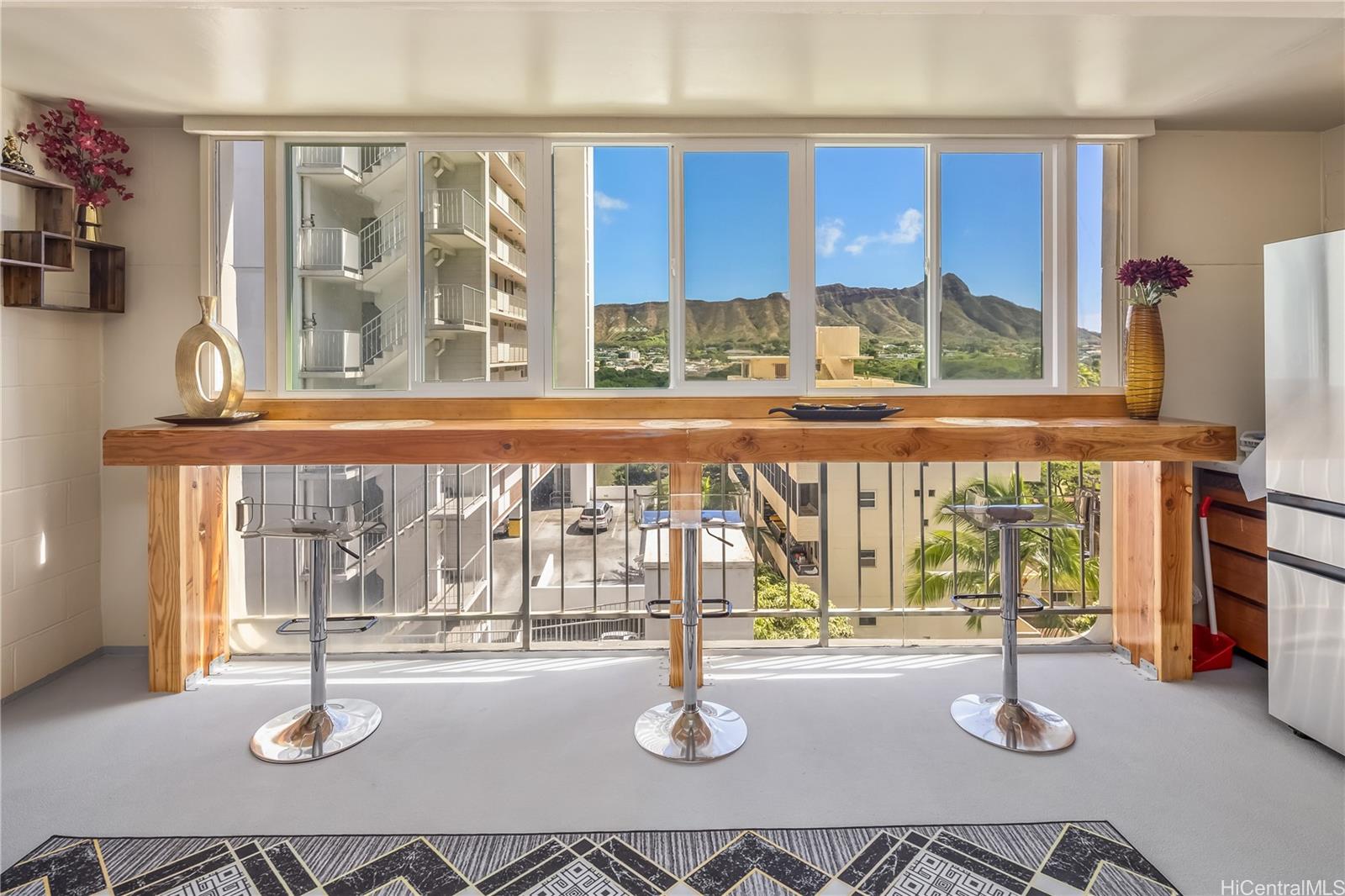 新規掲載物件!開放的なフロアコンセプトのお部屋から、新鮮な島の空気とダイヤモンドヘッドの息を呑むような絶景をお楽しみください。2025年に改修されたラナイには、ワークスペースとしてもダイニングスペースとしても使えるフルレングスのカウンター、新しいガラス製シャワードア、新しい冷蔵庫とコンロが含まれています。ベッドルームはキングサイズベッドを設置できるよう拡張されました。2022年には高級ビニールフローリングが設置され、キッチンとバスルームが改装されました。セキュリティ付きの駐車場から、指定された屋根付き駐車スペースまでアクセスできます。建物の入り口はセキュリティ付きです。ビーチ、ワイキキのレストラン、ショップ、カピオラニ公園、ホノルル動物園、学校などにも近接しています。アメニティには、ゲスト用駐車場、共用ランドリー、サーフボードと自転車の保管場所などがあります。建物はVA承認済みです。ラナイがあるため、実際の面積は税務記録と一致しません。この逸品をぜひご覧ください!