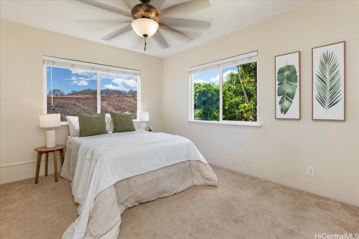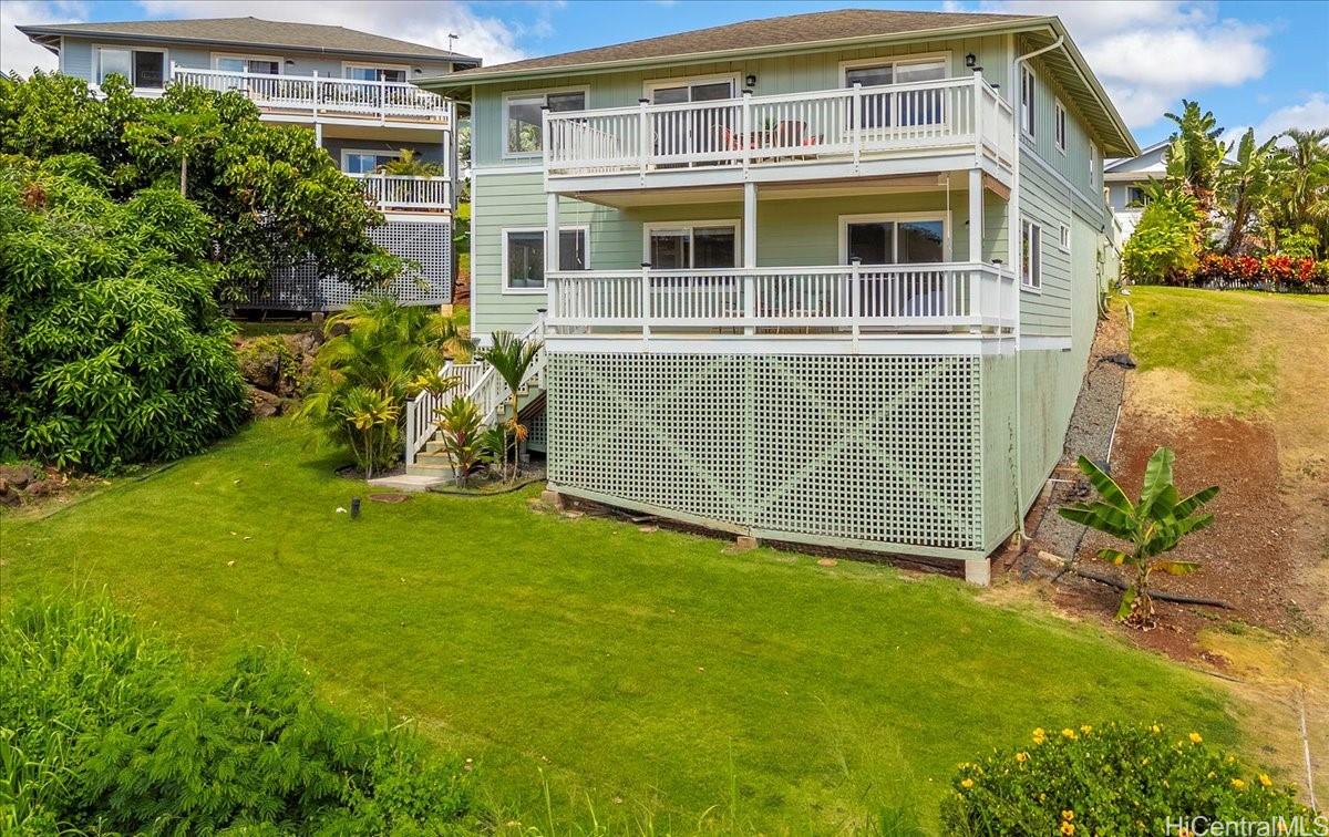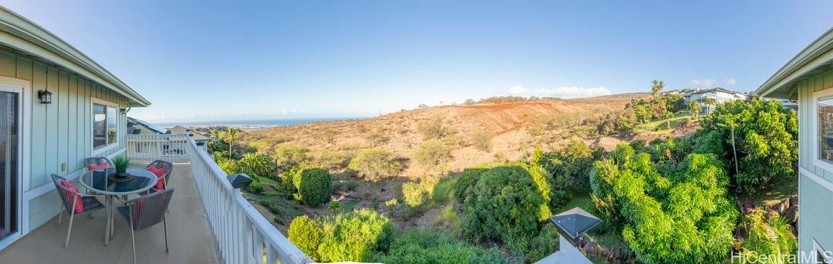 Discover an exceptional opportunity with this expansive perimeter lot nestled within the gated community of Seascape at Makakilo. This spacious 3-bedroom, 2.5-bathroom detached home features one of the largest floor plans available. Enjoy breathtaking westward views of sunsets, coastline, and vibrant city lights against a backdrop of majestic mountains. The generous open and covered lanai decks create the perfect setting for outdoor entertaining and relaxation. This home features quality upgrades, including a state-of-the-art central AC system with a four-zone configuration ($48k investment), upgraded patio railings, beautifully landscaped yard, and numerous other enhancements that elevate its appeal. Situated on the cooler side of Makakilo Heights, this residence offers the convenience of being close to Kapolei City, with easy access to a variety of dining options, shopping centers, the luxurious Ko Olina resort, freeway access, golf courses, and all the essential amenities that enhance city living. The maintenance fee of $523 covers water, sewer, and common area expenses—an incredible value for this expansive 10,395 sqft rim lot. This is a VA approved residential community.