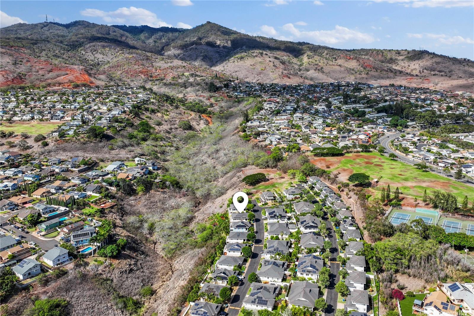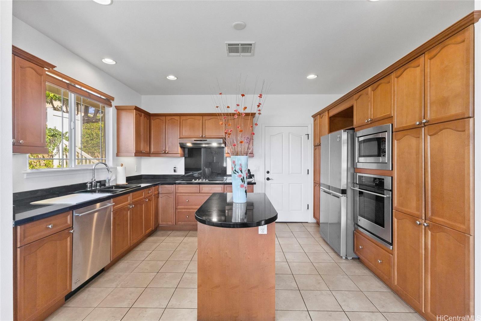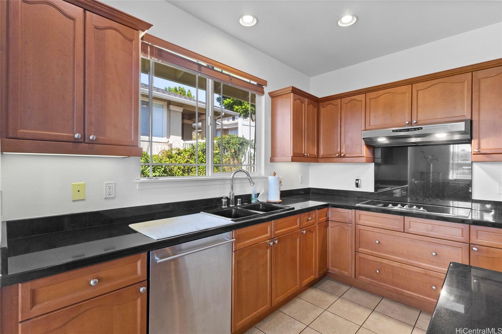 Open Houses 11/22-11/23 2-5PM. First time on the market! This stunning 3-bed, 2.5-bath residence on a sought-after Makakilo rim lot in Hoolu Landing is a rare find, especially with a massive financial bonus: an assumable VA Loan at an incredible 2.25% (PITI approx. $2,695), open to both VA and non-VA buyers! Be instantly greeted by ocean and mountain views visible from two spacious lanais. The upper level features a bright, open-concept layout seamlessly blending the living room, dining area, and huge kitchen—perfect for entertaining. Downstairs, the primary suite offers a walk-in closet, jetted soaker tub, and a private lanai to enjoy the views. 14 owned PV panels keep the electric bill low. Located near the end of a quiet street with guest parking and a large neighborhood park. This is an opportunity you won't want to miss! Current loan balance 509k. Ask about financing for the gap. NO PRIVATE SHOWINGS. OPEN HOUSE ONLY. Maintenance Fee includes landscaping, water, sewer, insurance, road maintenance, utilities for the common areas.