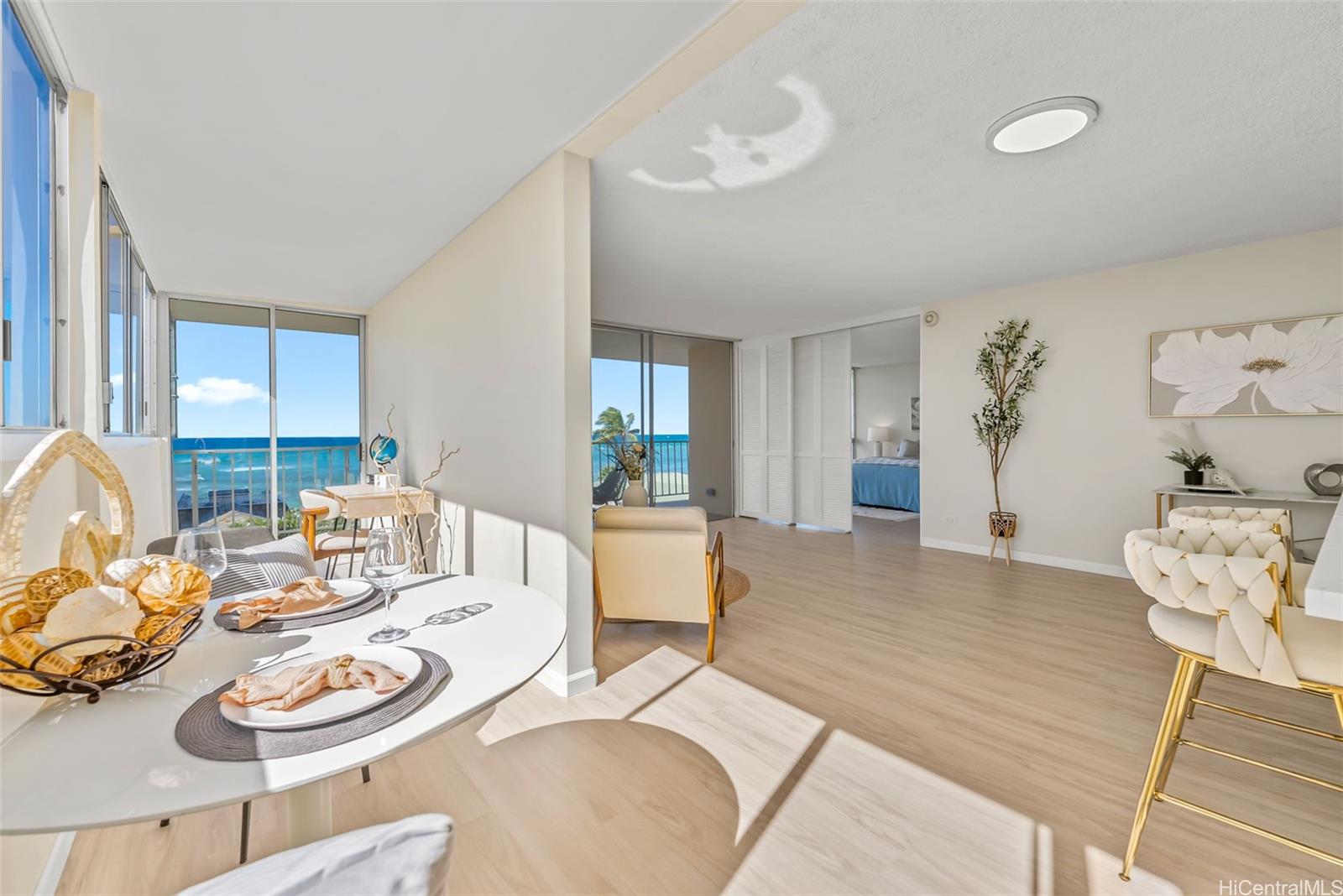 GOLD COAST GEM - RARELY AVAILABLE BUILDING! Surreal Coastal Views! Welcome to 3056 Kalakaua – a distinctive and timeless boutique building along Honolulu’s cherished Gold Coast, offering an intimate private lifestyle with only 2 residences per floor and a warm, pet-welcoming community vibe. Step into this MODERN sparkling newly remodeled (2025) 2-bed, 2-bath home and immediately become captivated by larger-than-life peaceful ocean views, rolling surf, and bright blue skies. Wake up to stunning Diamond Head views and fall asleep to the sound of the ocean just beyond your windows! Designed for effortless island living featuring modern finishes, wrap around covered lanais, in-unit laundry, private trash chute, extra storage and assigned parking stall. Right outside your door, experience the very best of Hawaii living — swim at dawn, surf at Tonggs, enjoy a sunset at Diamond Head, dine along Waikiki’s world-class restaurants, catch a concert at the Waikiki Shell, or unwind at the Elks or Outrigger Canoe Club. This is the true Gold Coast lifestyle — unique, iconic and truly special. Every day feels like a getaway! Pet friendly building!